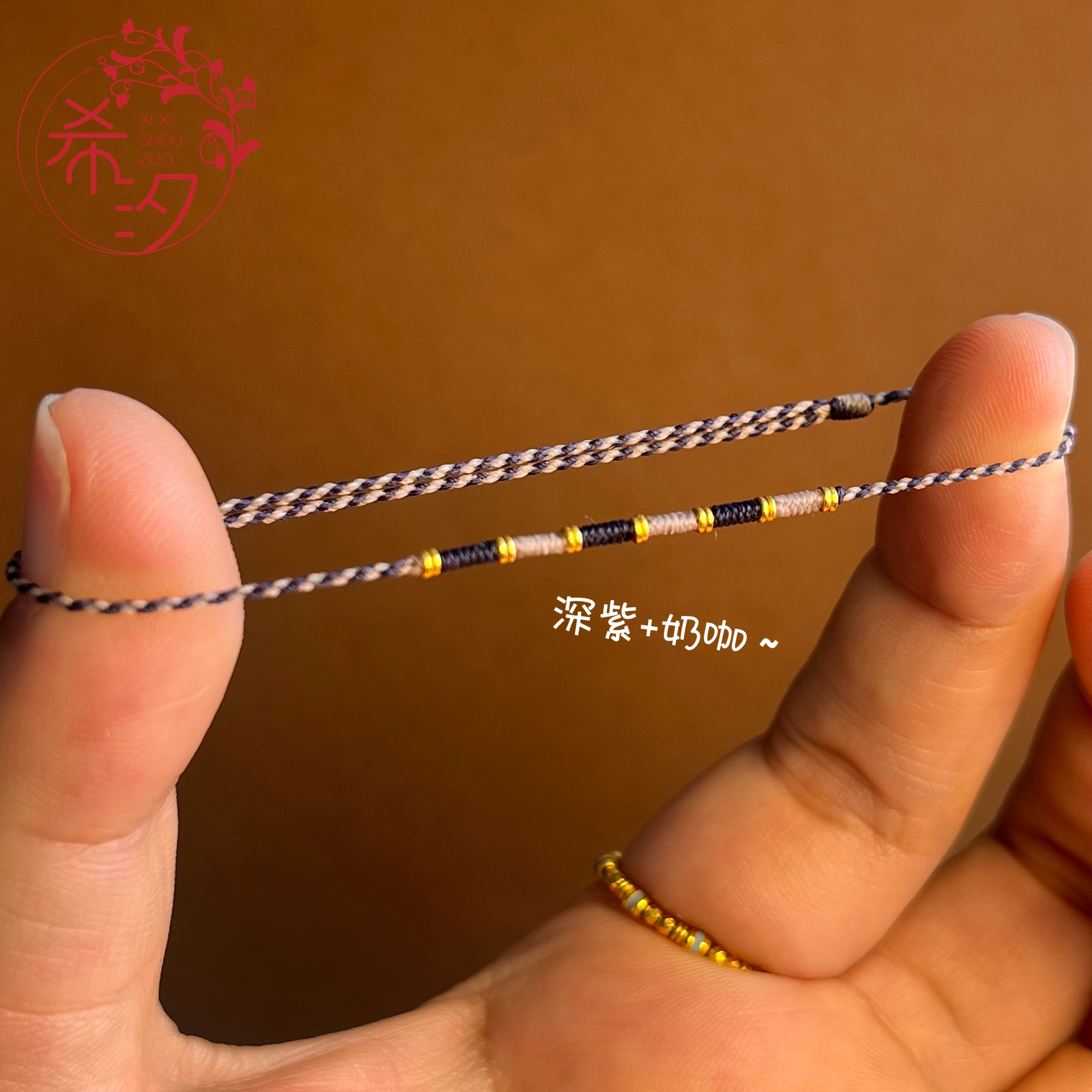 999 Pure Gold Circle Diamond Knot Bracelet, Ultra-Fine Wax Cord, Hand-Woven Bracelet and Anklet, Adjustable