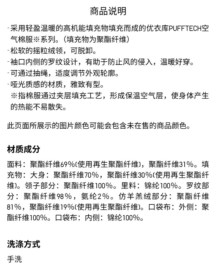 Uniqlo Collaboration/Women's and Men's Pufftech Air Cotton Jacket/Coat Jacket 478580