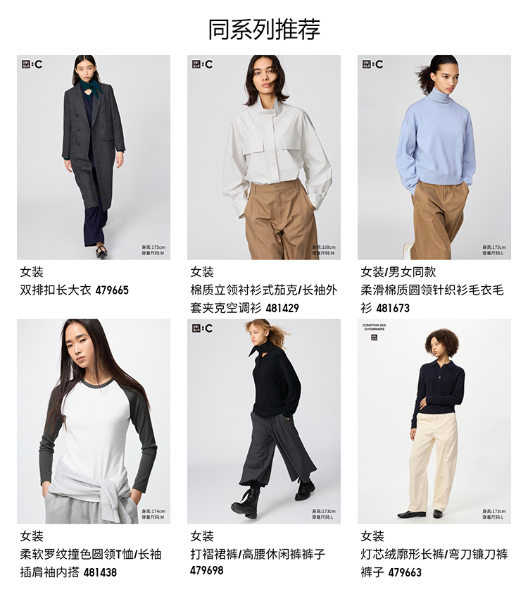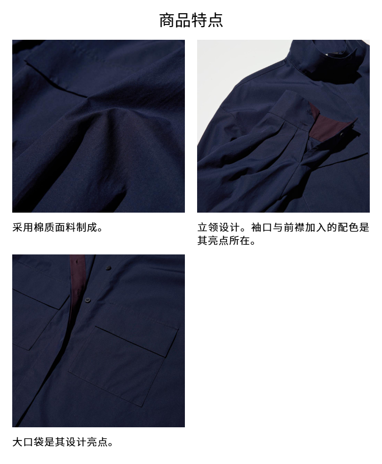 Uniqlo Collaboration/Women's Cotton Stand-Up Collar Shirt-Style Jacket/Long-Sleeved 25 Autumn and Winter New Style 479679