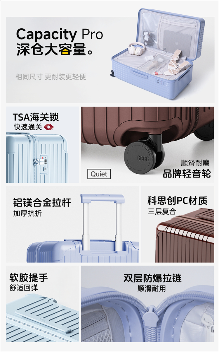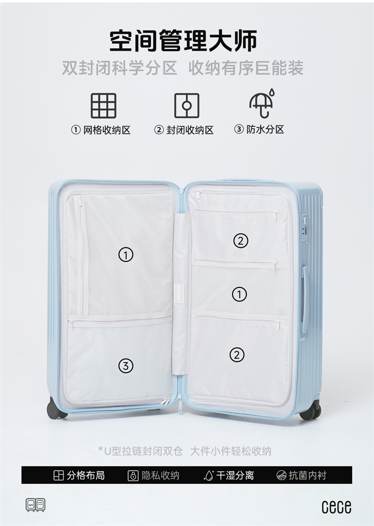 【New Product】Cece Large Capacity Deep Compartment Zipper Suitcase Lightweight Strong Durable Travel Trolley Leather Case