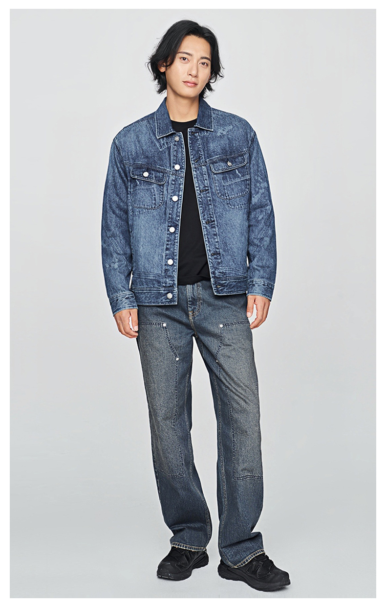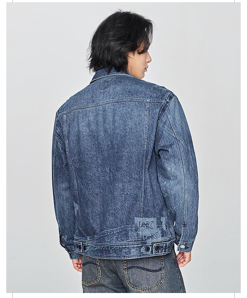 Lee25 Autumn and Winter New Product Comfortable Version Lapel Digital Printing Laser Retro Dark Blue Men's Denim Jacket