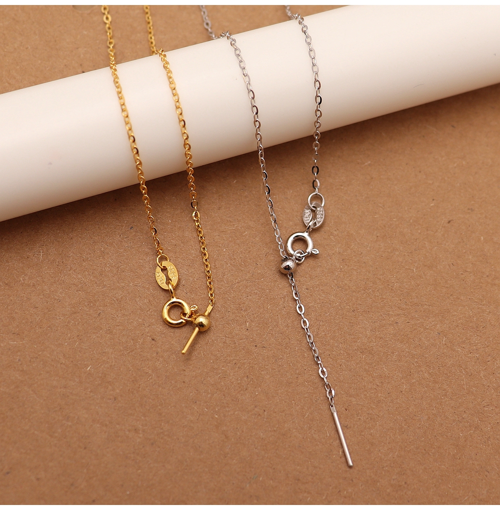 S925 Sterling Silver Necklace with Pin-Style Flash European Chain, Adjustable Chain, Collarbone Chain, O-Shaped Chain, Can Be Worn with Beads, Plain Chain, Bare Chain