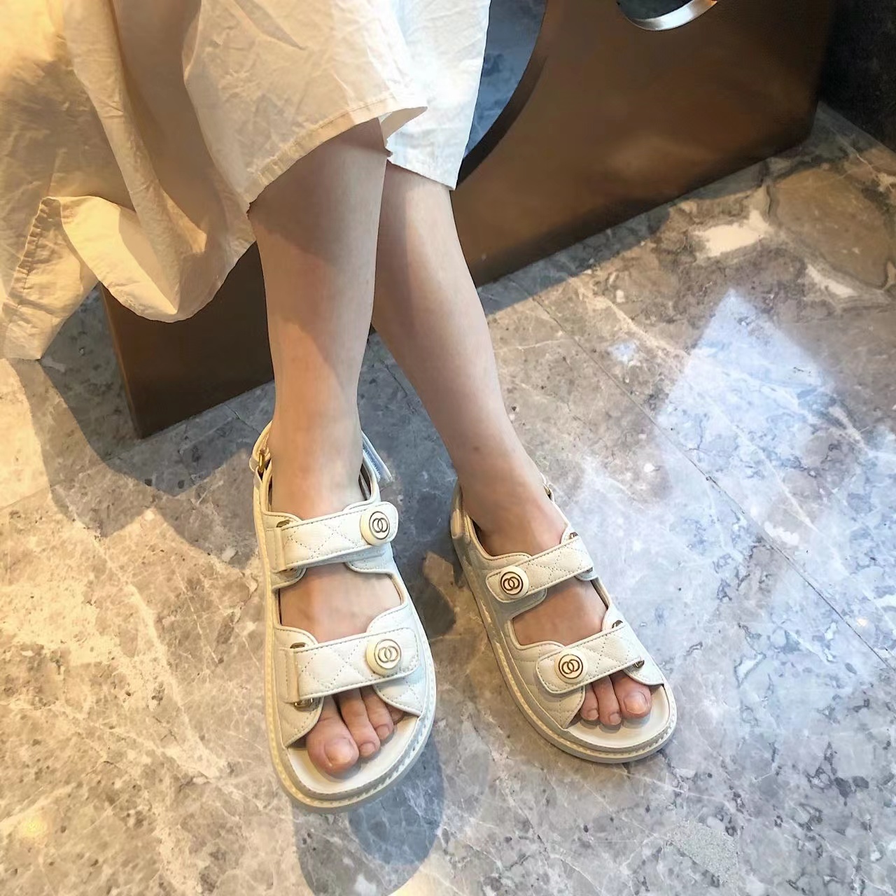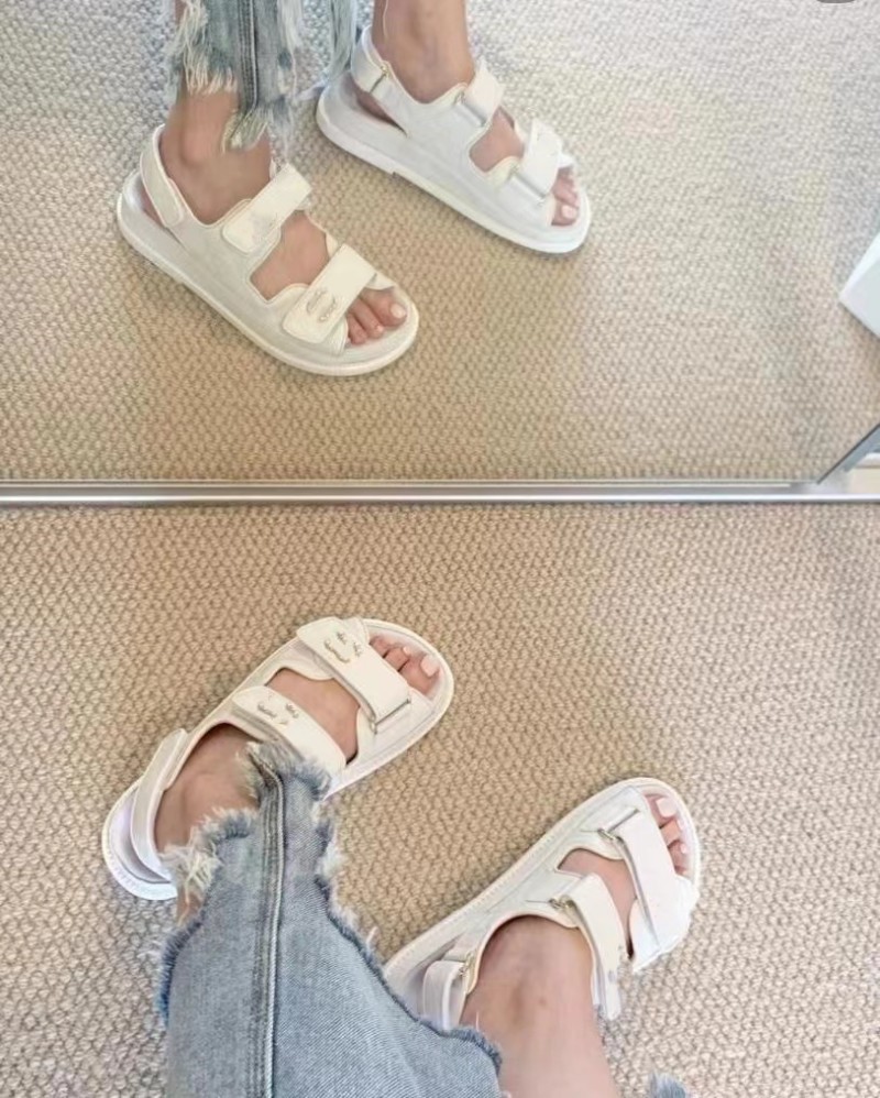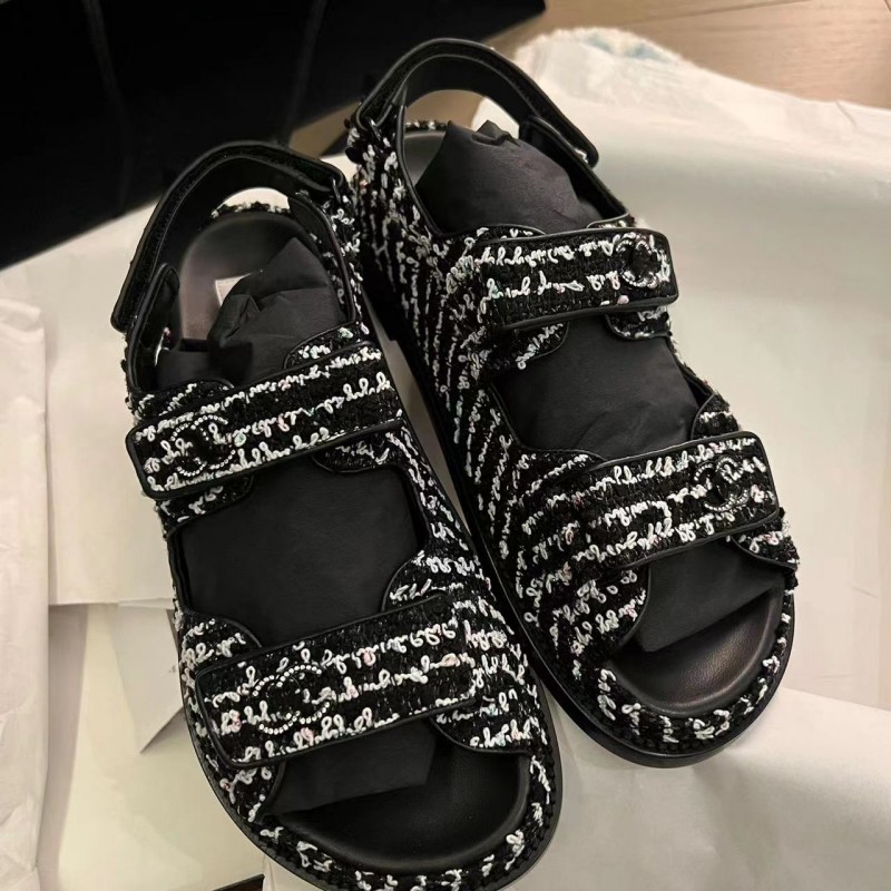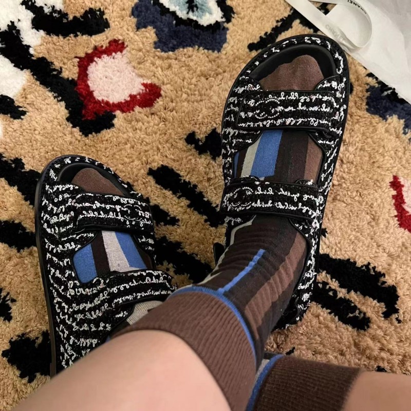 Tweed Style Velcro Sandals for Women 25 Spring and Autumn Thick Sole Increased Casual Easiest for Match Fashion Open Toe Flat Sandals for Women