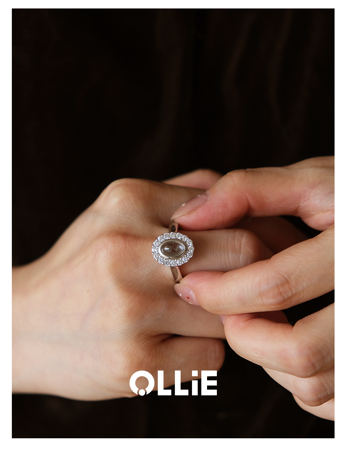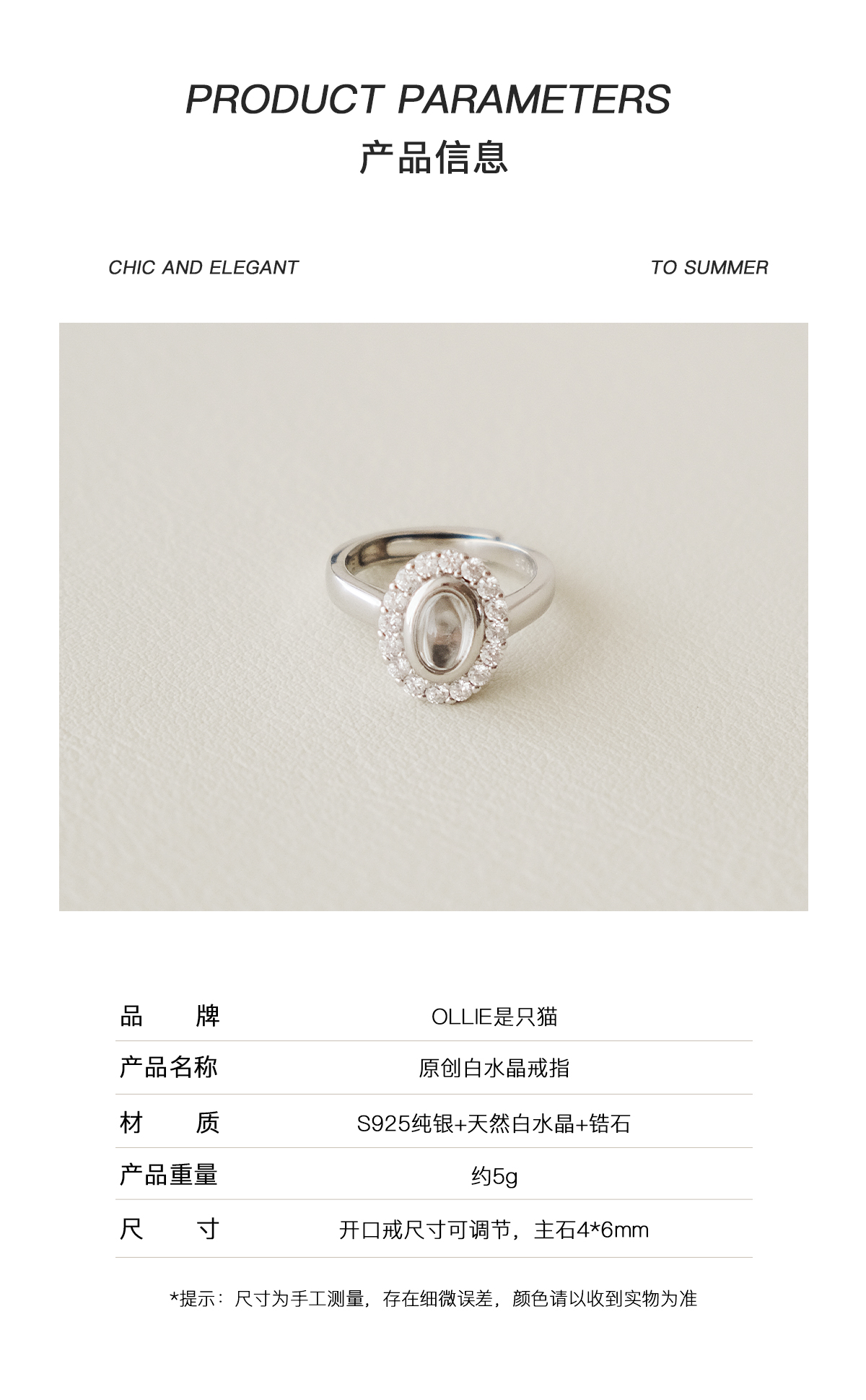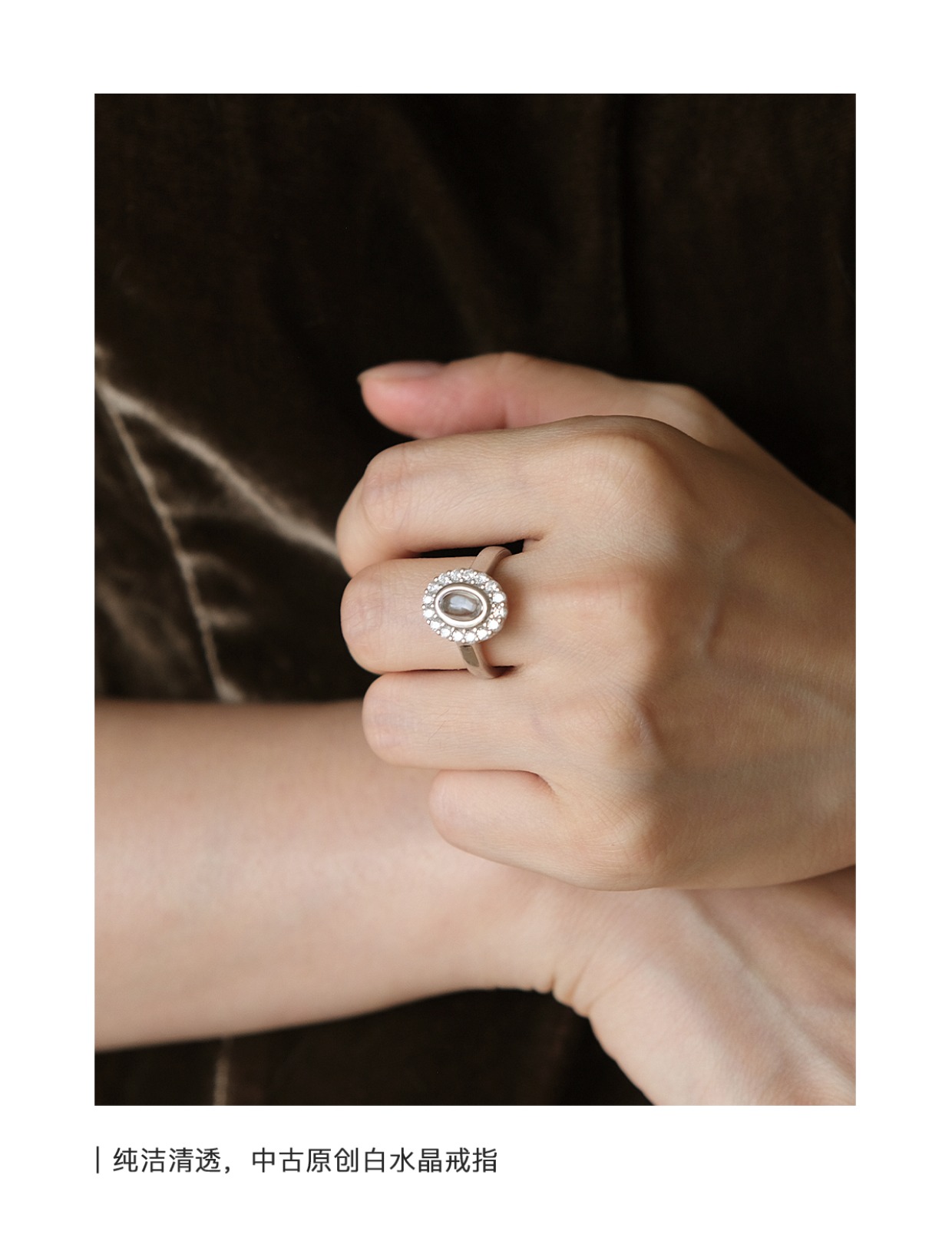 Ollie Is a Cat|Original White Crystal Ring for Women, Cool and Transparent, High-End Feel, Original Design, Simple