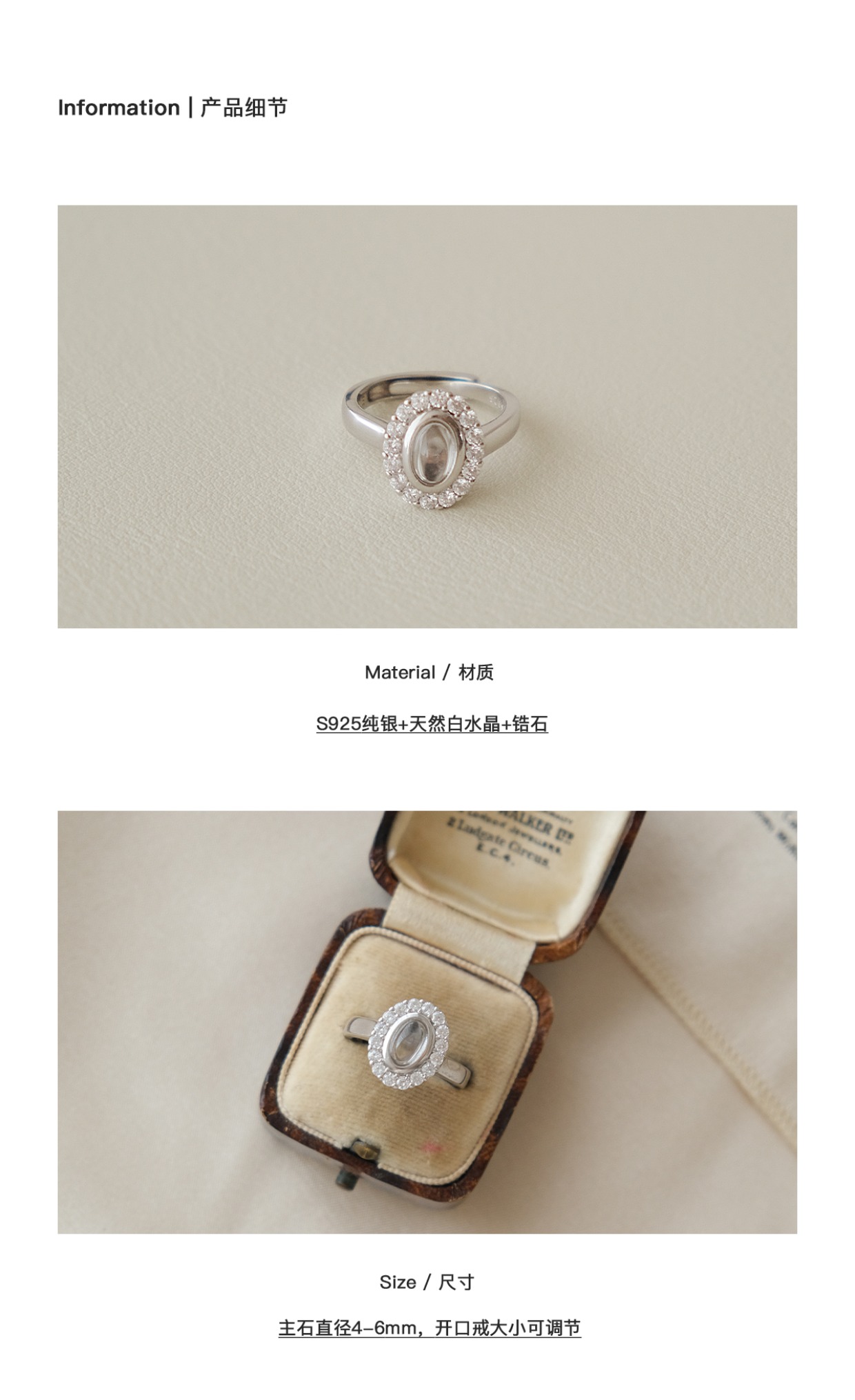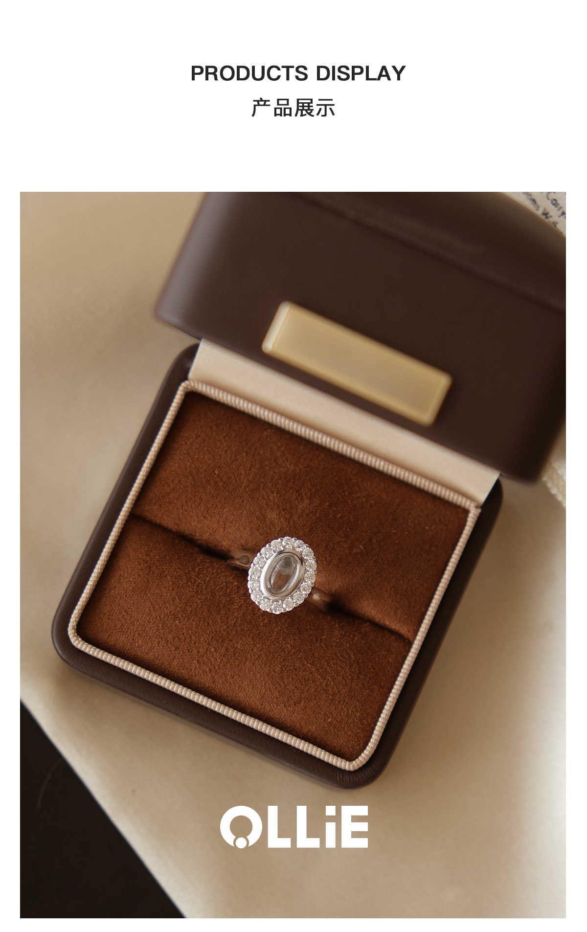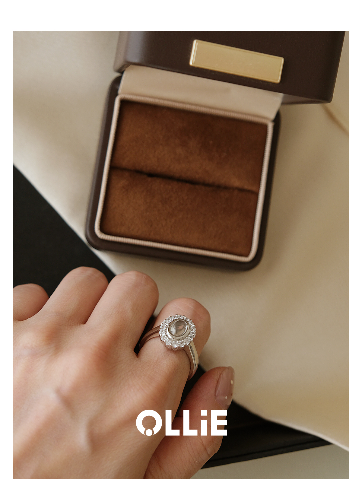 Ollie Is a Cat|Original White Crystal Ring for Women, Cool and Transparent, High-End Feel, Original Design, Simple