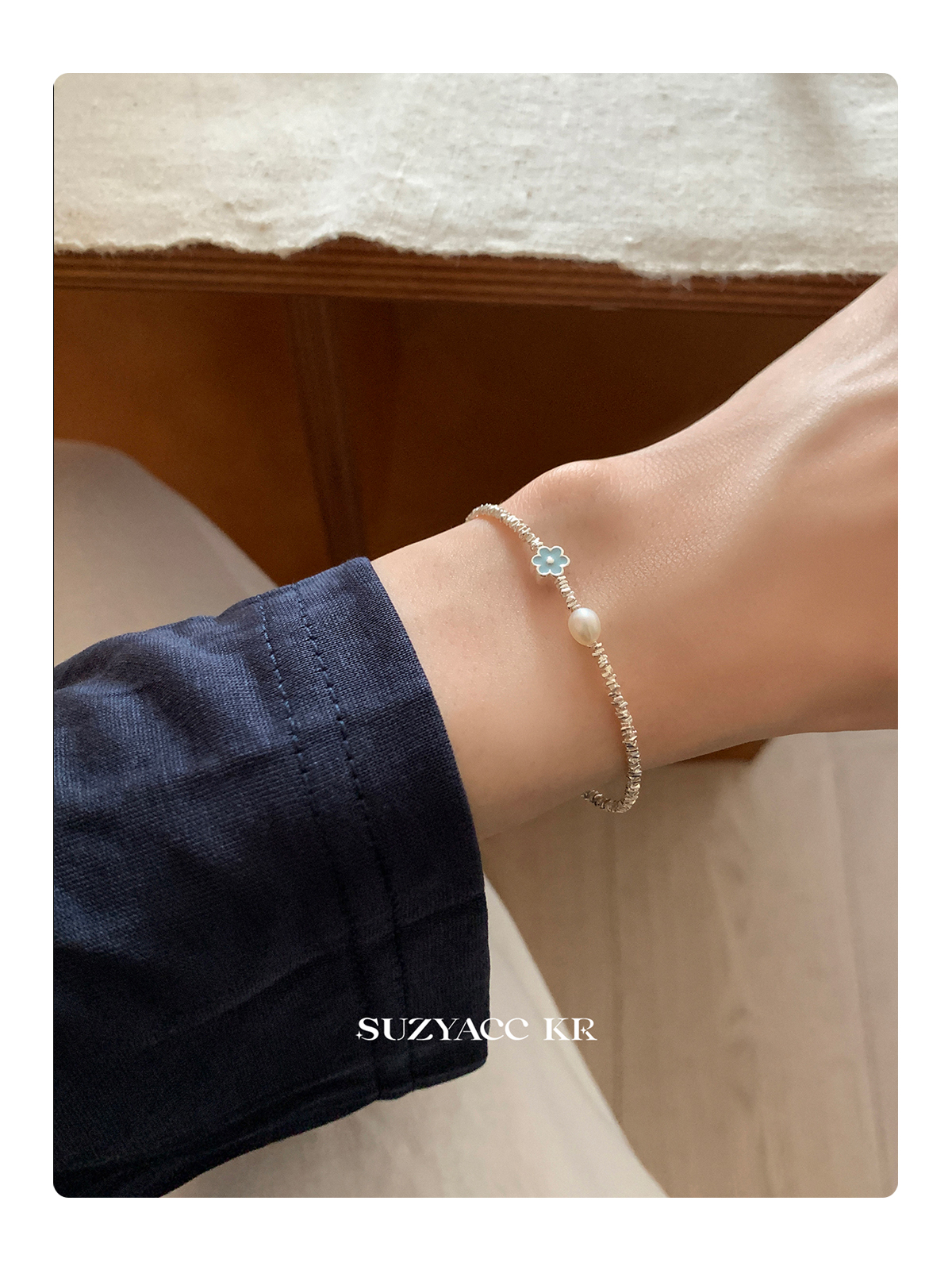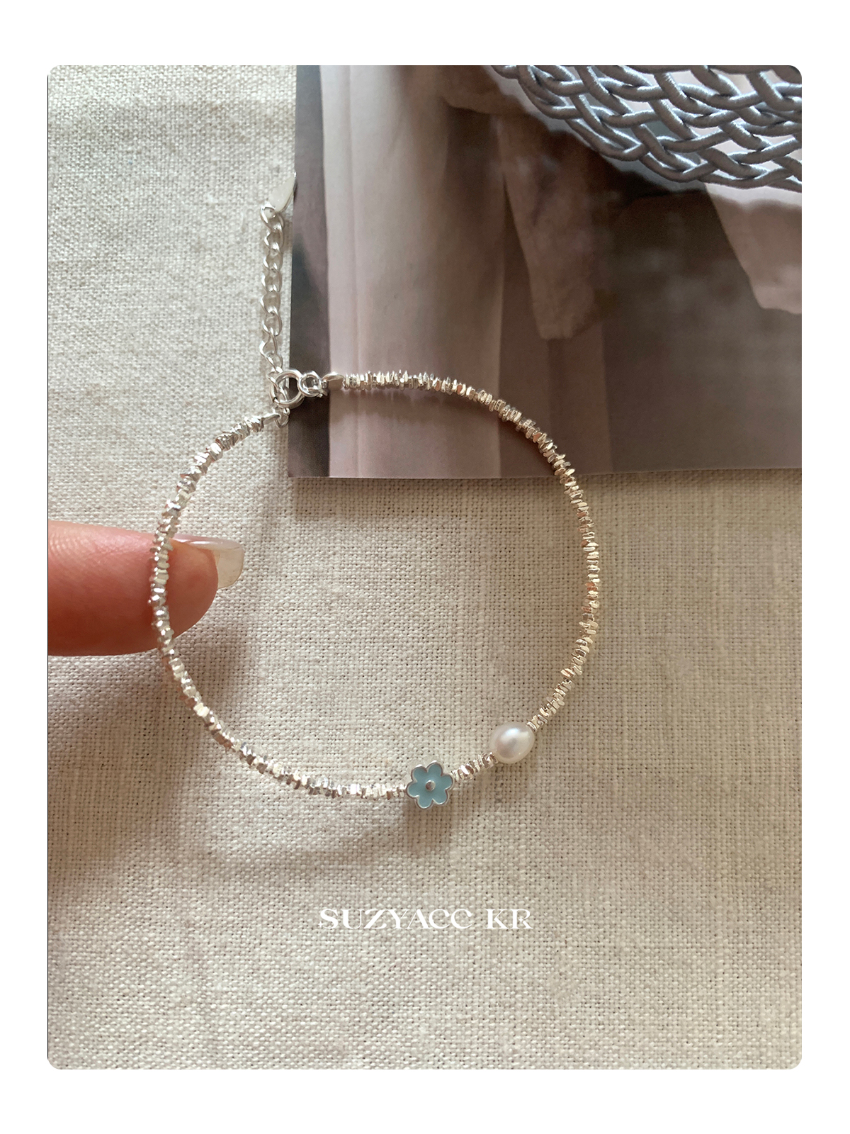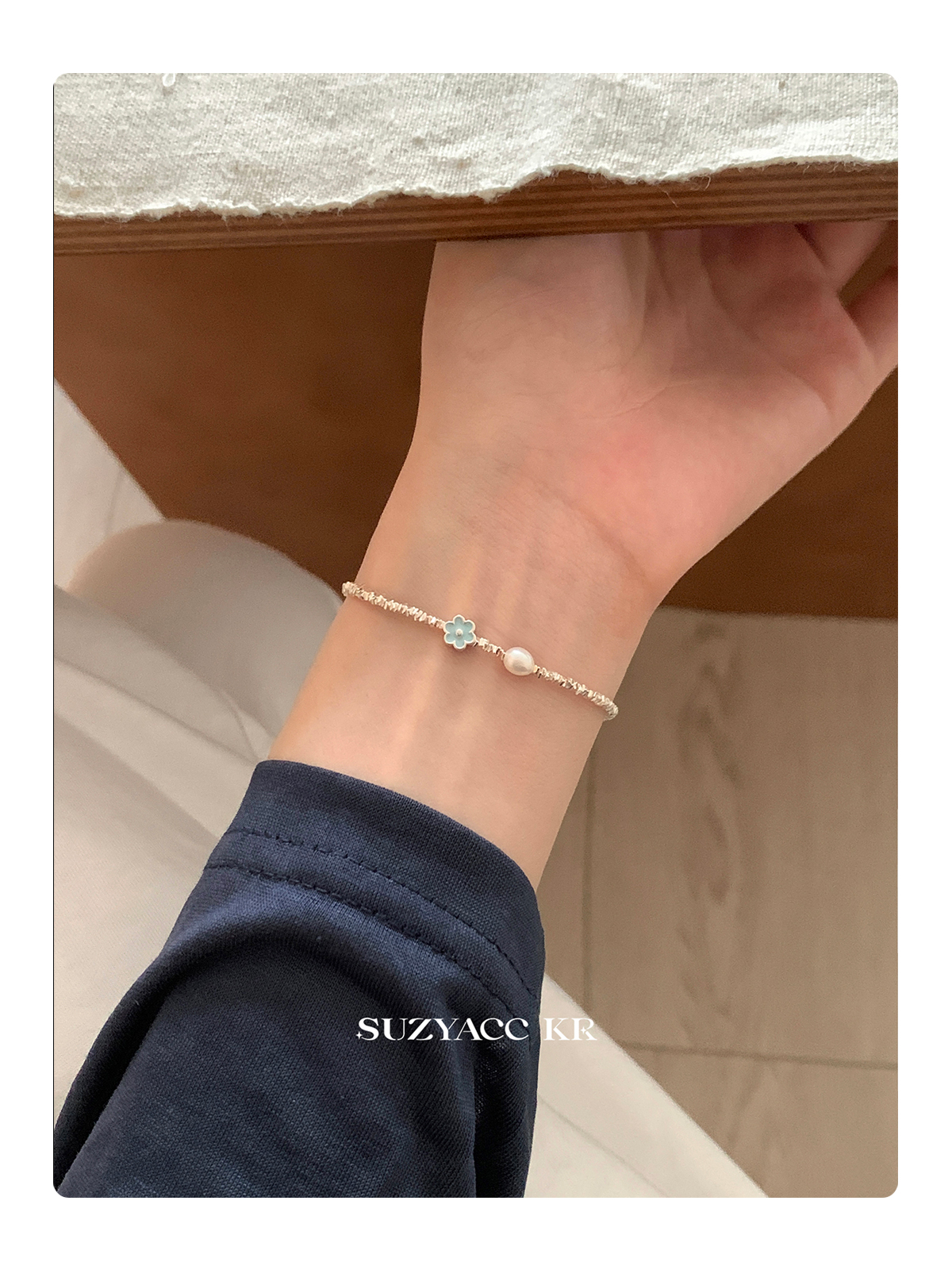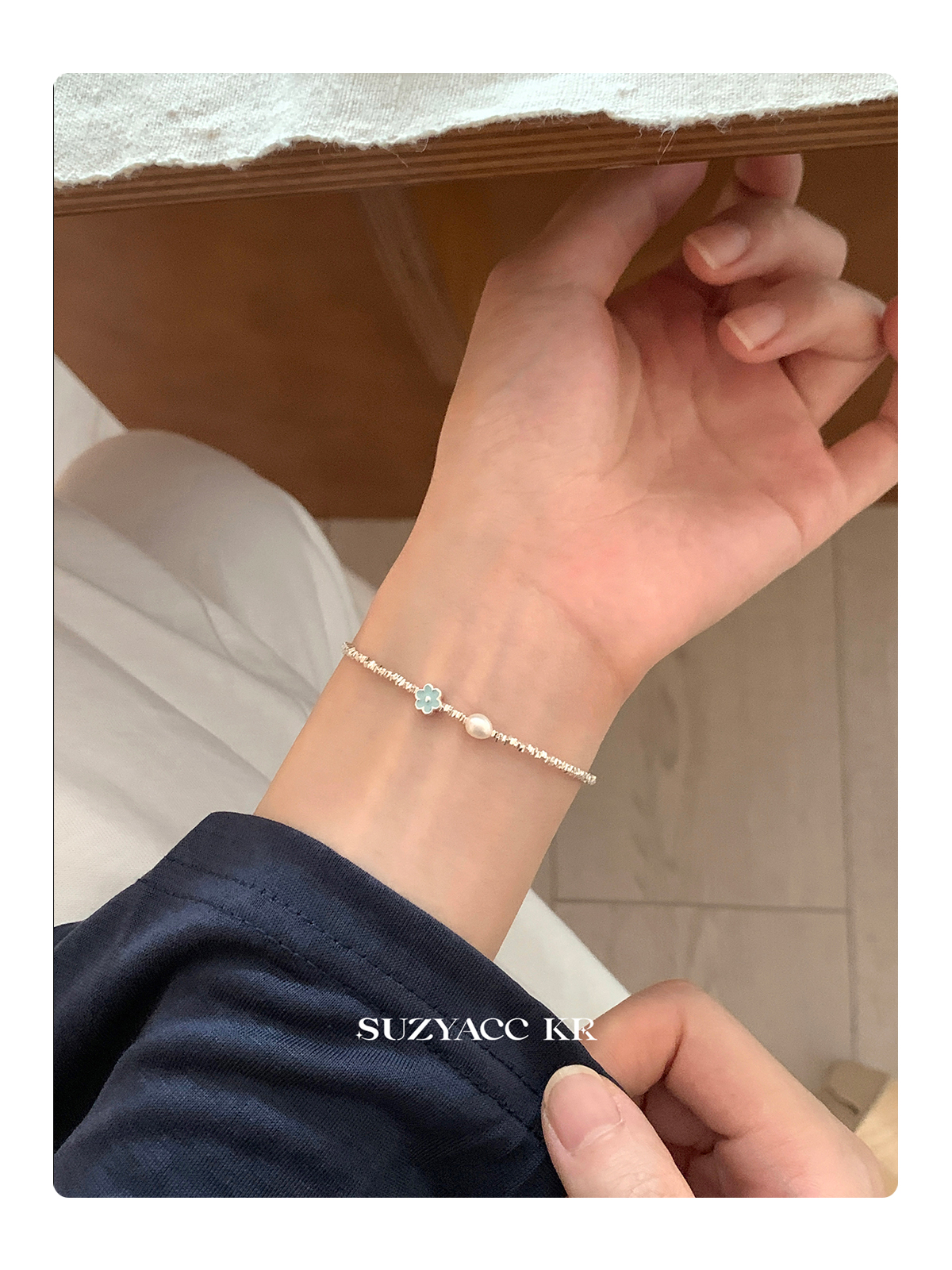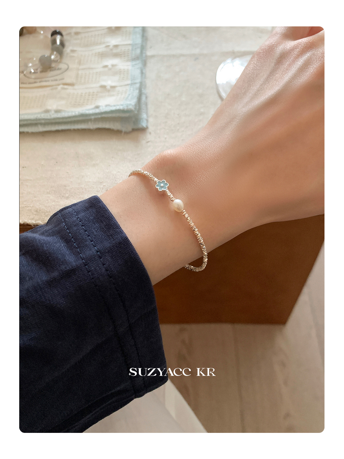 Suzyacc Kr Pure Silver Flower Bracelet, Simple and Niche, High-End Jewelry, Heavy Craftsmanship, Vintage Broken Silver Beaded Bracelet