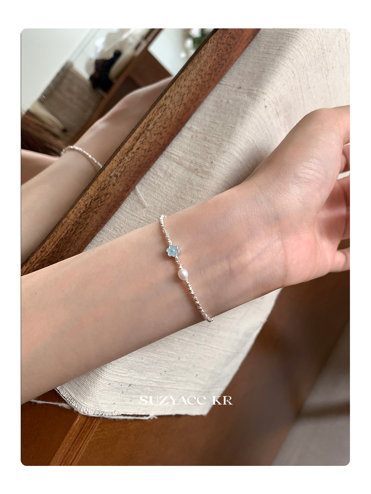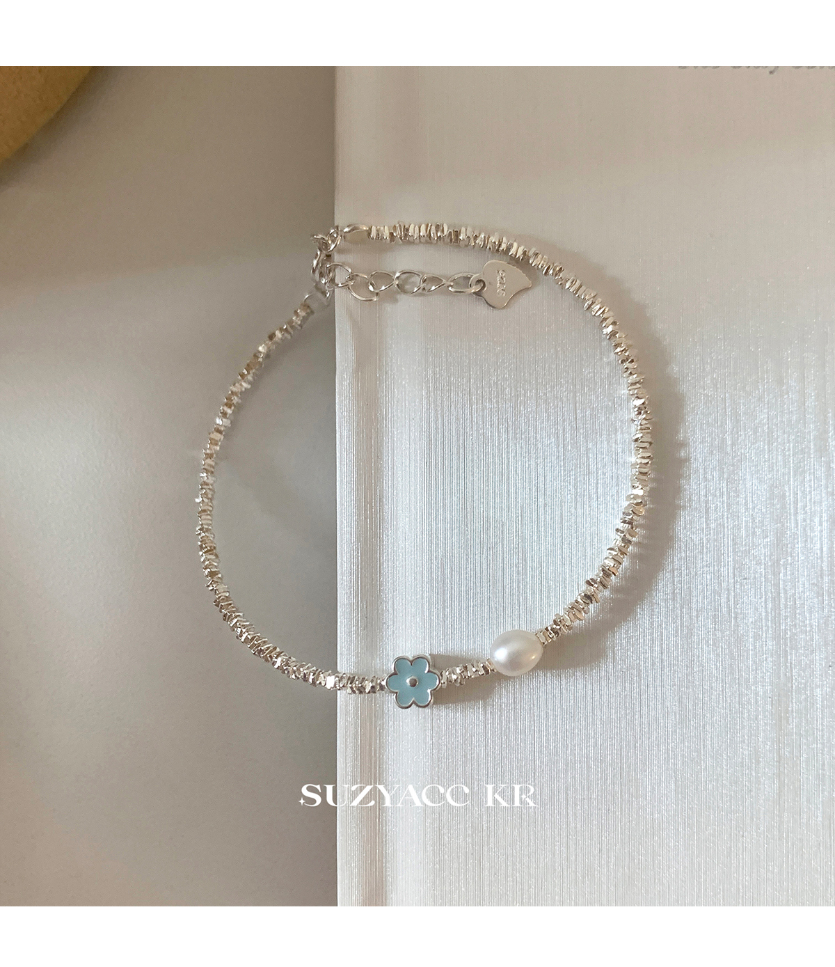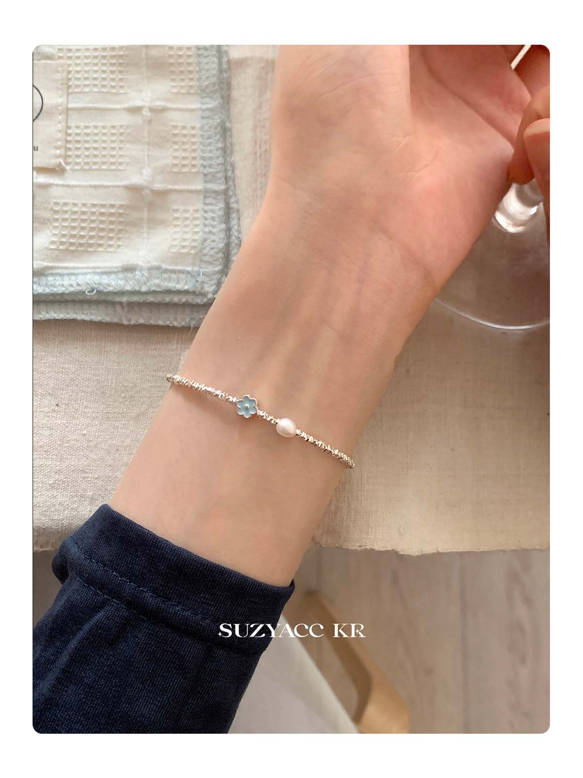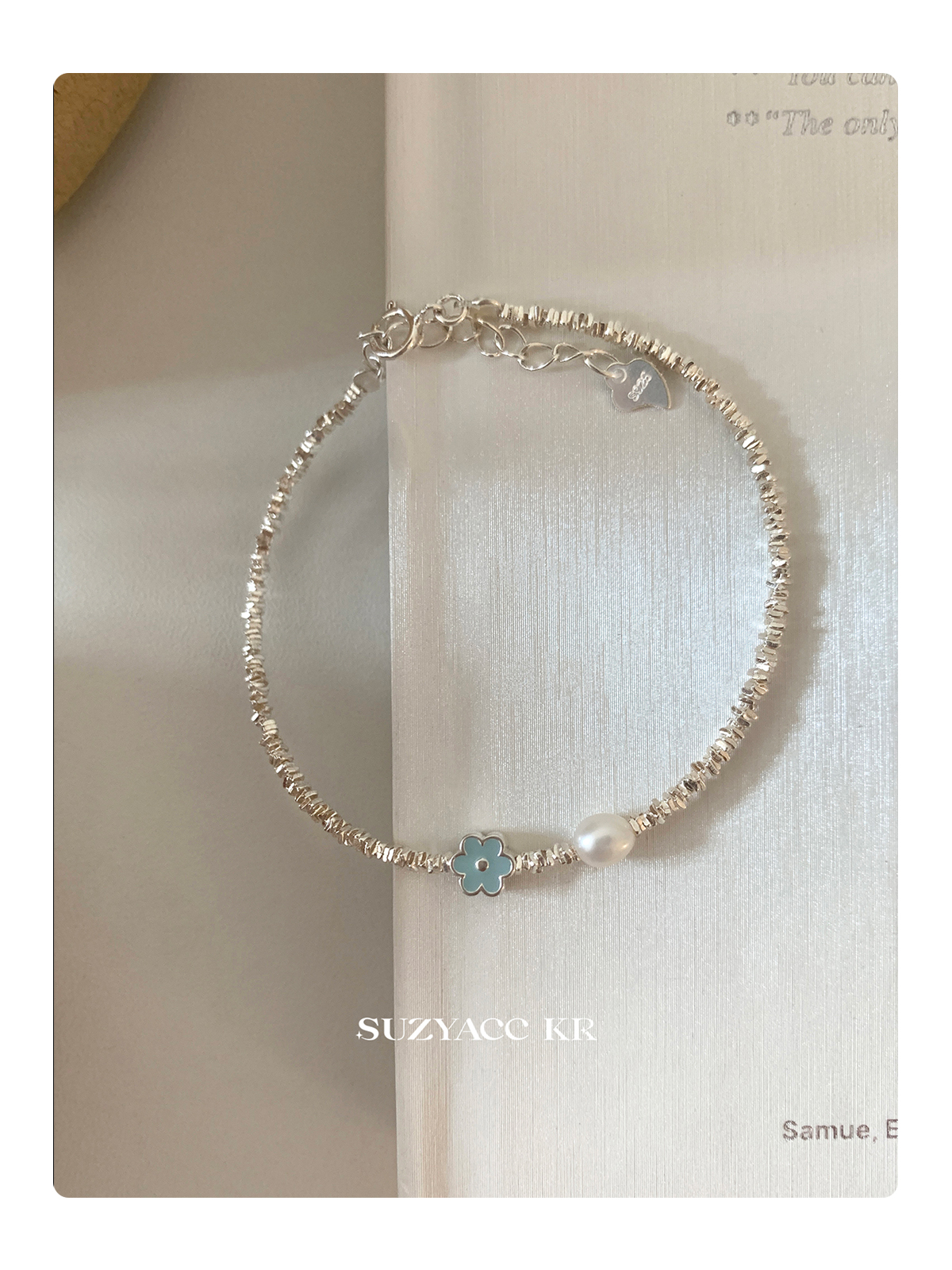 Suzyacc Kr Pure Silver Flower Bracelet, Simple and Niche, High-End Jewelry, Heavy Craftsmanship, Vintage Broken Silver Beaded Bracelet