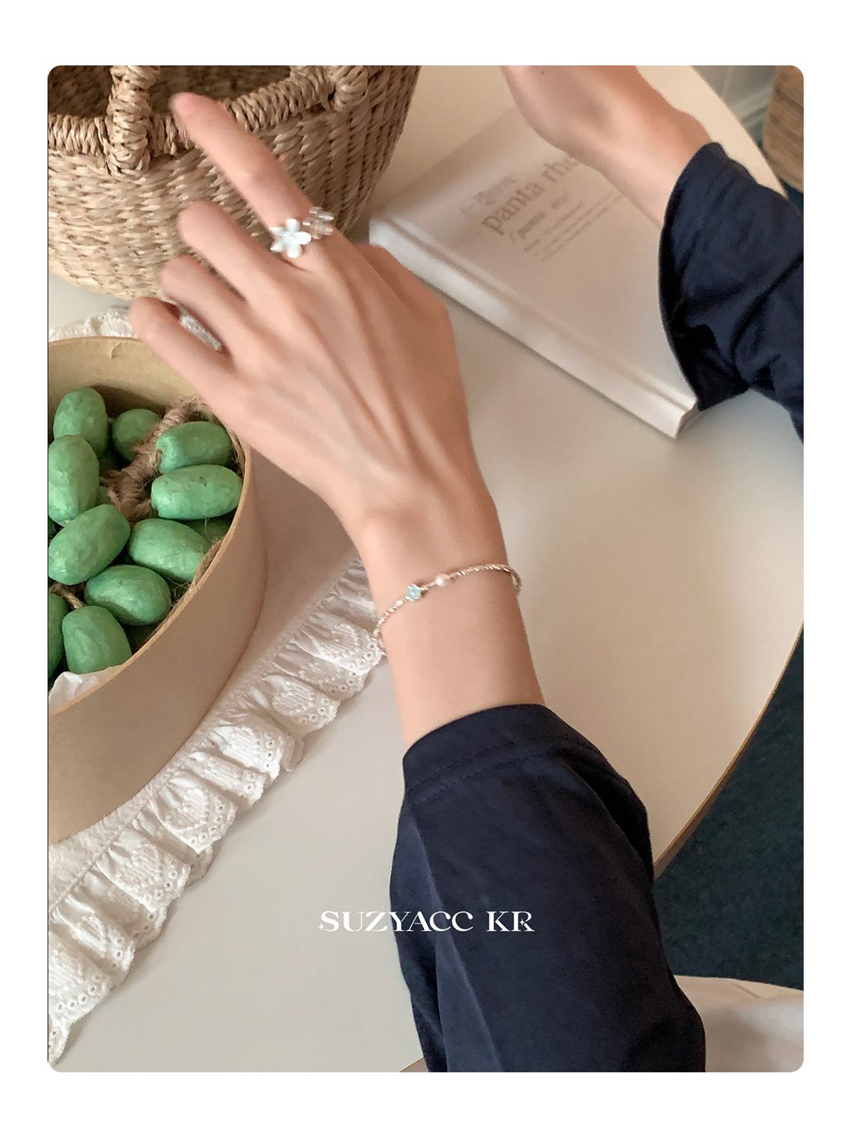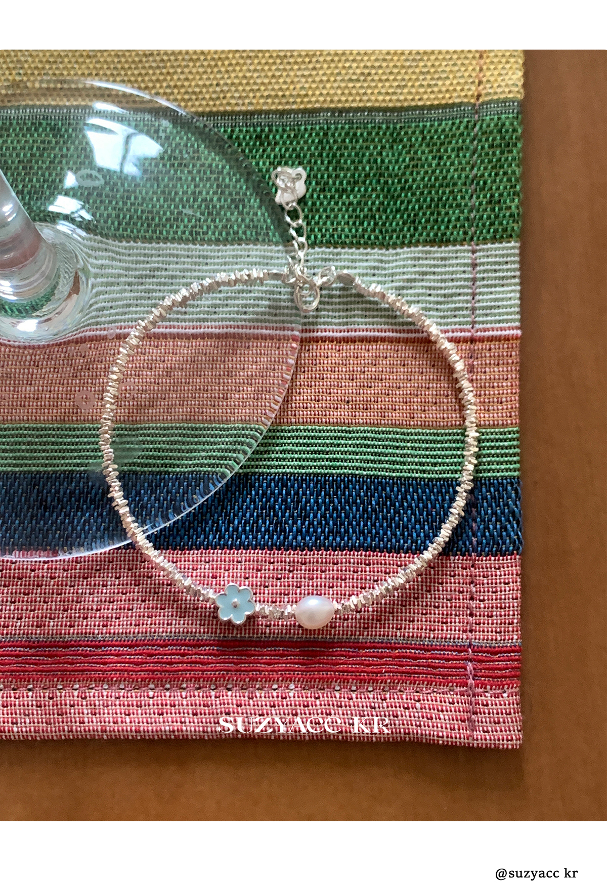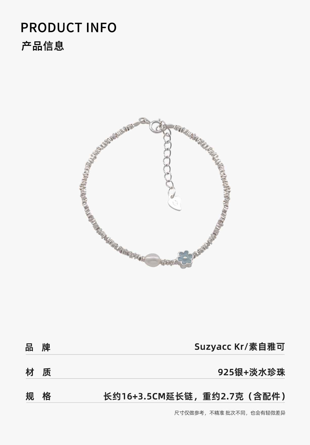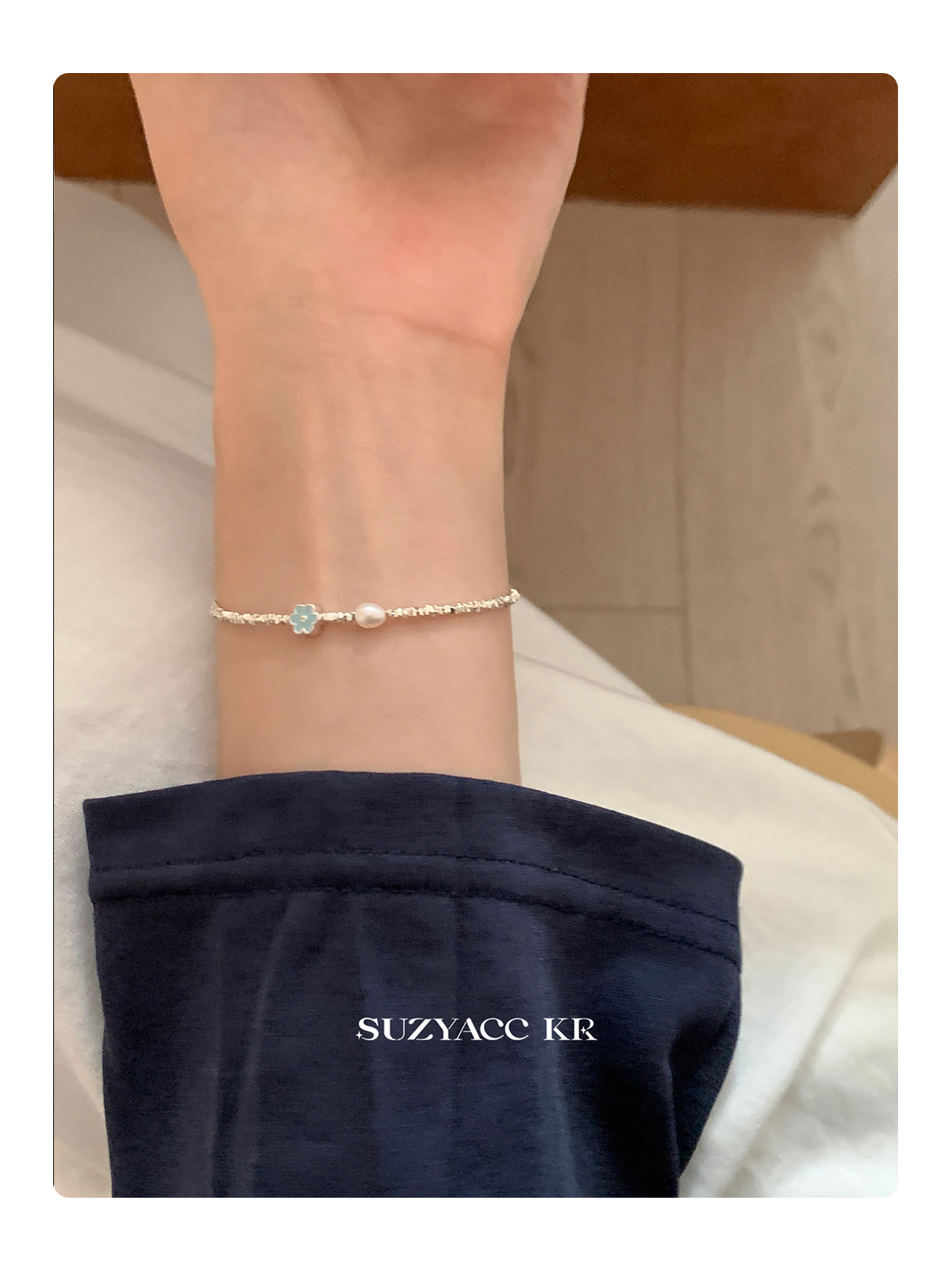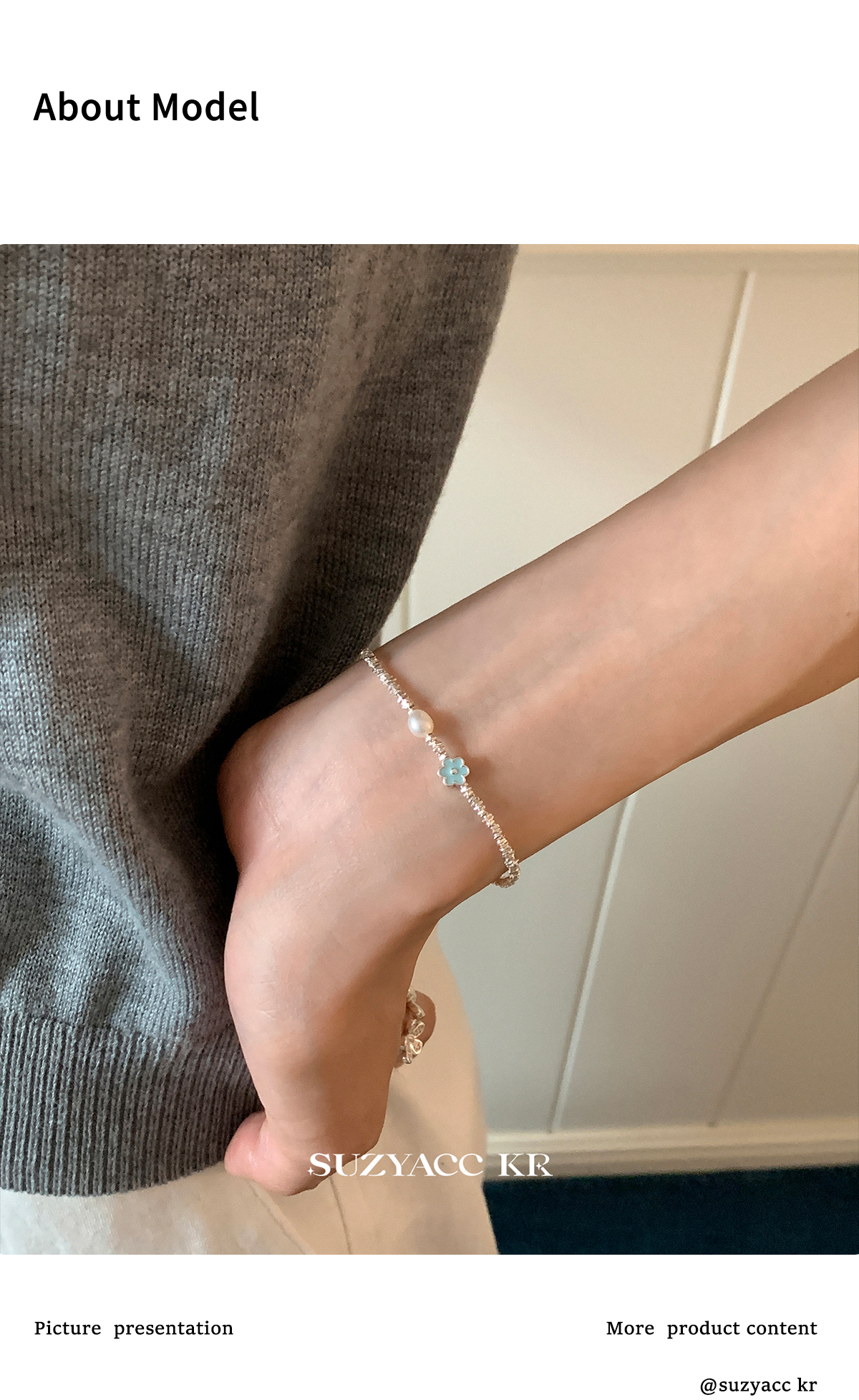 Suzyacc Kr Pure Silver Flower Bracelet, Simple and Niche, High-End Jewelry, Heavy Craftsmanship, Vintage Broken Silver Beaded Bracelet