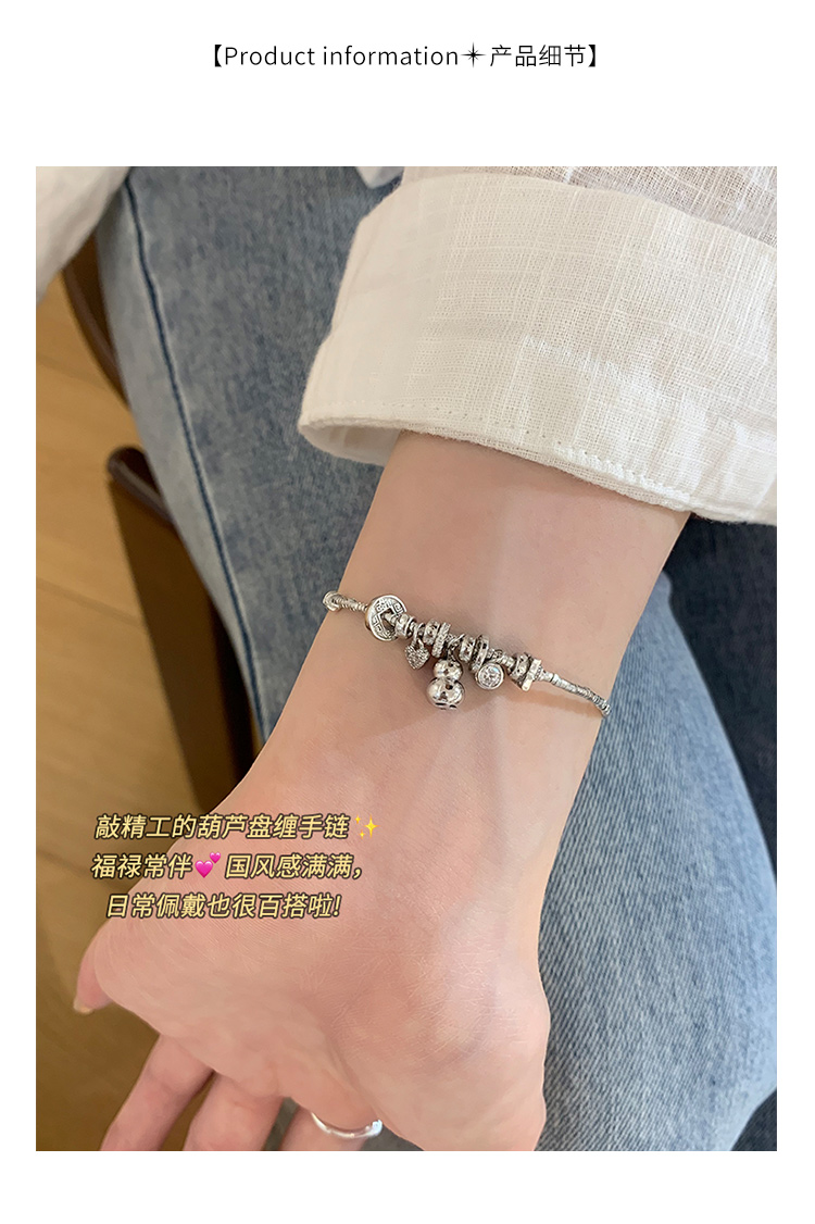 Pure Silver Gourd-Shaped Coiled Bracelet for Women, 2025 New Style, Light Luxury, Niche, Exquisite Bracelet, High-End Silver Jewelry for Women