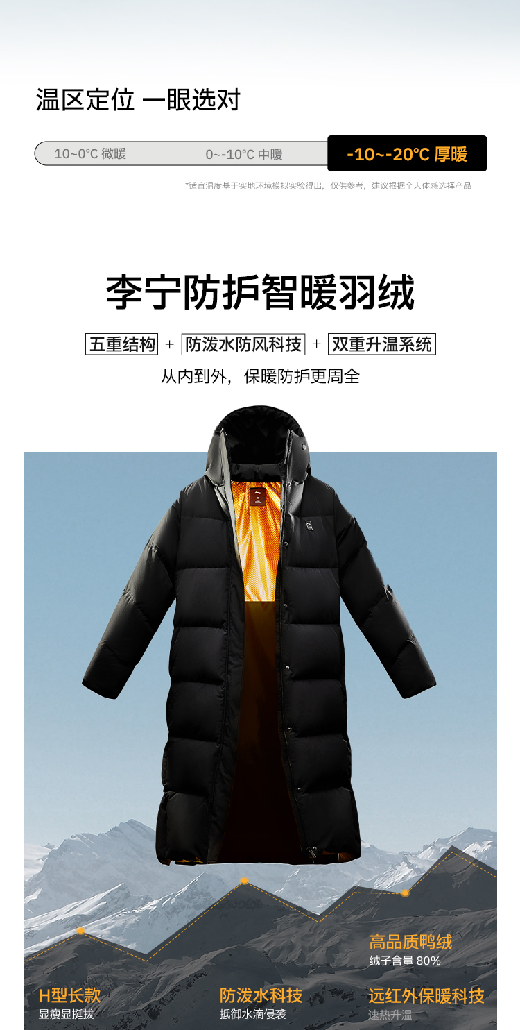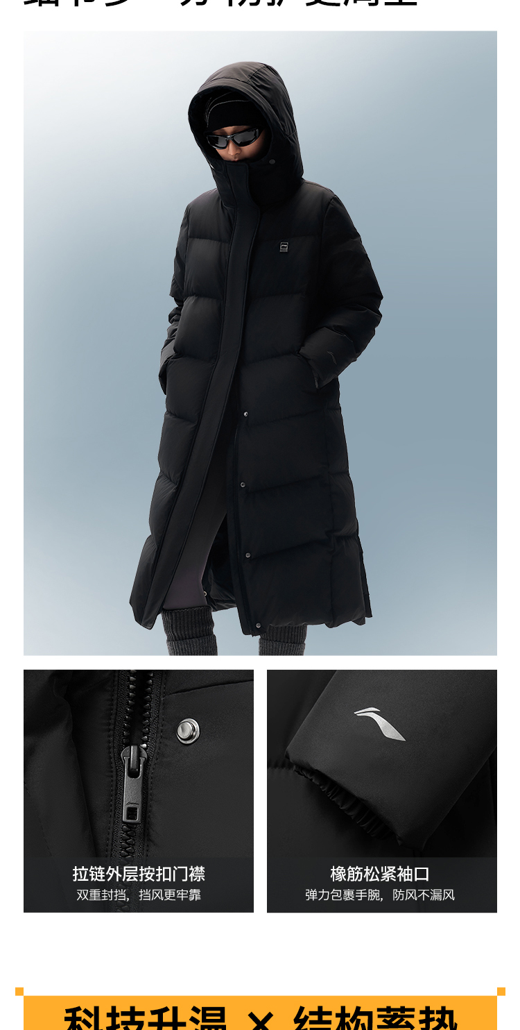 Li-Ning Hot Pot down Jacket | Women's Winter Duck down Long Coat Warm Thickened Hooded Sports Jacket for Women