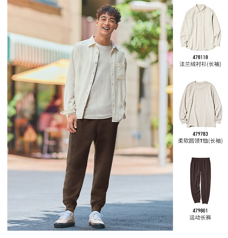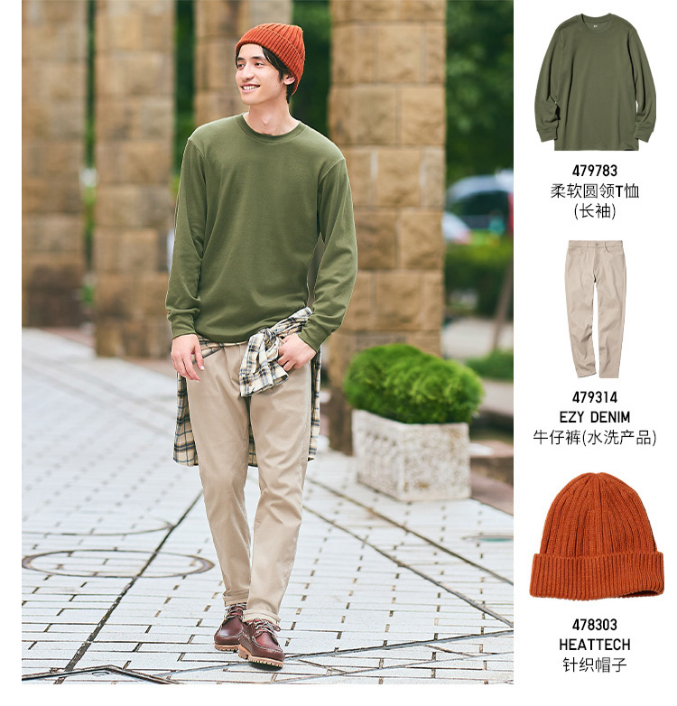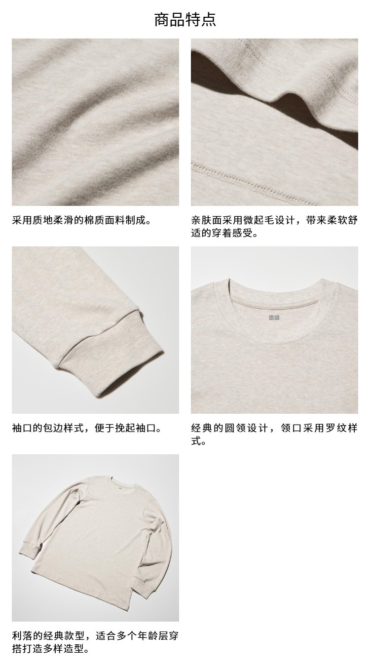 Uniqlo Men's and Women's Soft Round-Neck T-Shirts/Casual Long-Sleeved Tops 25 Autumn and Winter New Style 479783