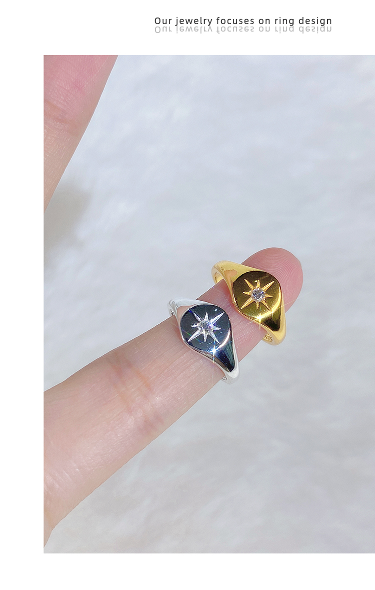 Eight-Pointed Star Shield Moissanite Sterling Silver Ring Tail Ring Gold Color Pinky Ring Women's Pinky Ring Small Size Very Small Size 2 Size 3