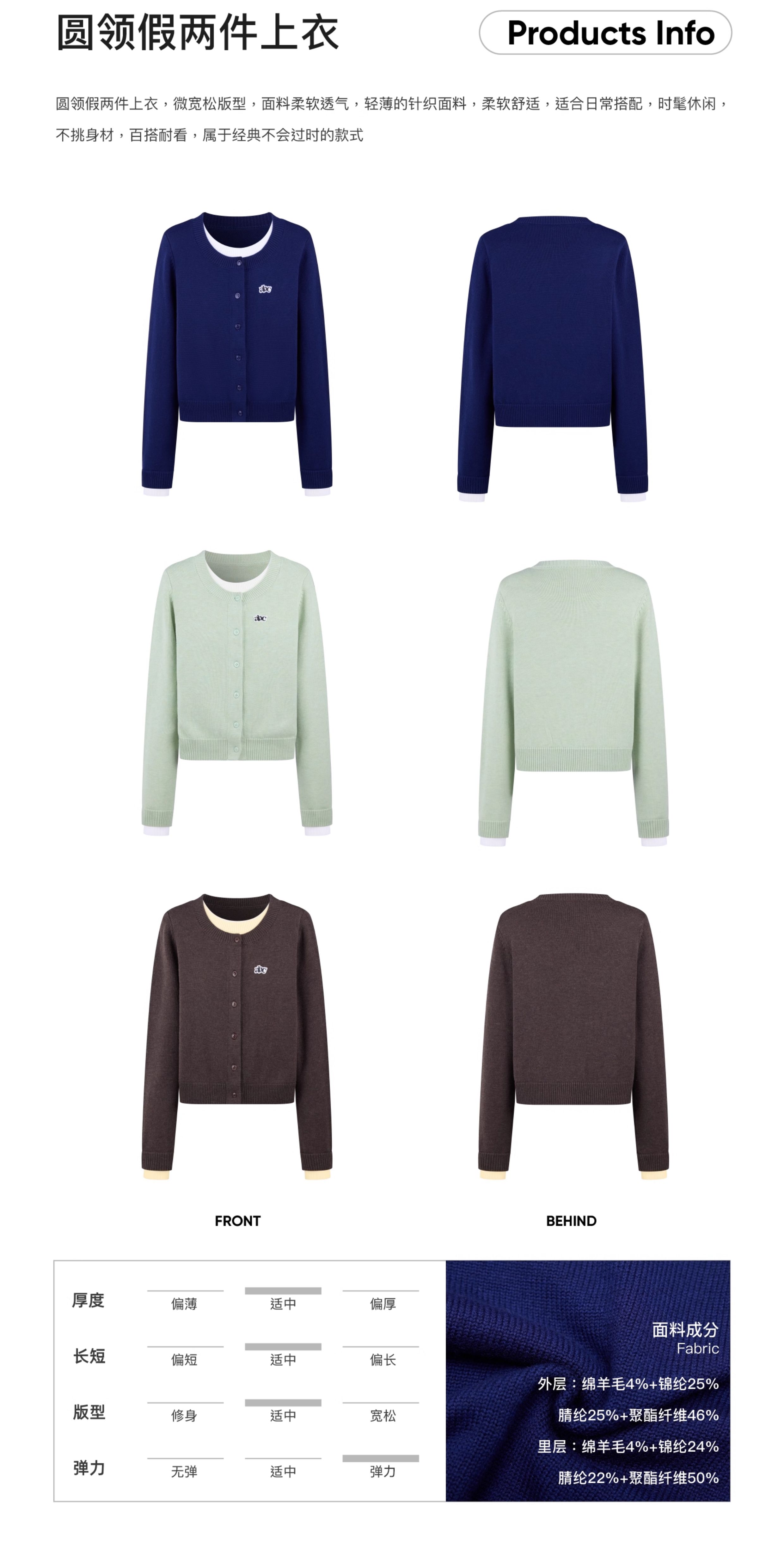 Heyabc Spring and Autumn Korean Style Round Neck Fake Two-Piece Knit Sweater for Women, Sweet and Youthful, Versatile, Elegant, Lazy Style Sweater
