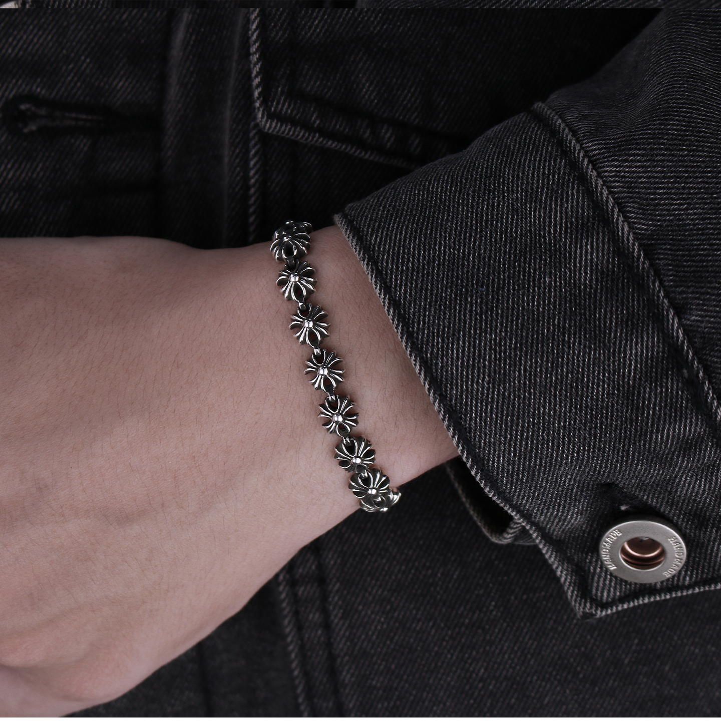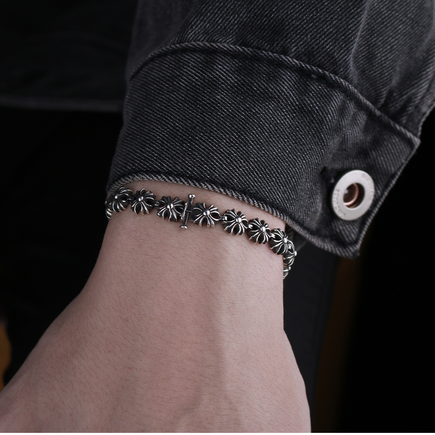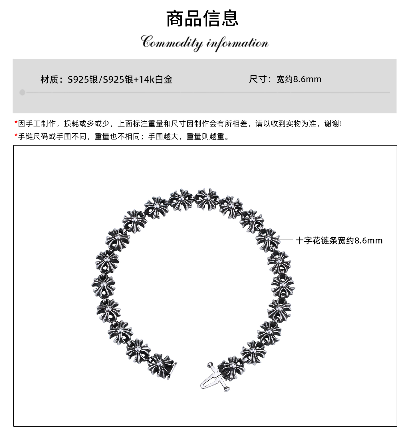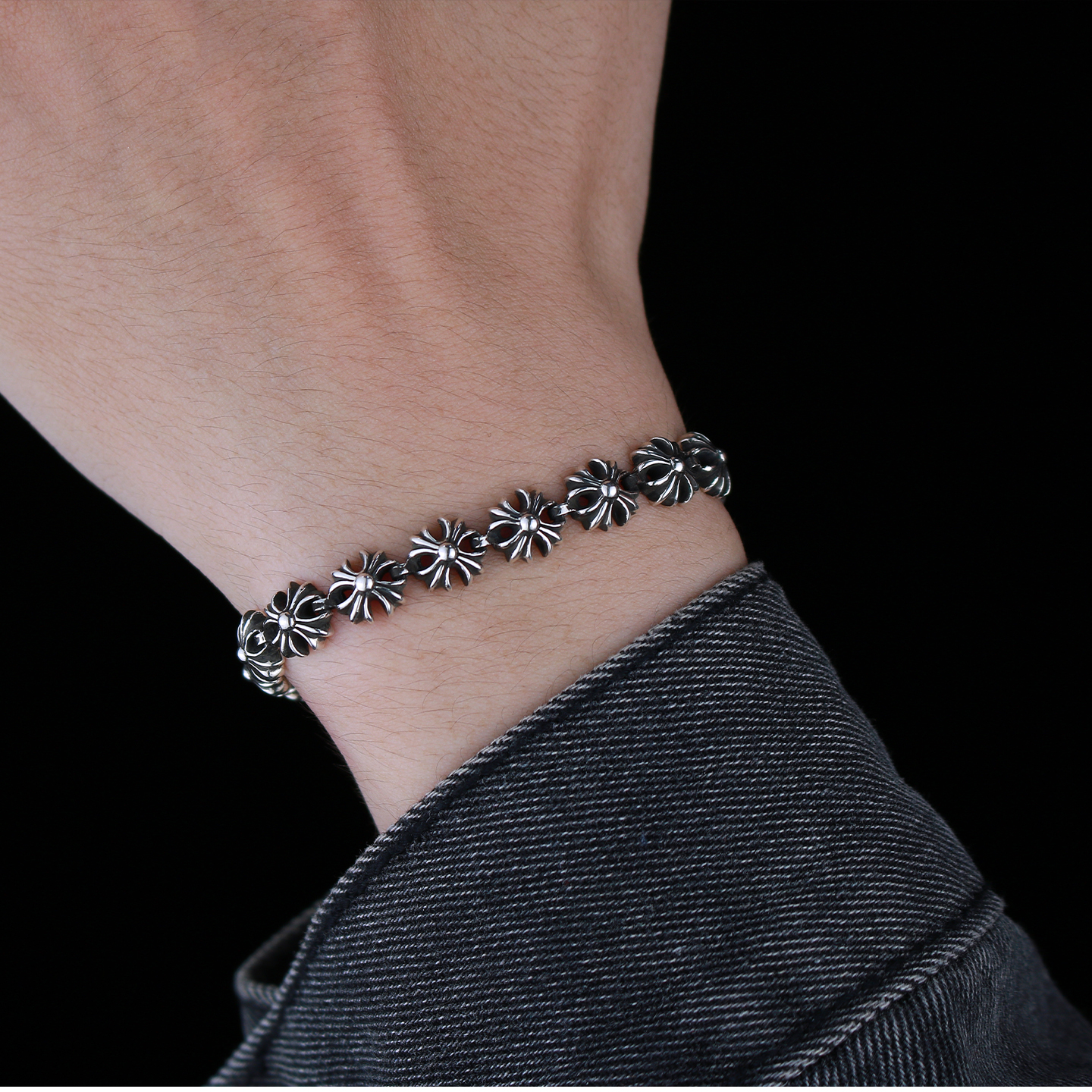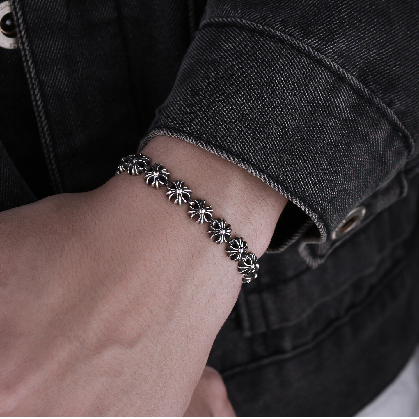 925 Sterling Silver Solid Retro Tinyplus Oblique Cross Bracelet for Men and Women 14K Buckle Punk Style American Silver Jewelry