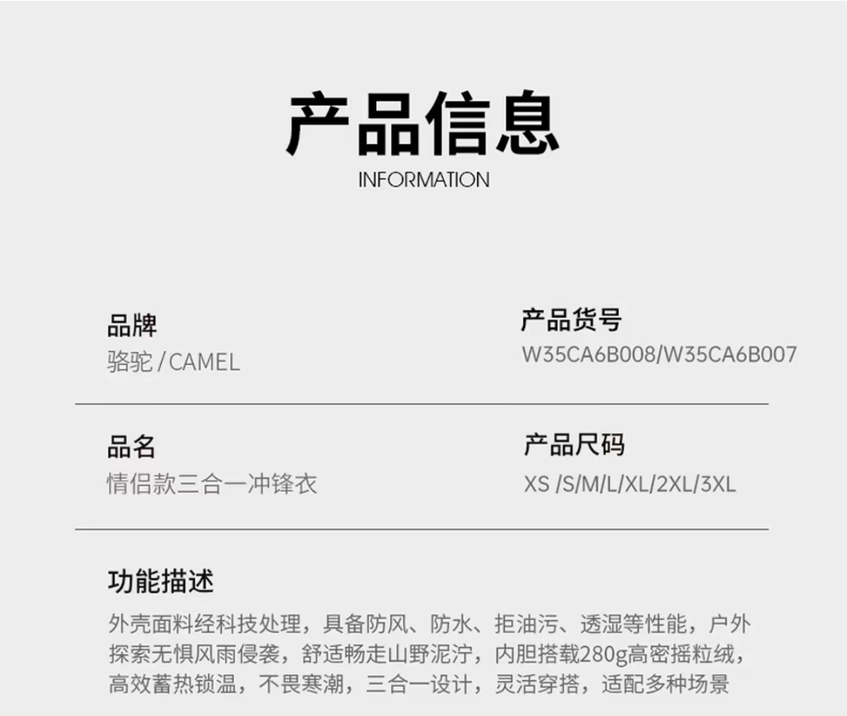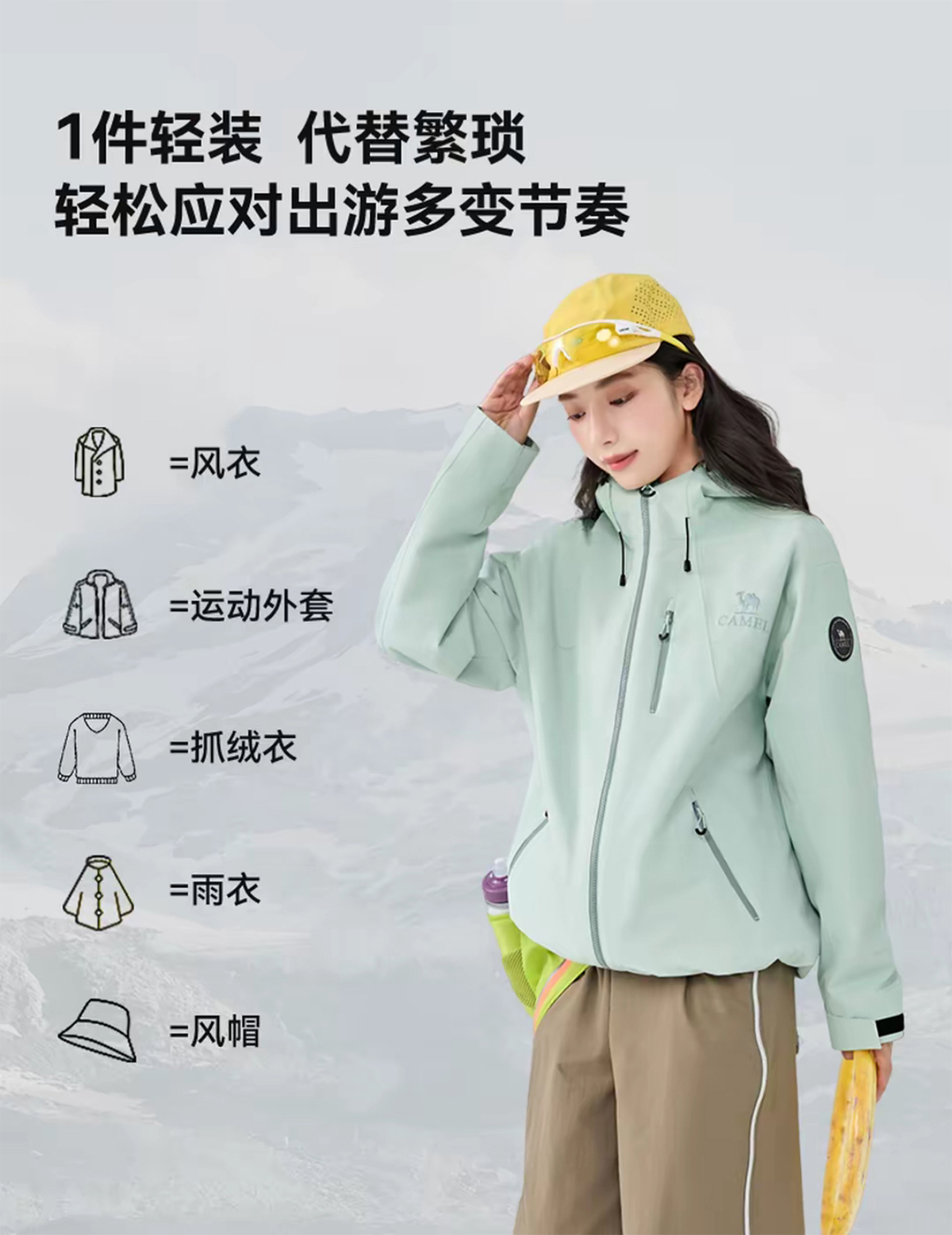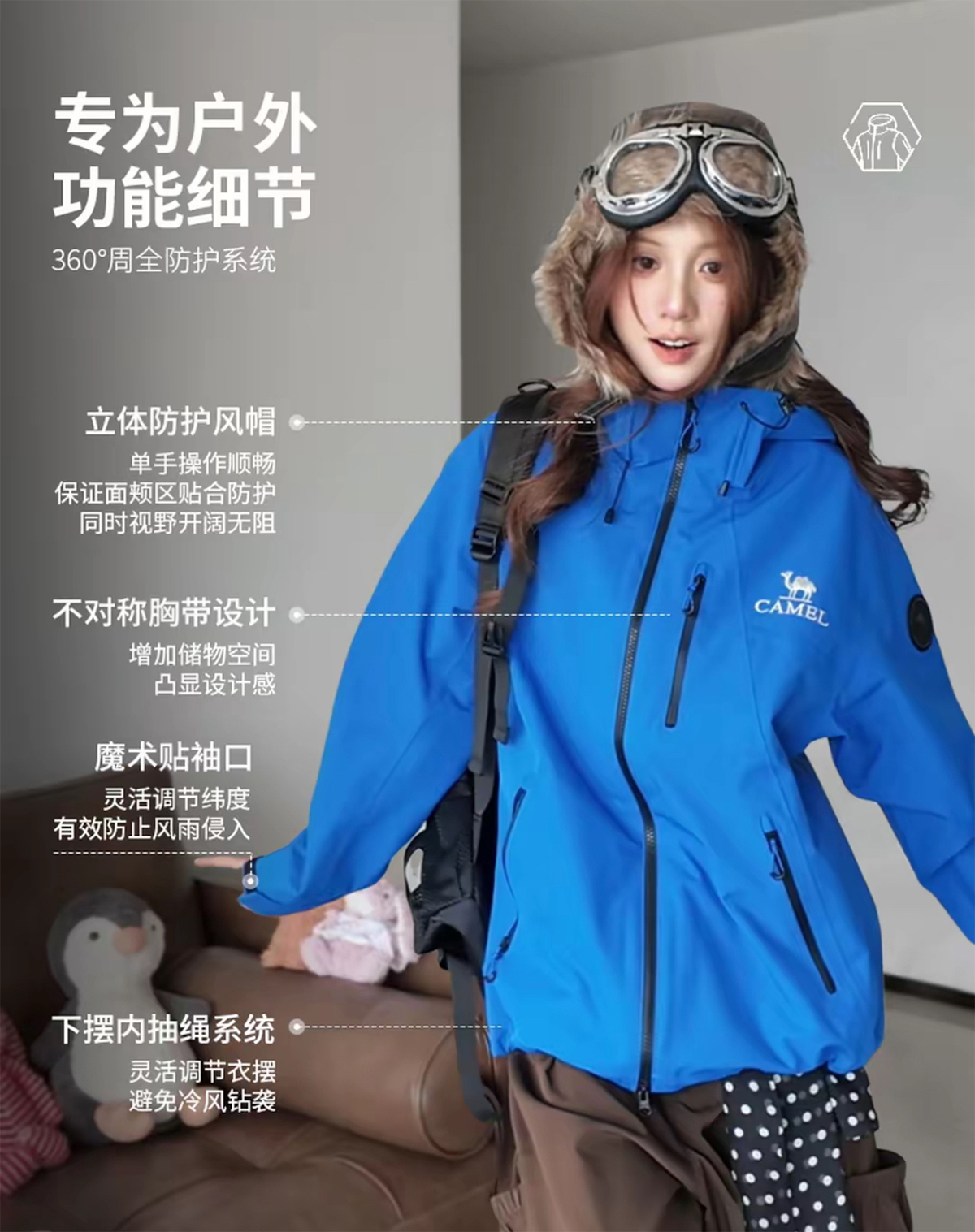 Camel King Kaijia Ultra Jacket Three-In-One Women's 2025 New Model Extreme Shadow Blue Waterproof Travel Jacket Men's