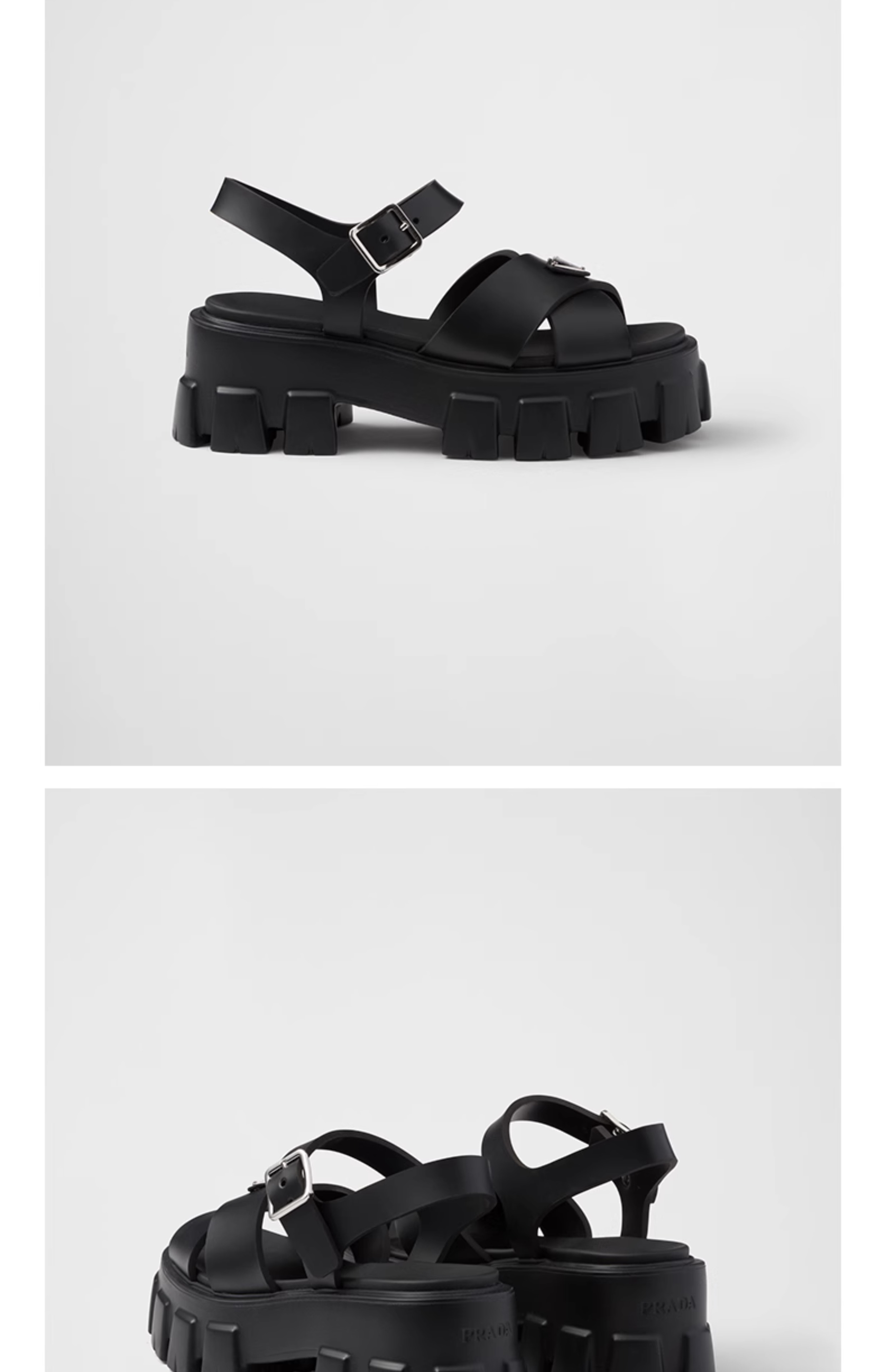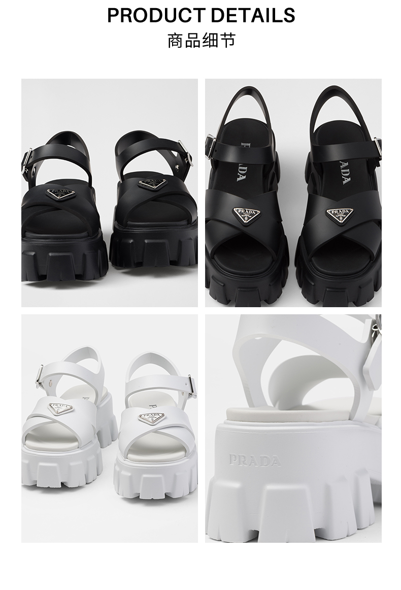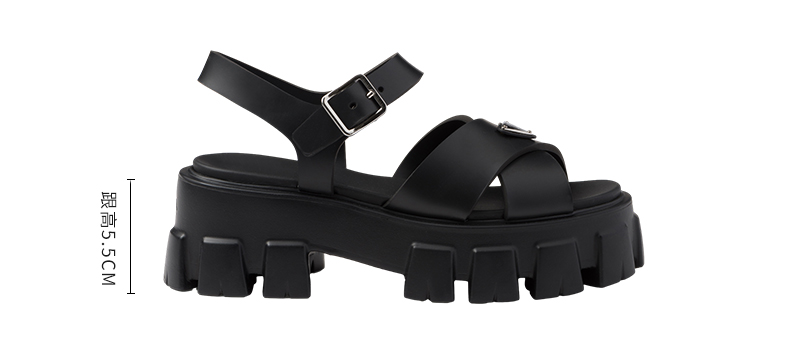 Prada/Prada Women's Triangular Metal Logo Thick-Soled Sandals
