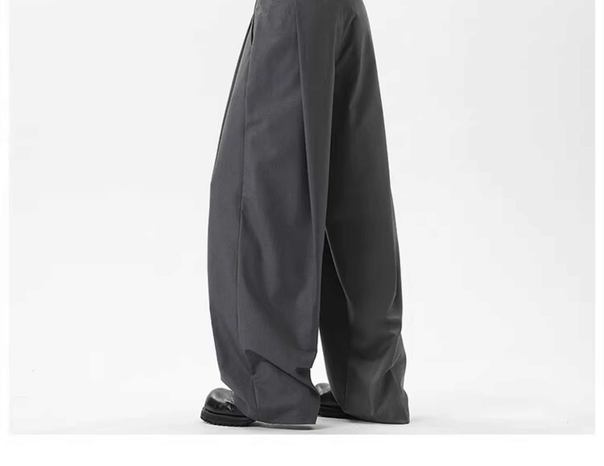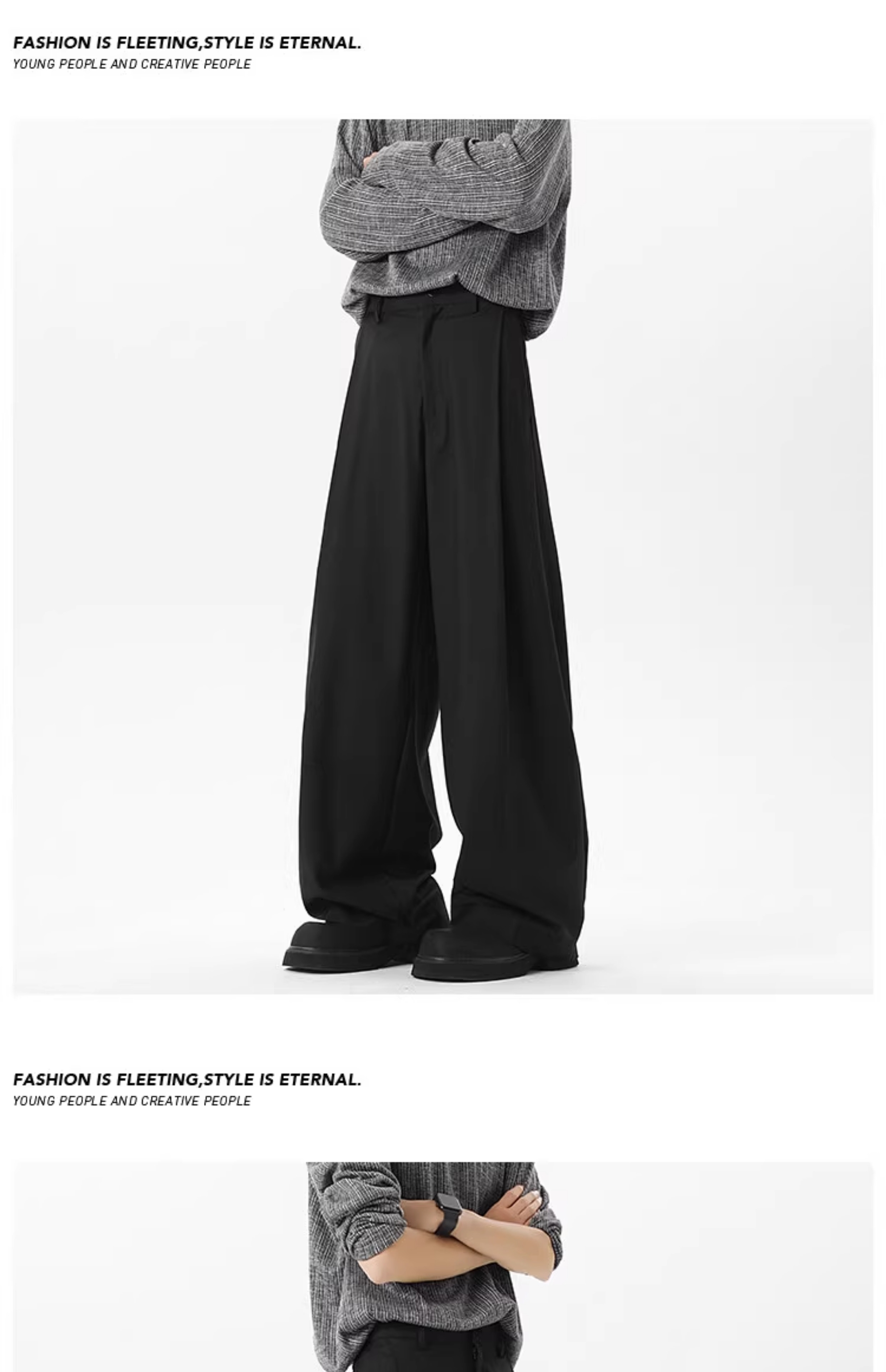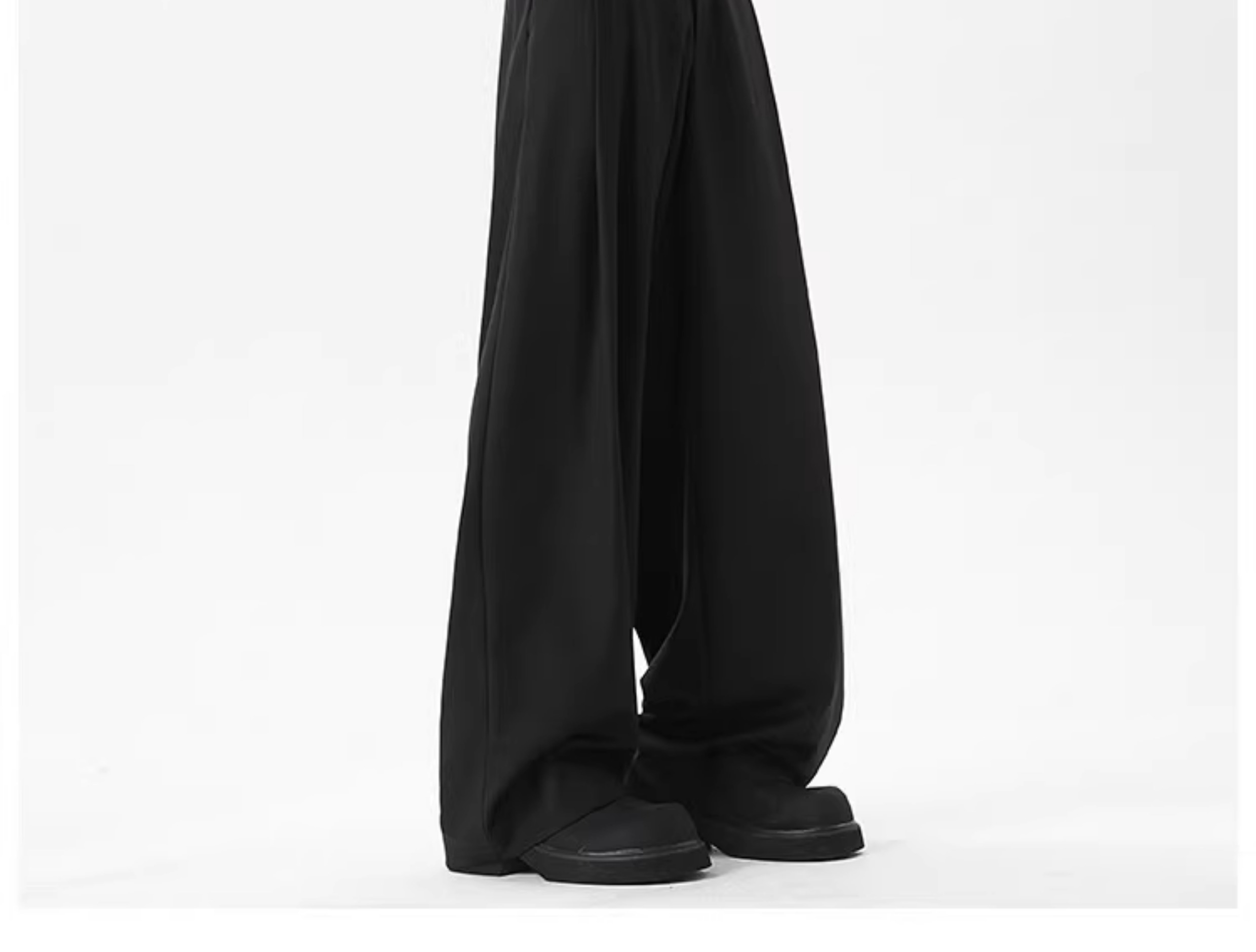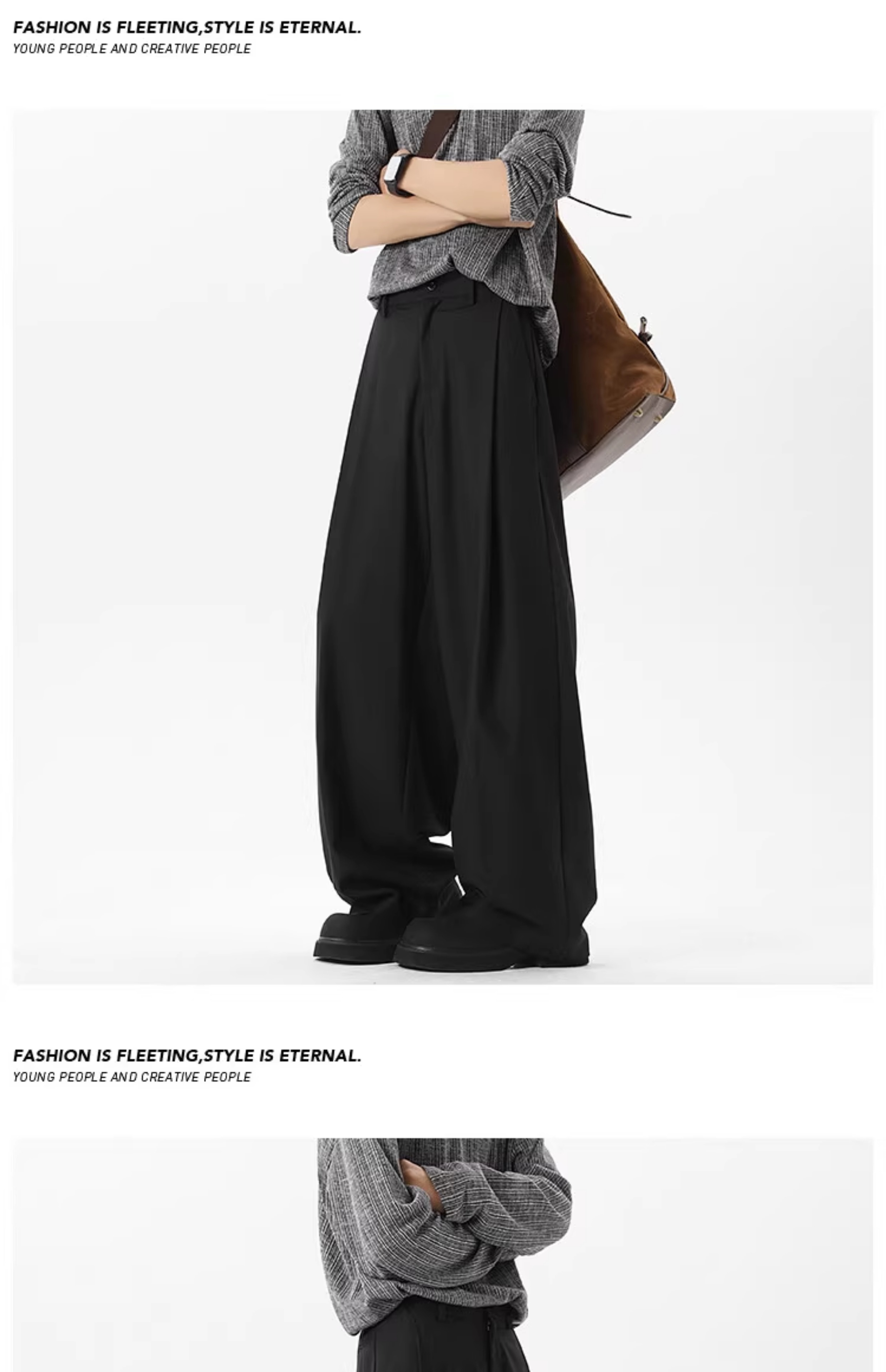 Black Vintage Yamamoto Pants for Men, Winter High Street Pleated Wide-Leg Casual Dress Pants, American Style Trendy Straight-Leg Suit Pants