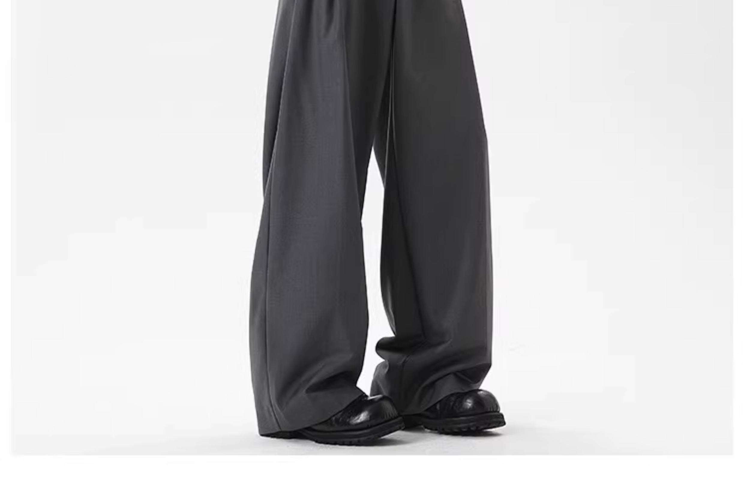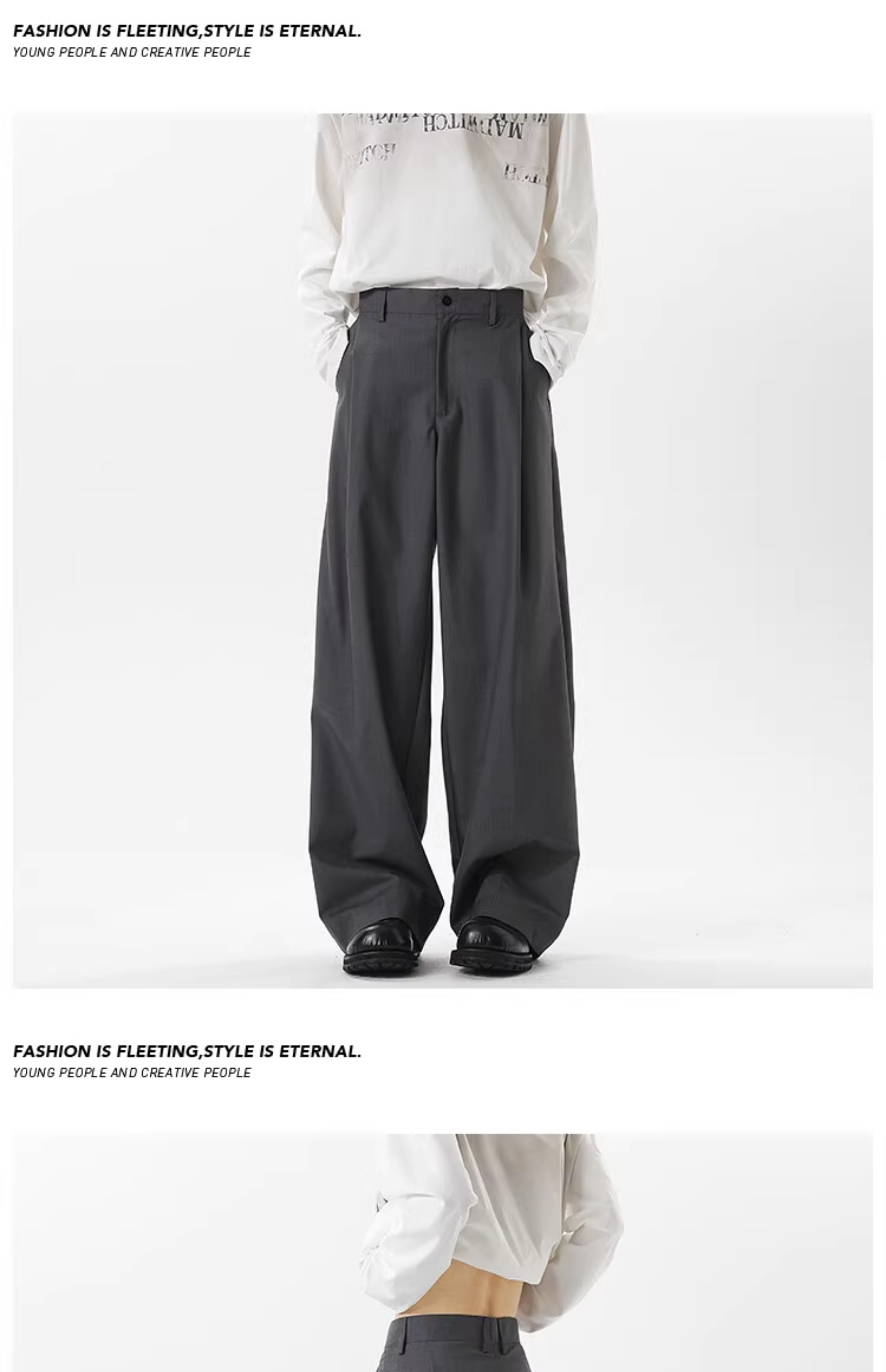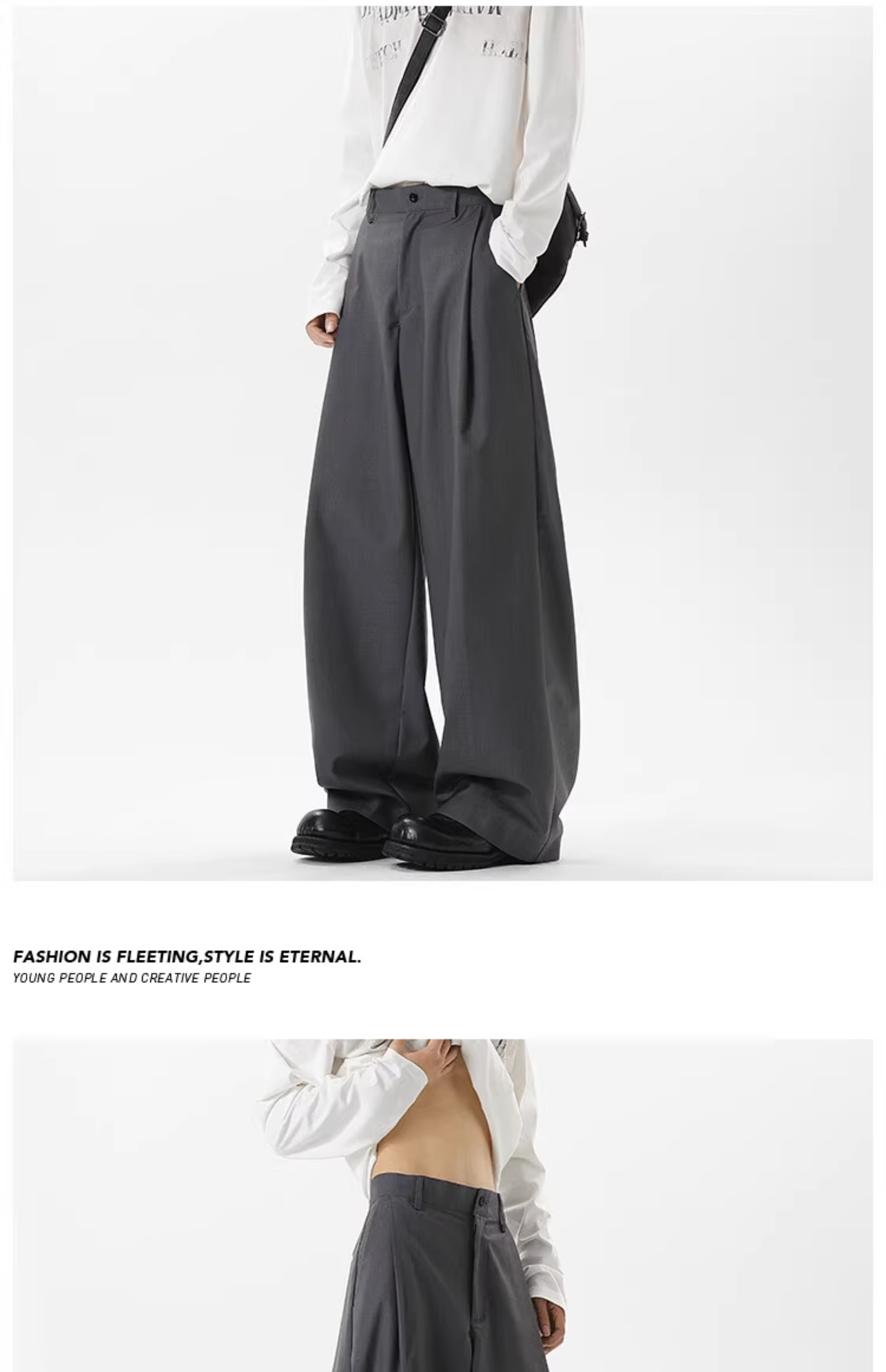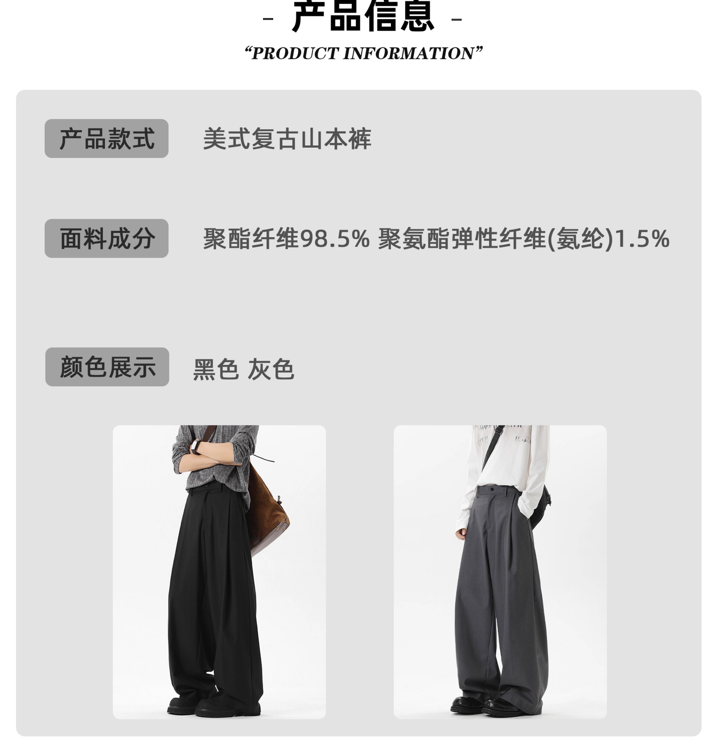 Black Vintage Yamamoto Pants for Men, Winter High Street Pleated Wide-Leg Casual Dress Pants, American Style Trendy Straight-Leg Suit Pants