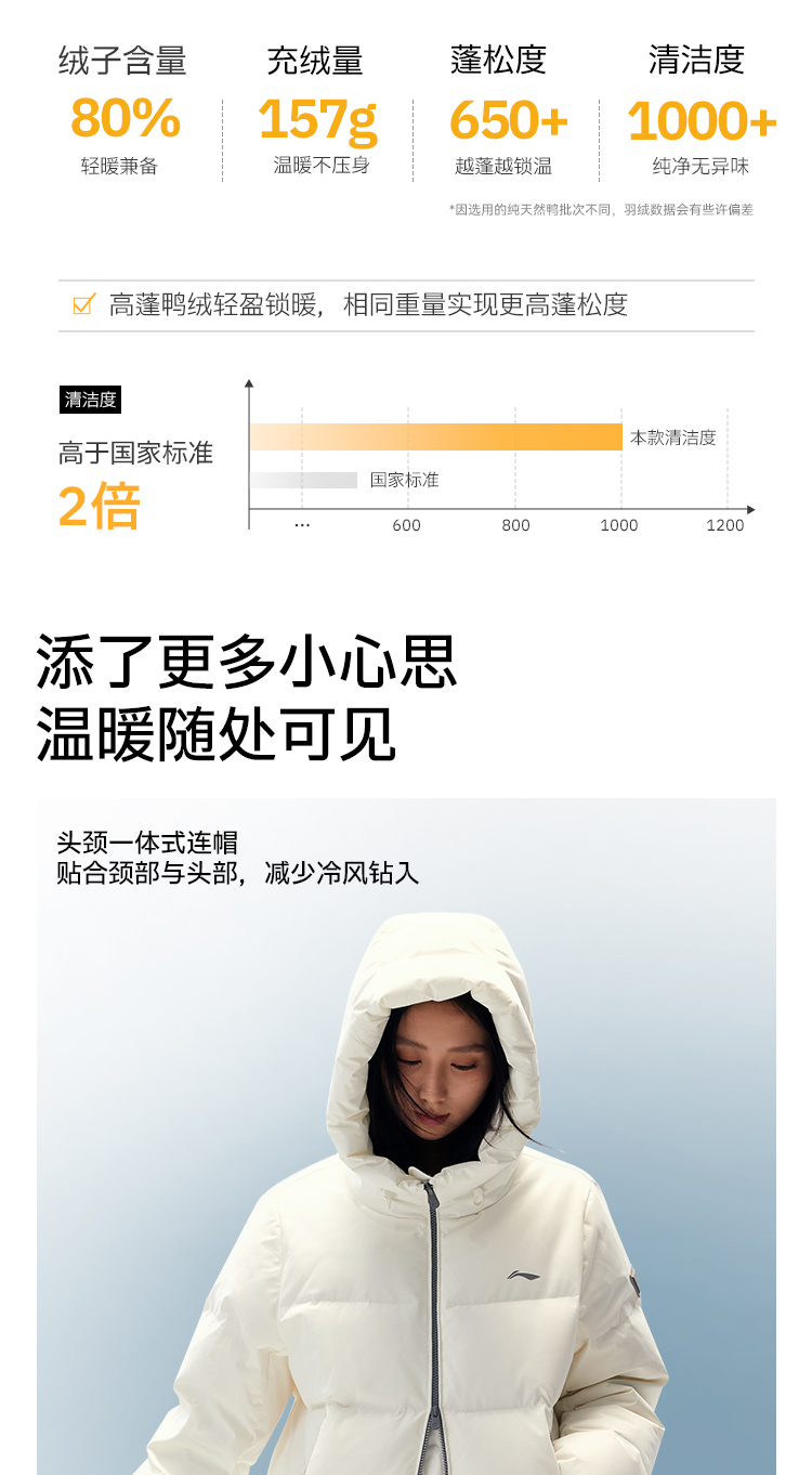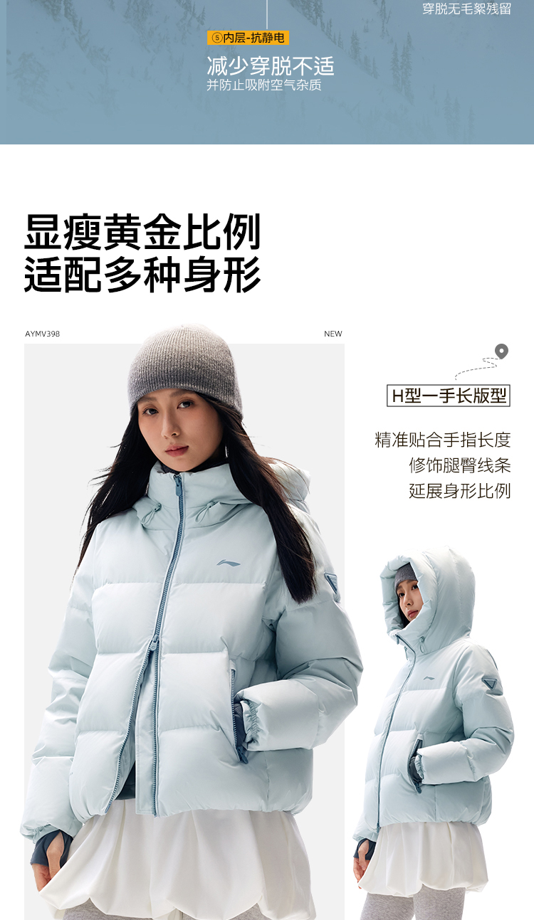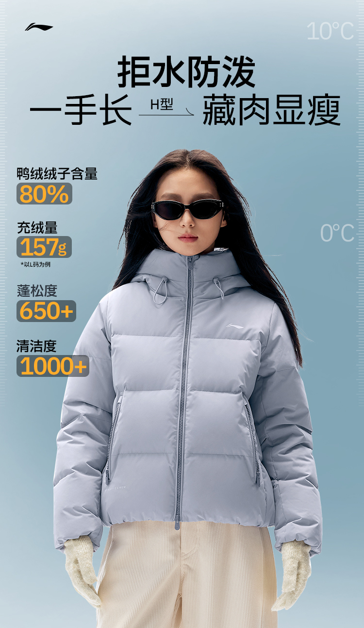 Li-Ning Hot Pot down Jacket | Women's Winter New Hooded Short Top Duck down Clothing Women's Warm Sports Coat