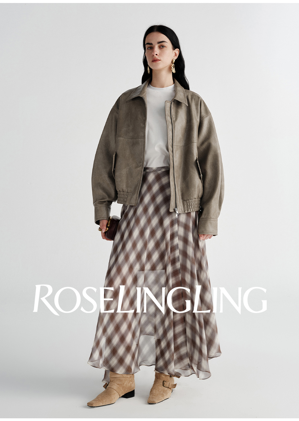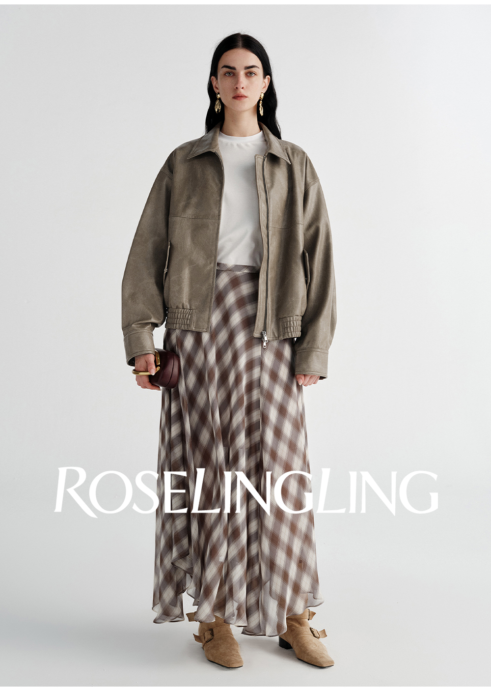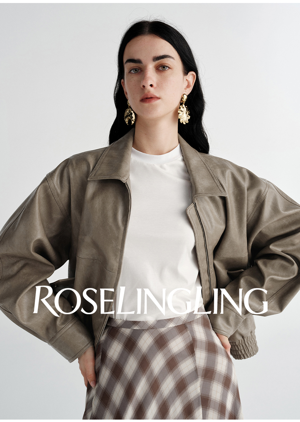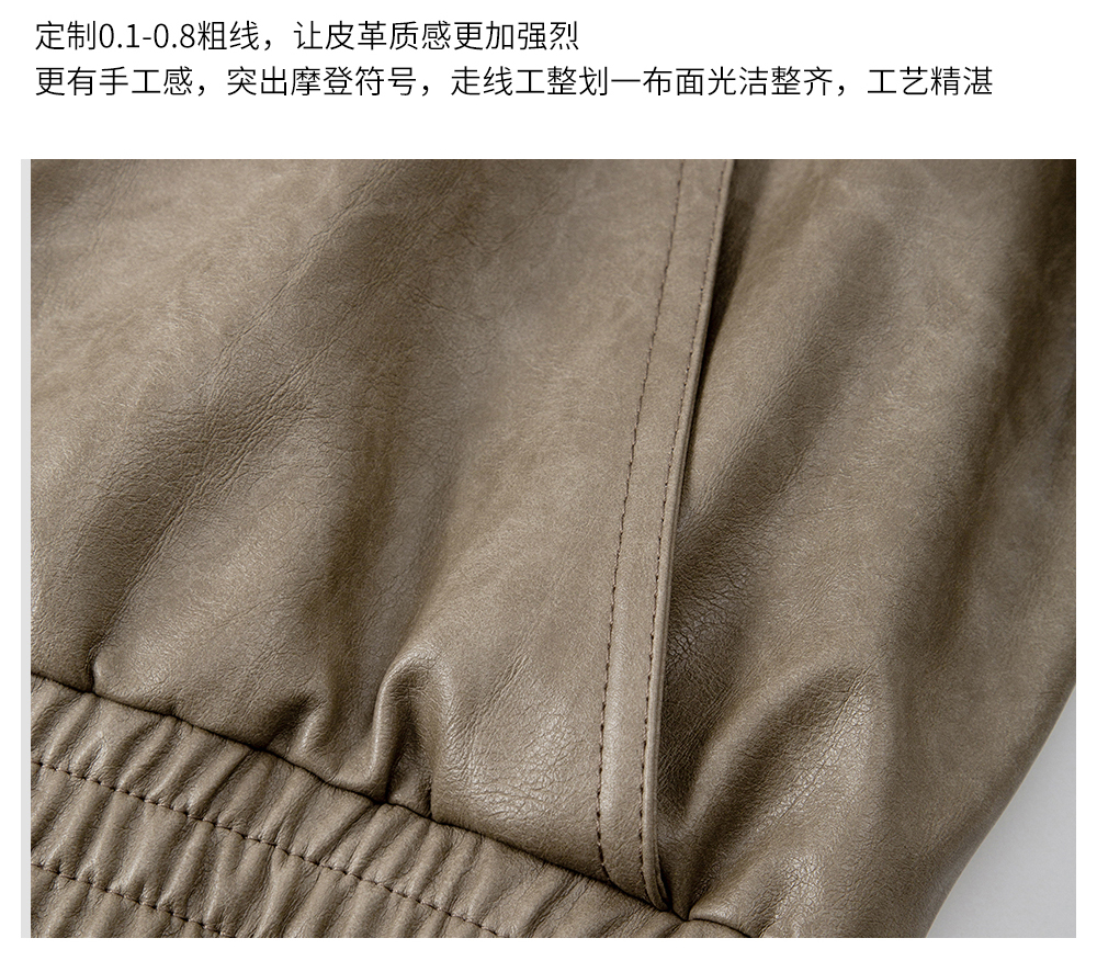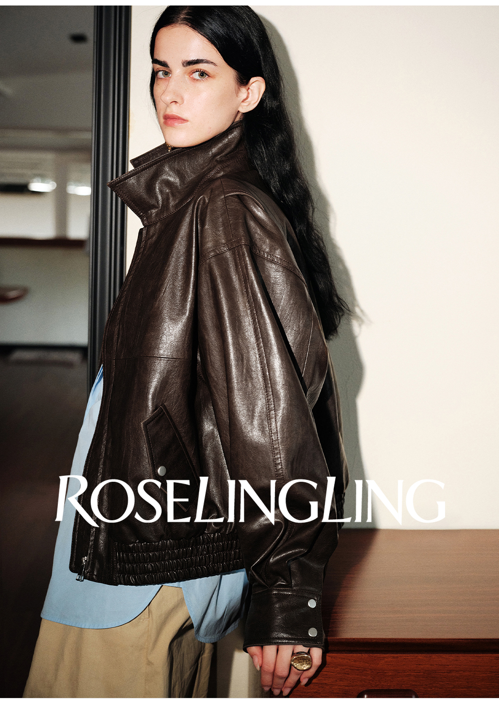 Roselingling Retro Brown Motorcycle Leather Jacket Lapel Coffee Color Loose Short Leather Jacket for Women