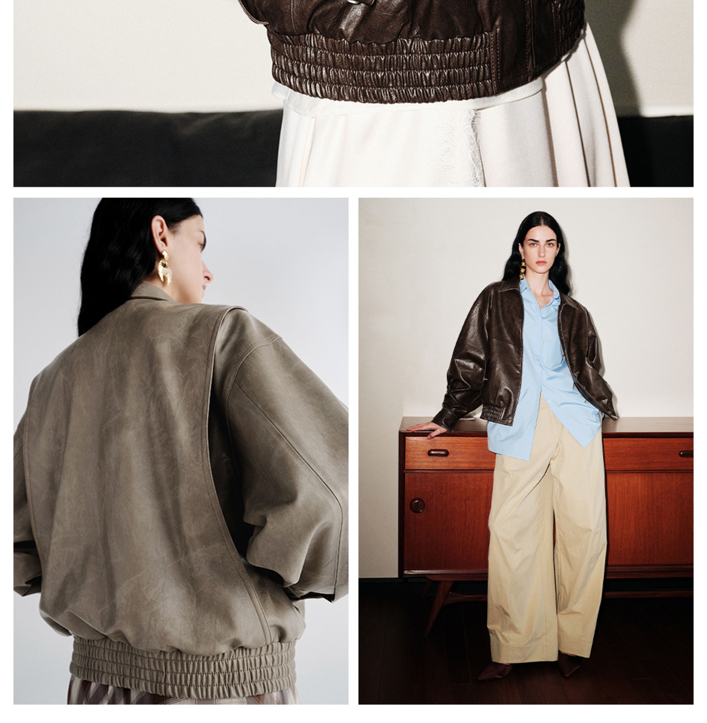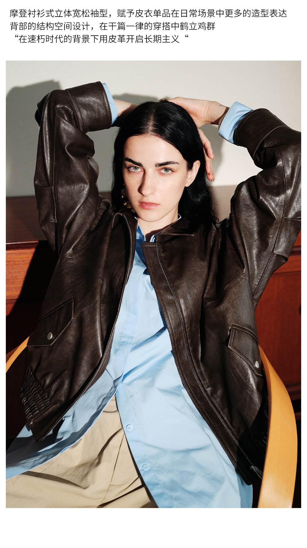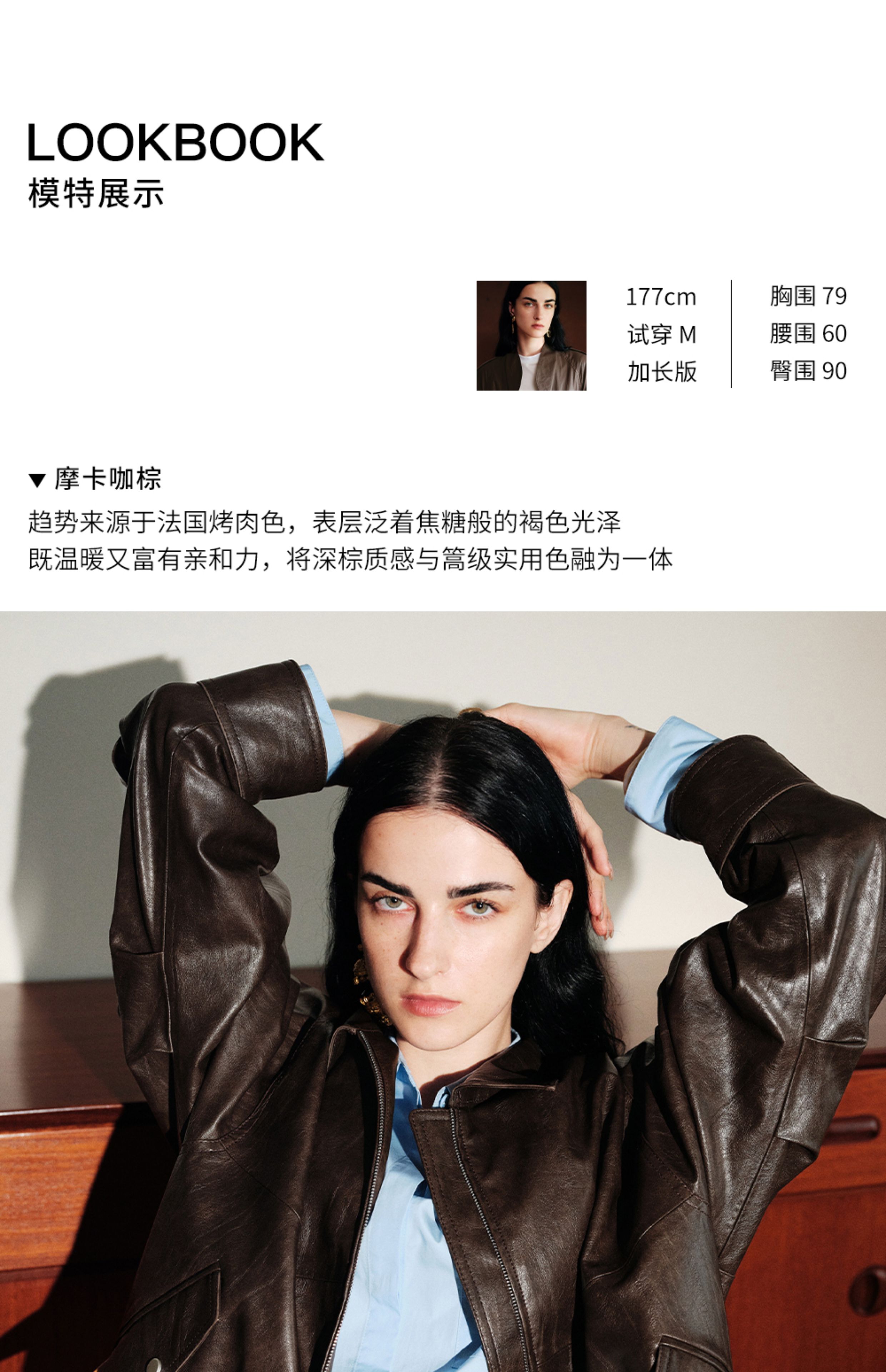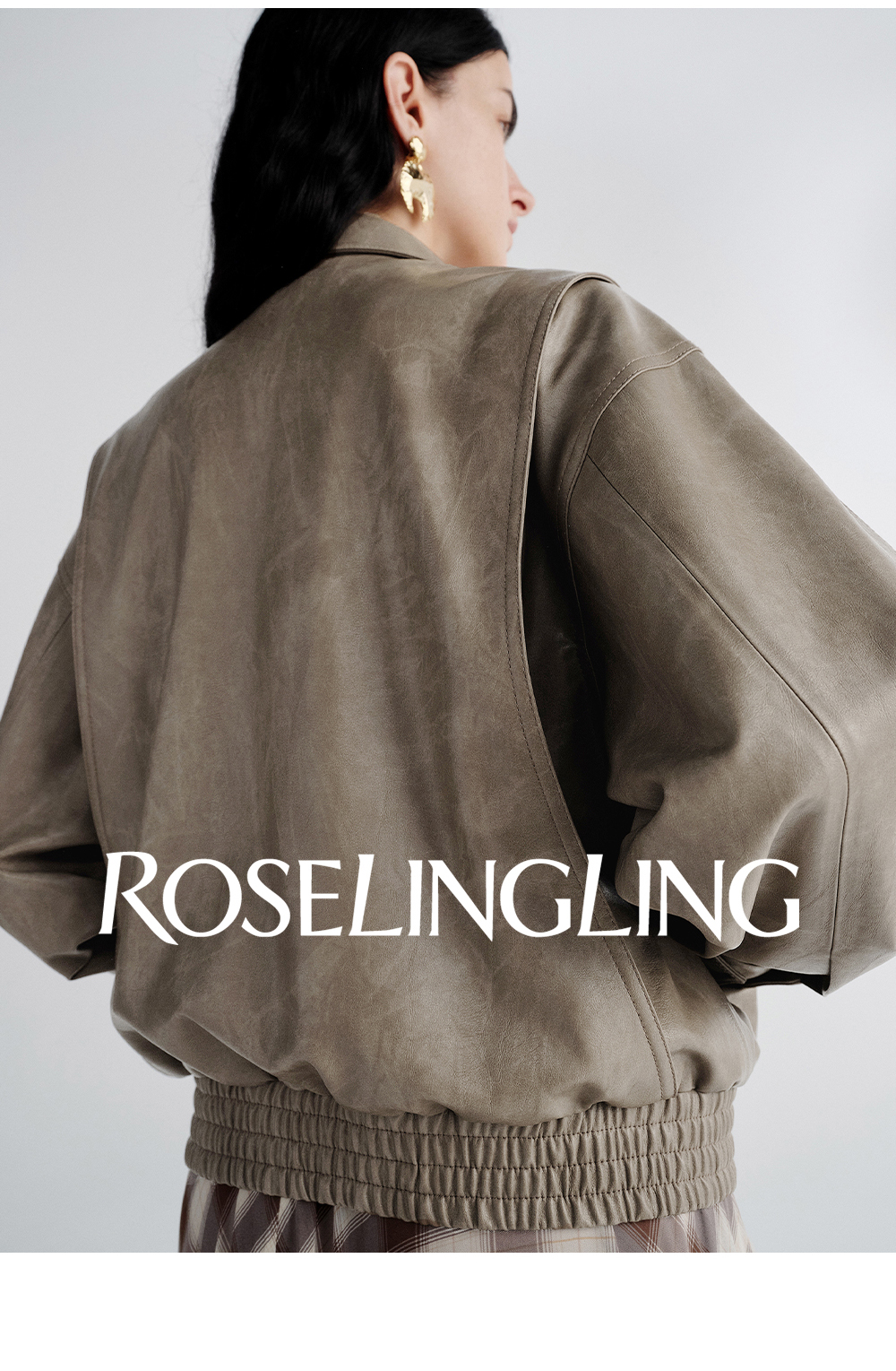 Roselingling Retro Brown Motorcycle Leather Jacket Lapel Coffee Color Loose Short Leather Jacket for Women