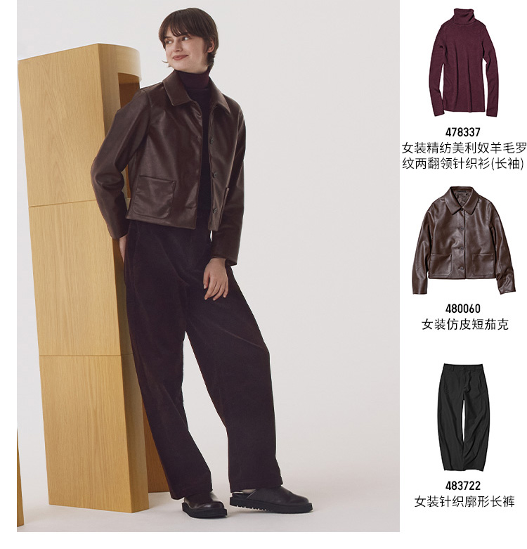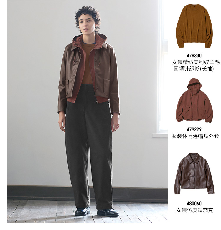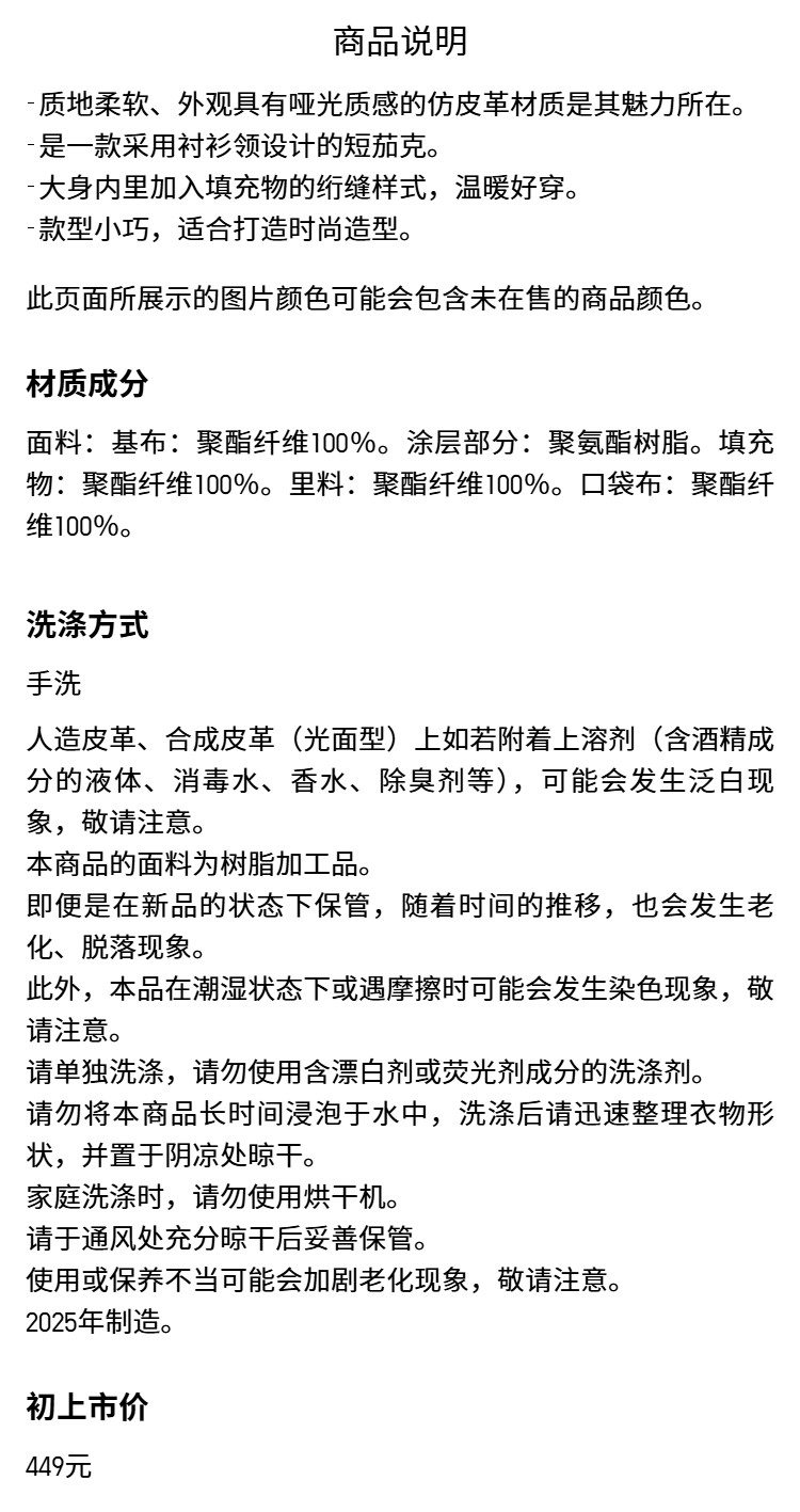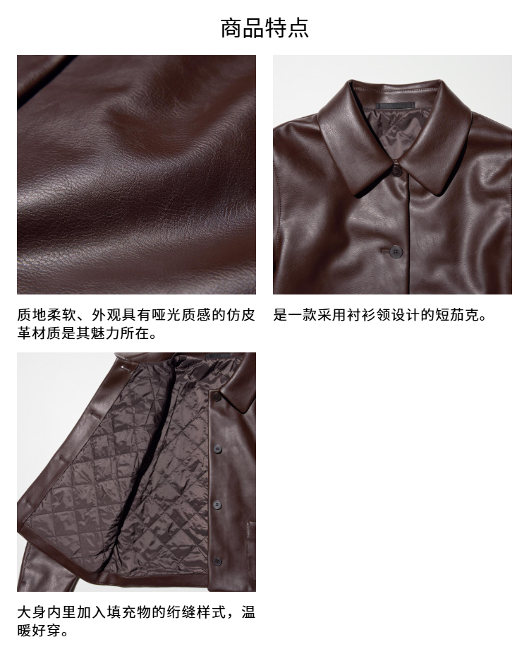 Uniqlo Women's Faux Leather Short Jacket/Coat Casual Fashion Lapel Jacket 480060