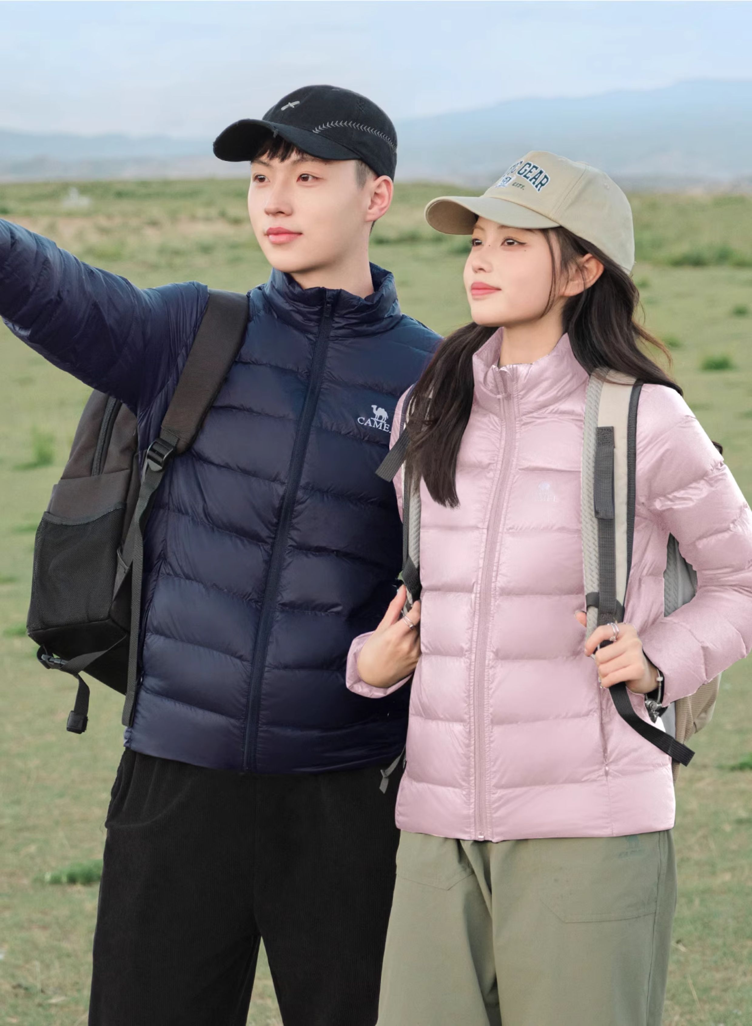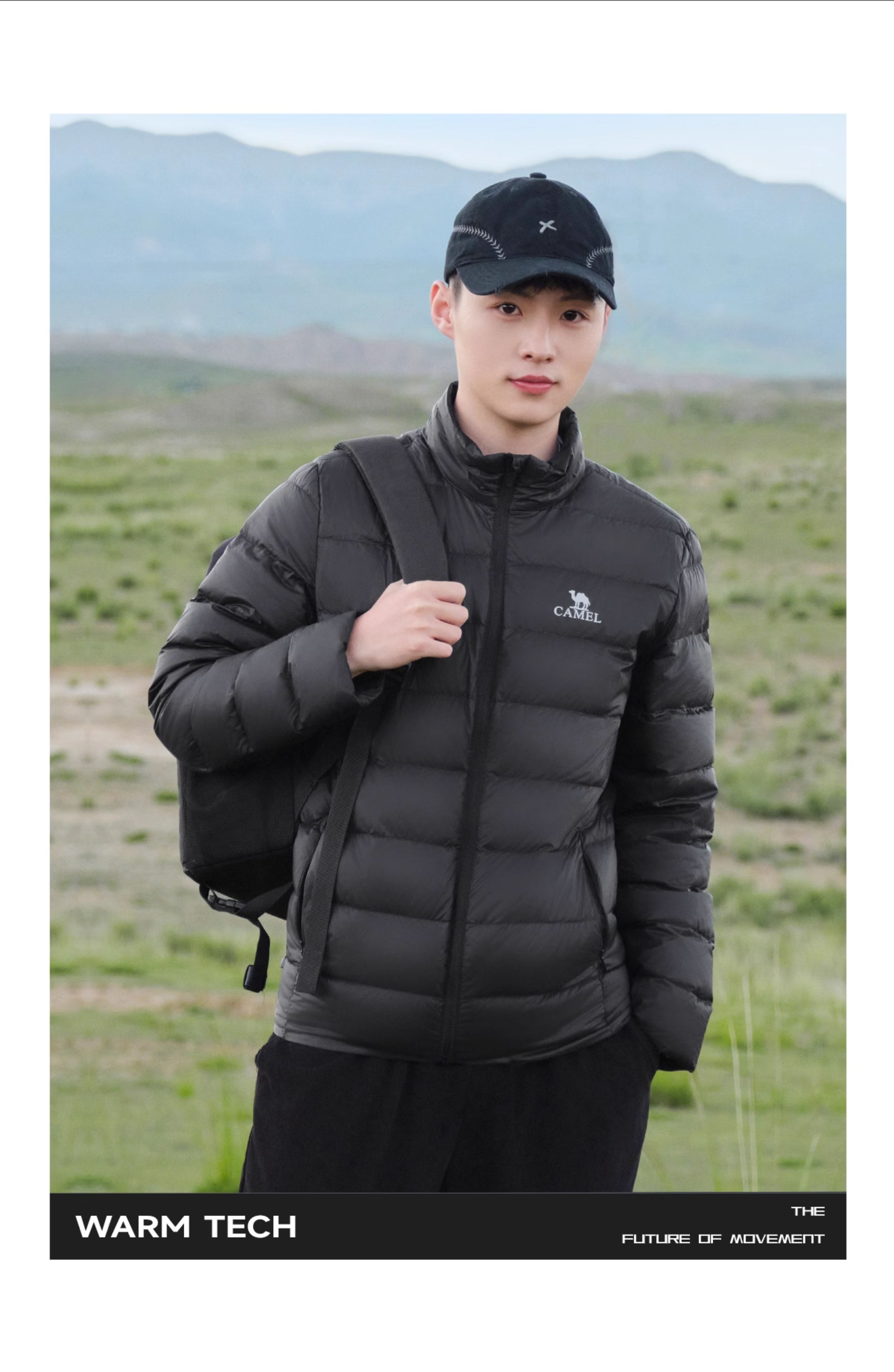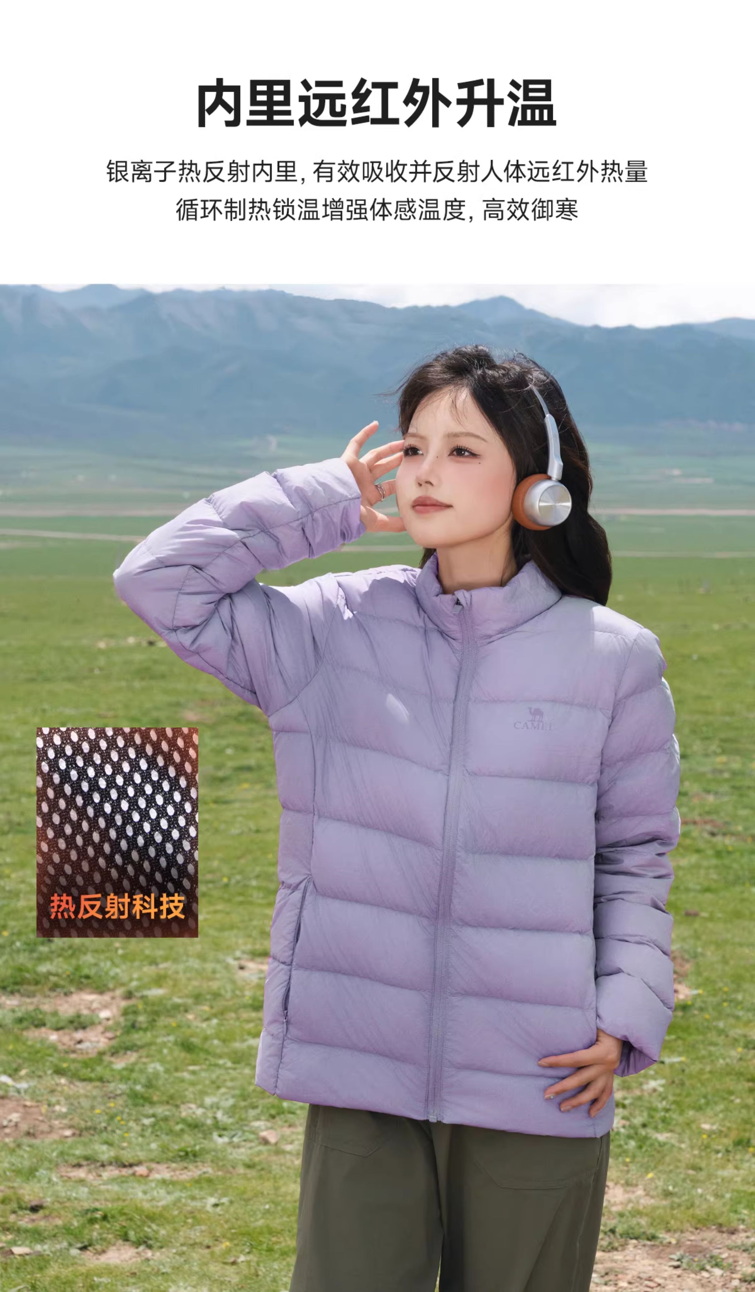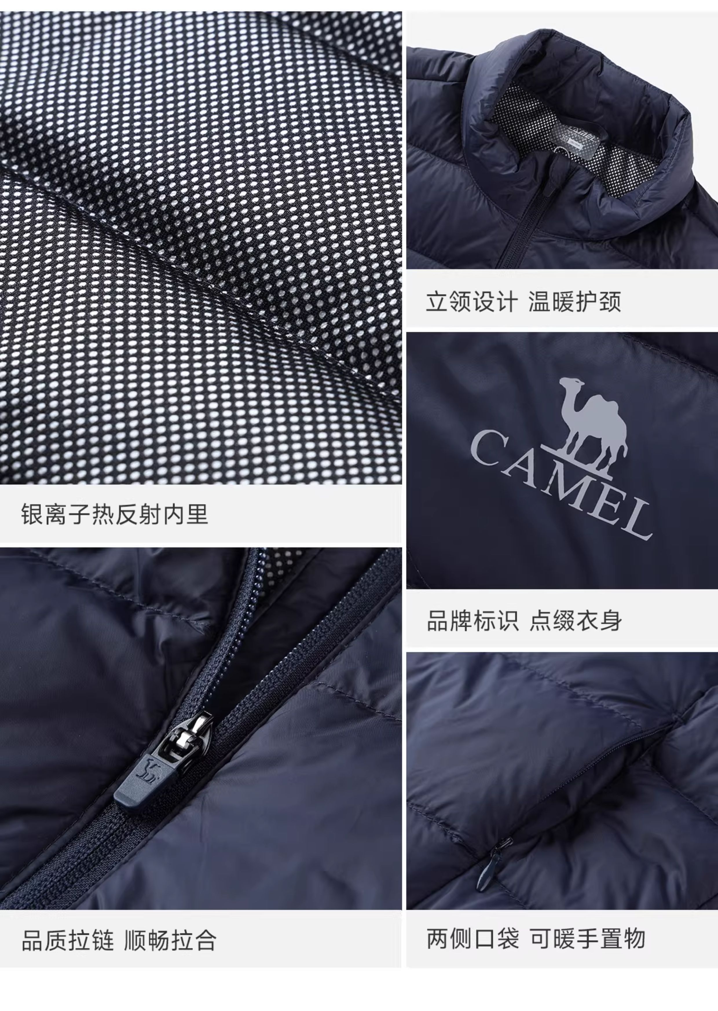 Camel Lightweight down Jacket for Men, Winter Sports Ribbed down Casual Stand-Up Collar Warm Duck down Inner Liner Jacket for Women