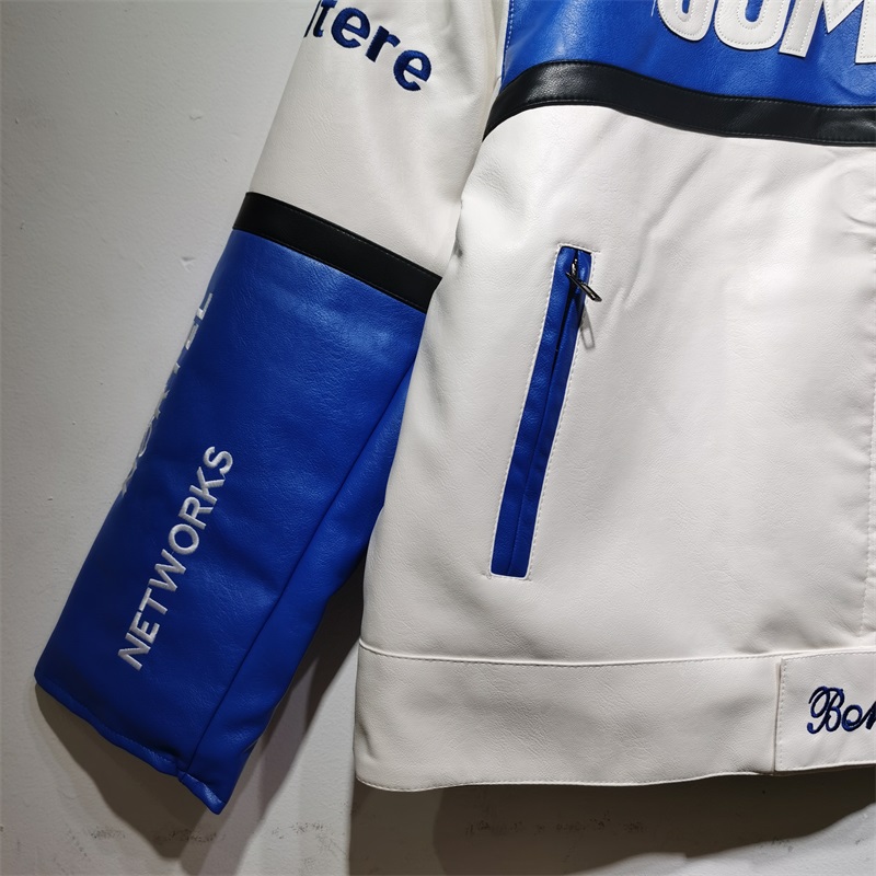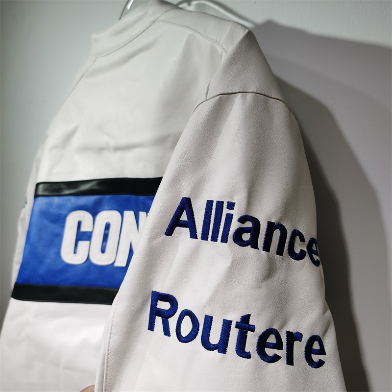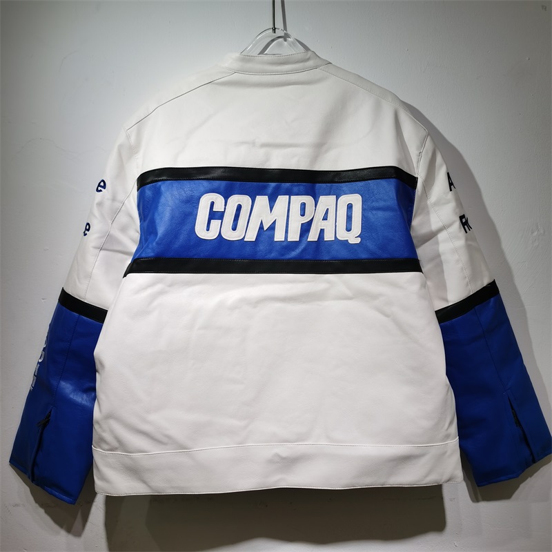 Bmw X Compaq X Castrol Vintage Leather Jacket Heavy-Duty Patchwork Embroidered Racing Jacket Trendy