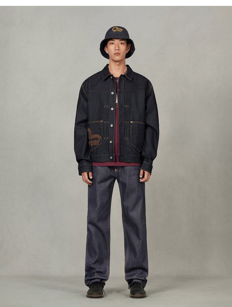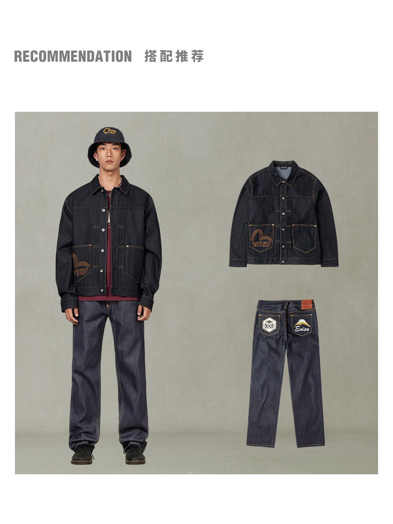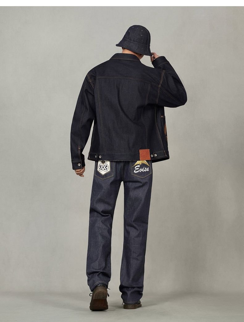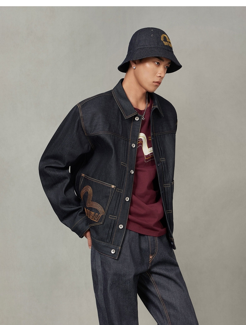 Evisu Fushen 2025 Autumn New Men's Classic Logo Embroidered Pure Cotton Lapel Denim Jacket