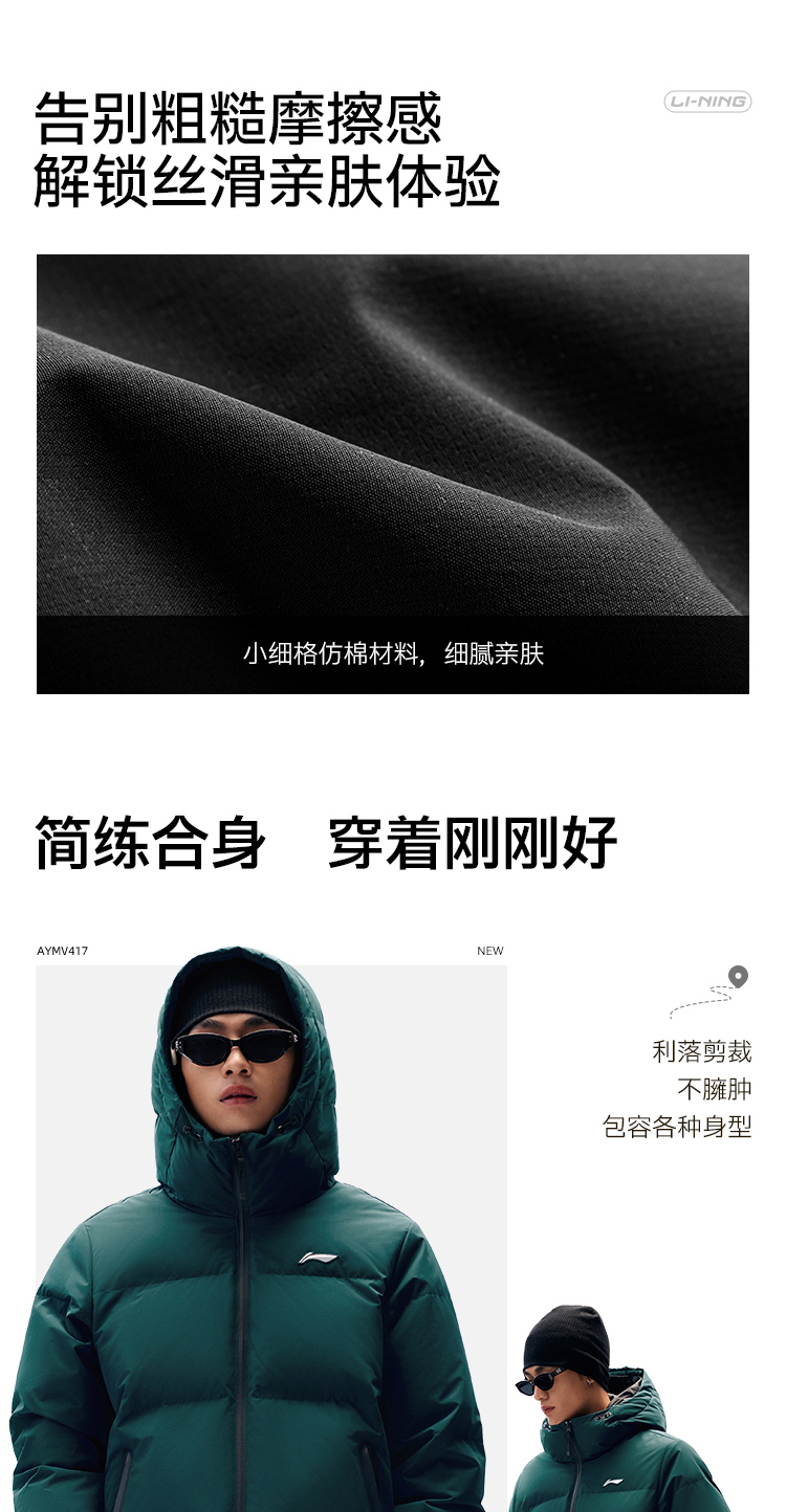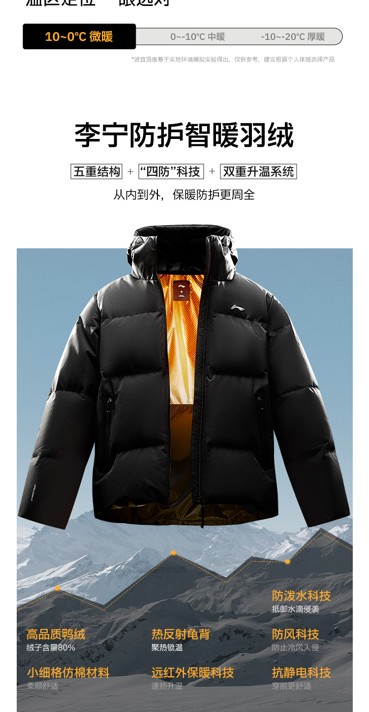 Li-Ning Hot Pot down Jacket | Men's New Winter Warm Clothing Hooded Short Top Duck down Sports Jacket