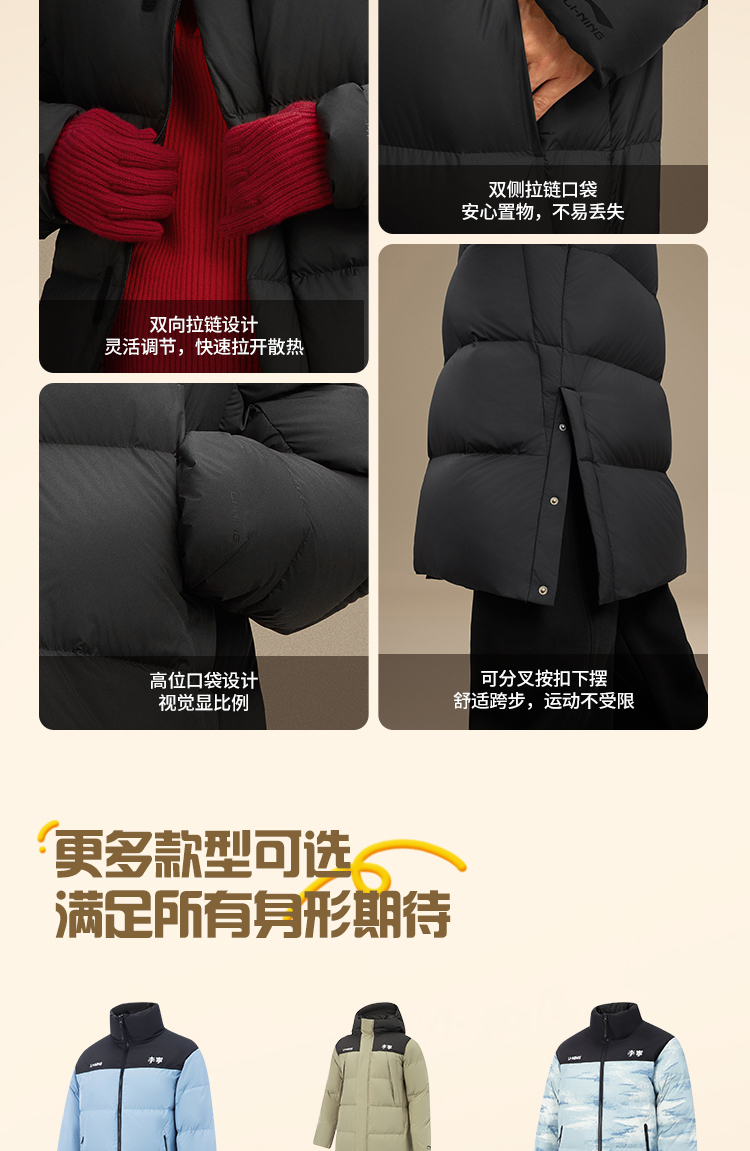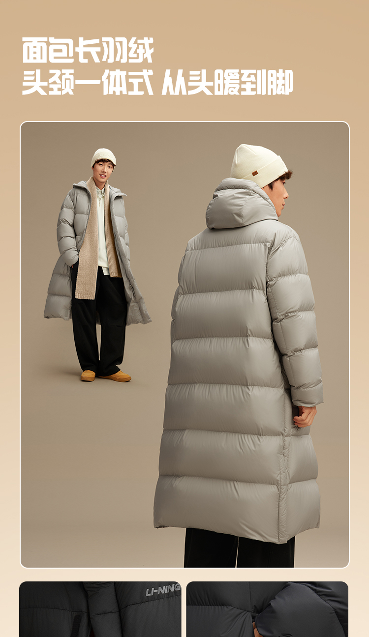 Li-Ning Hot Pot Long down Jacket for Men 2025 New Hooded Loose Top Autumn Casual Duck down Sportswear