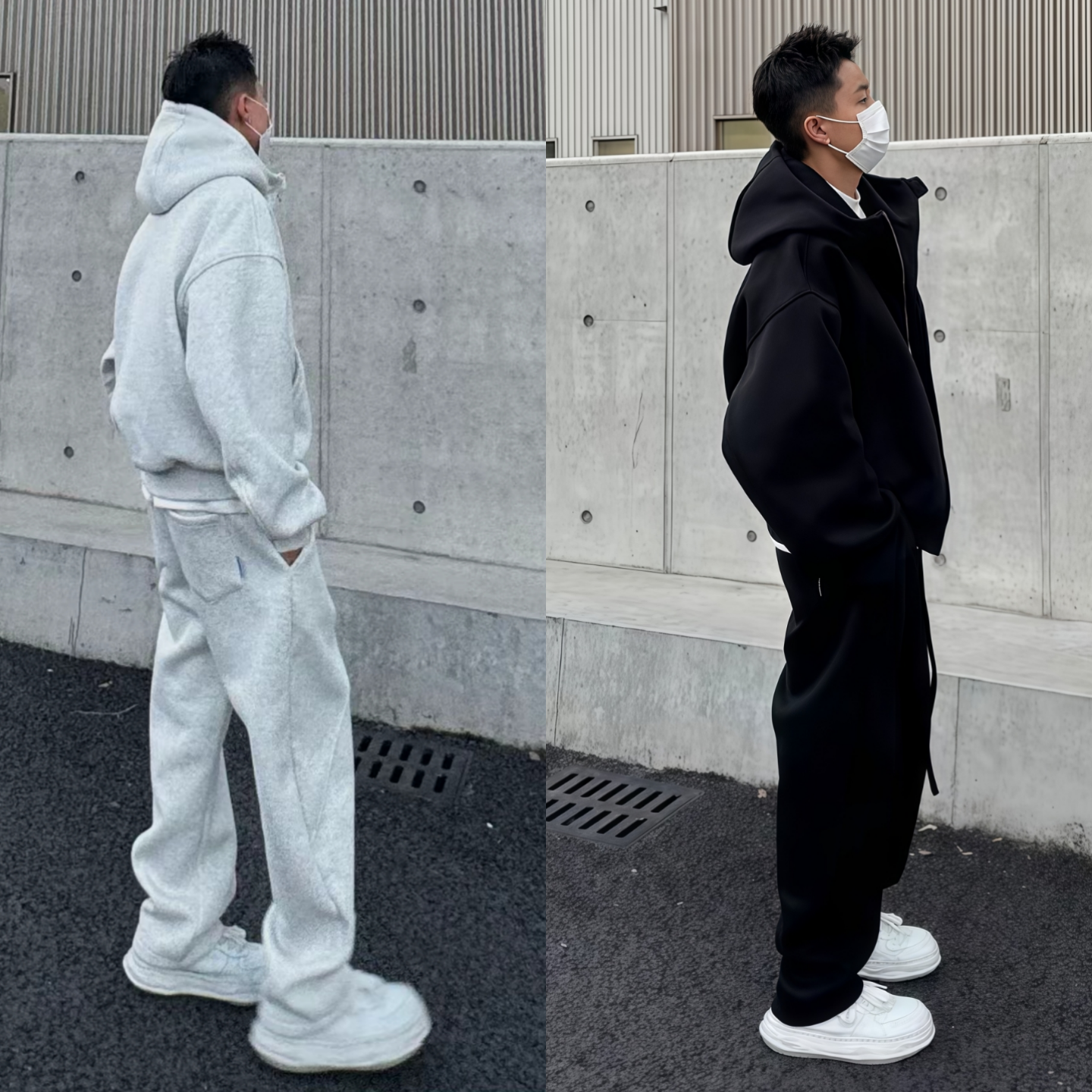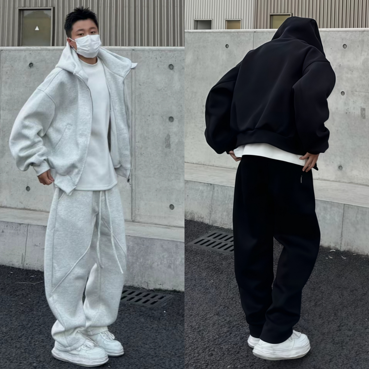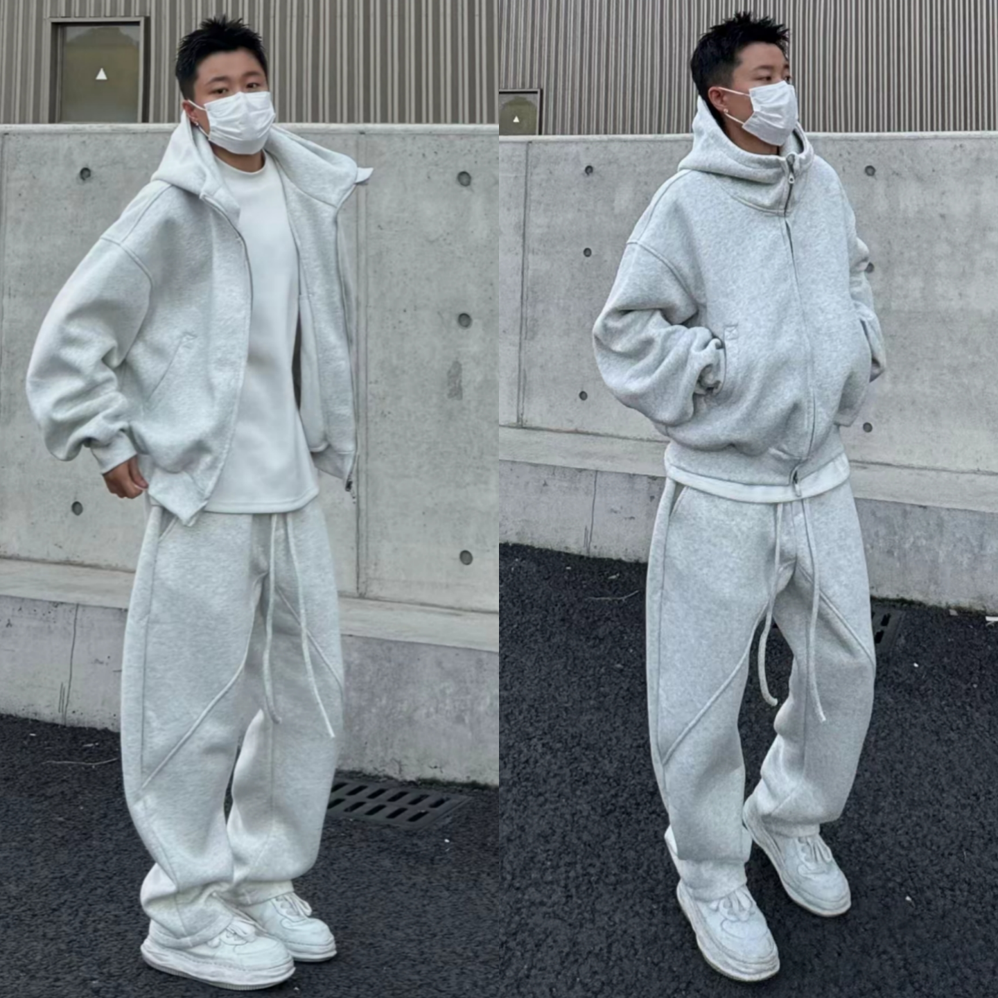 Autumn American-Style Simple Sports Suit for Men, Hooded Cardigan Sweatshirt, Trendy Casual Sweatpants, Two-Piece Set