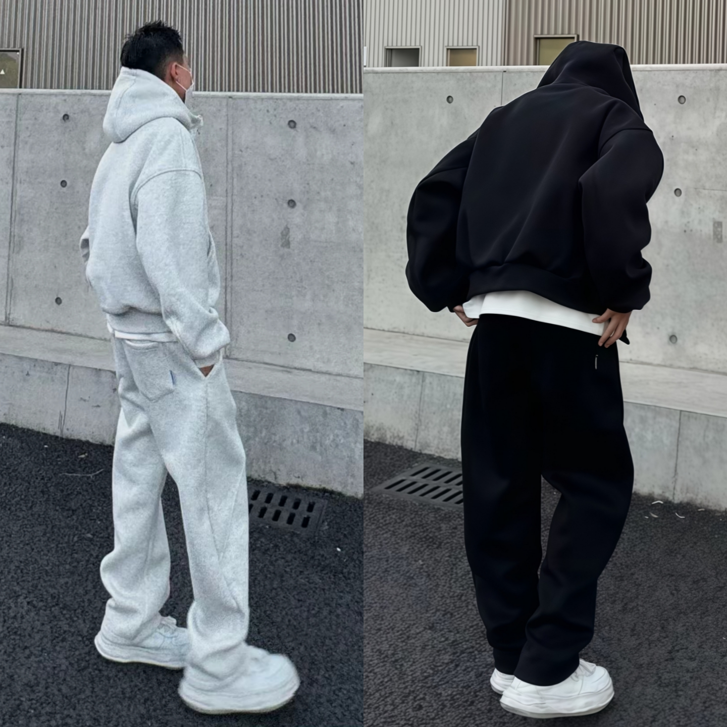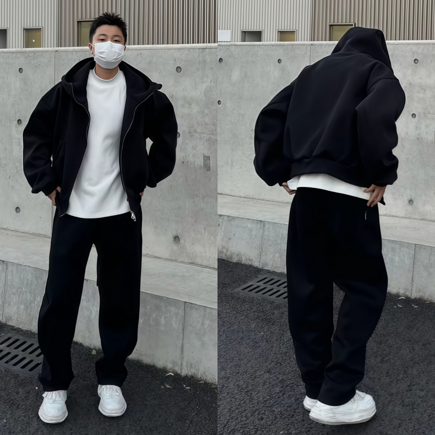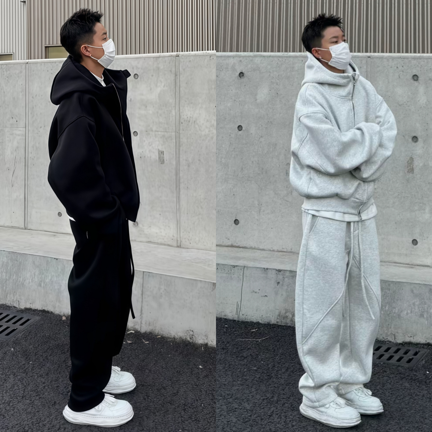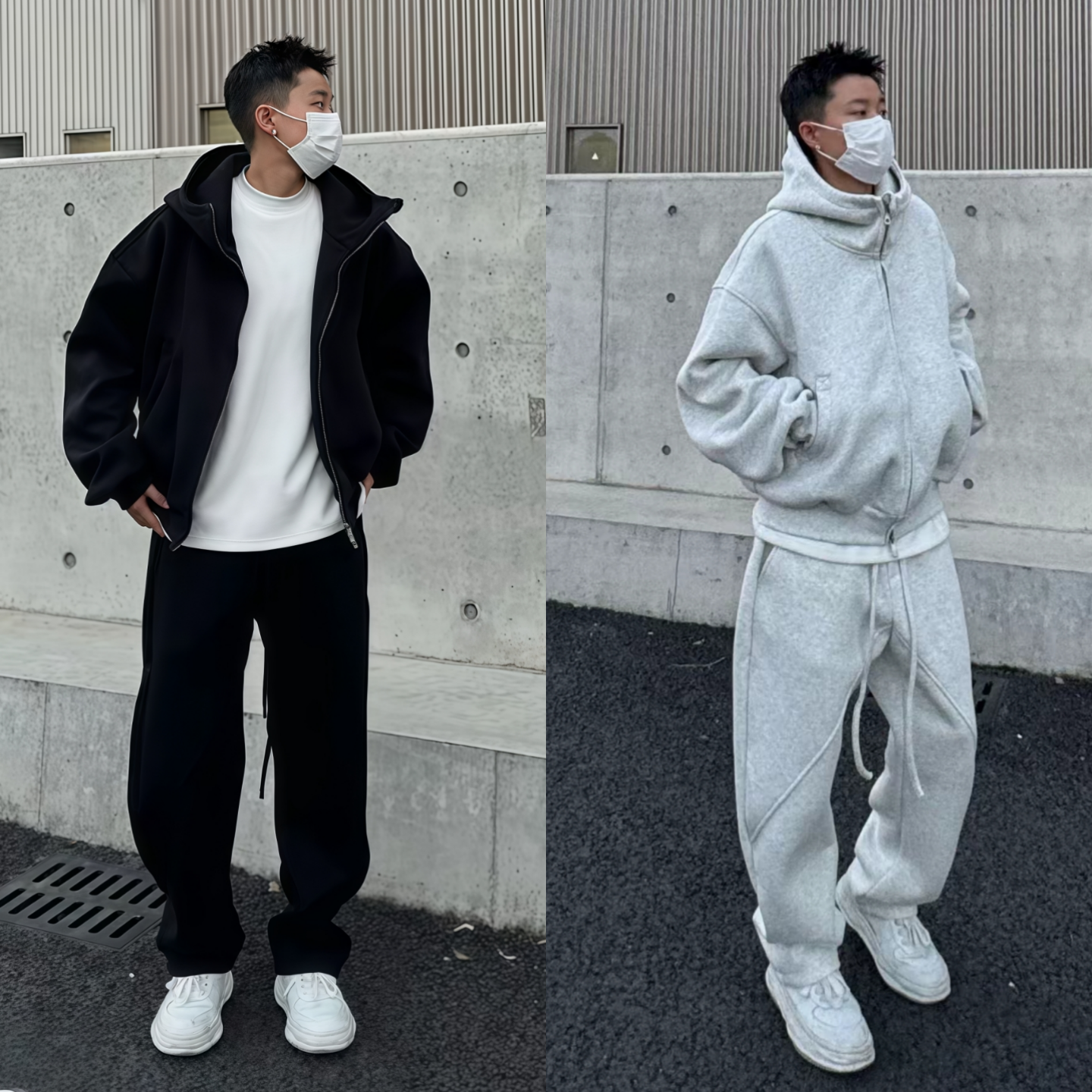 Autumn American-Style Simple Sports Suit for Men, Hooded Cardigan Sweatshirt, Trendy Casual Sweatpants, Two-Piece Set
