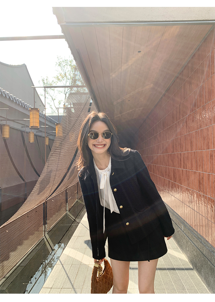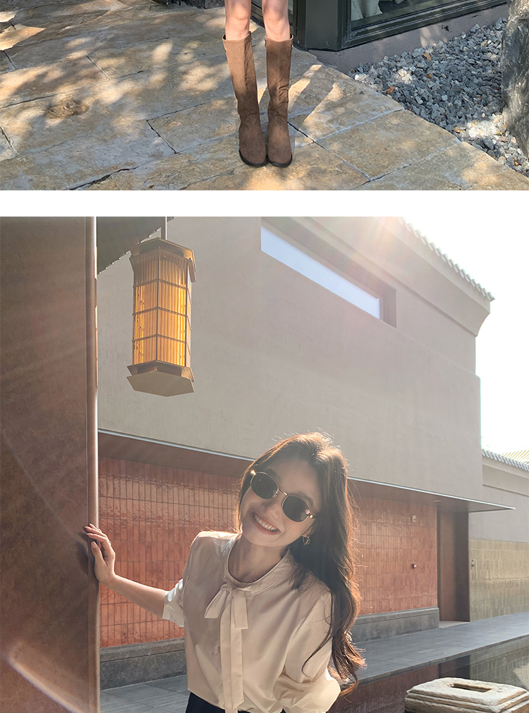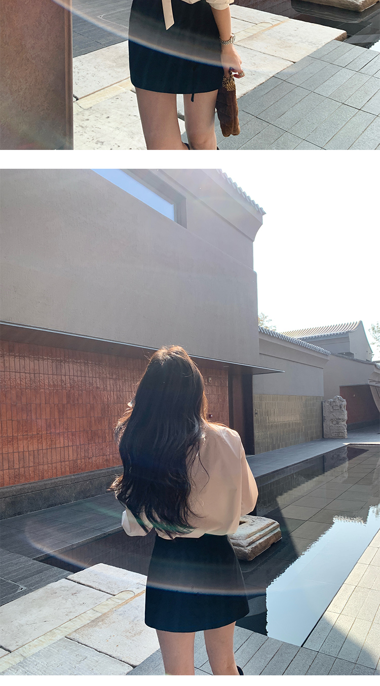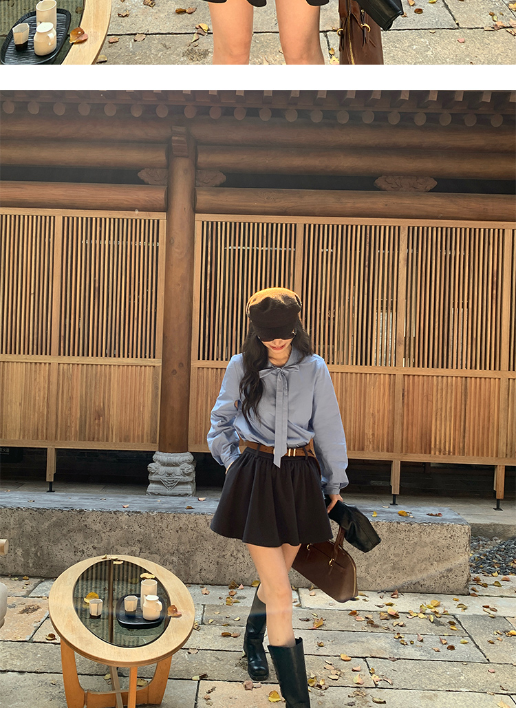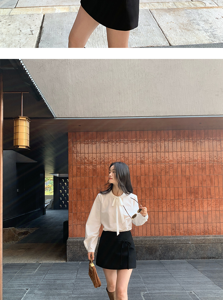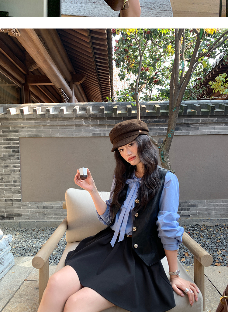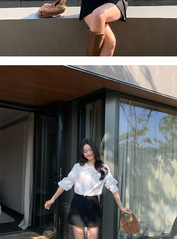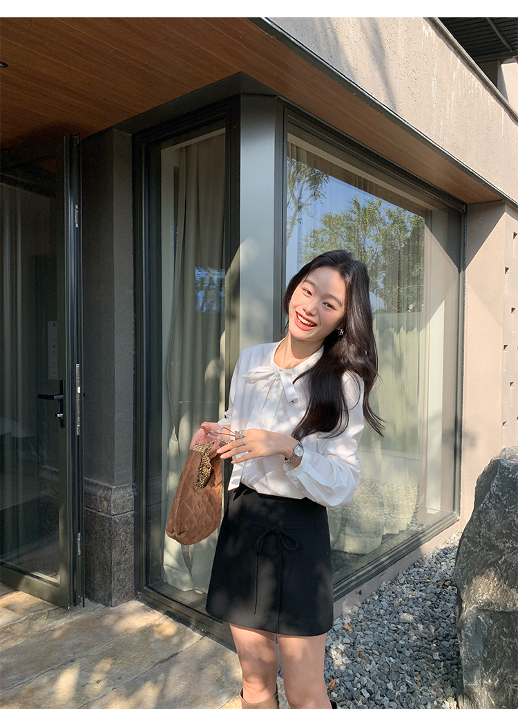 Pusumede Corner Street Blue Bow Tie Striped Shirt Women's Long-Sleeved Shirt Elegant Top