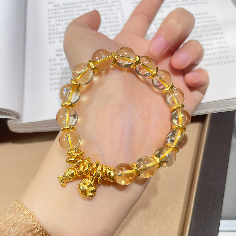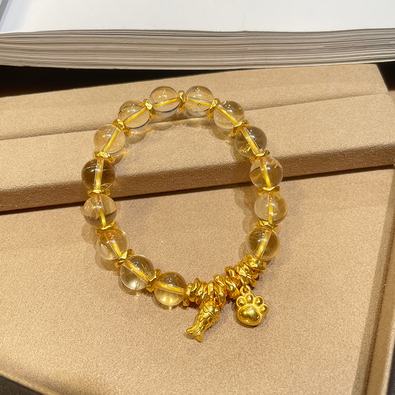 Reno Gold Little Fish Cat Claw Citrine Bracelet for Women 999 Pure Gold Niche Bracelet Valentine's Day Gift for Girlfriend