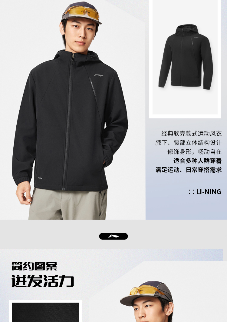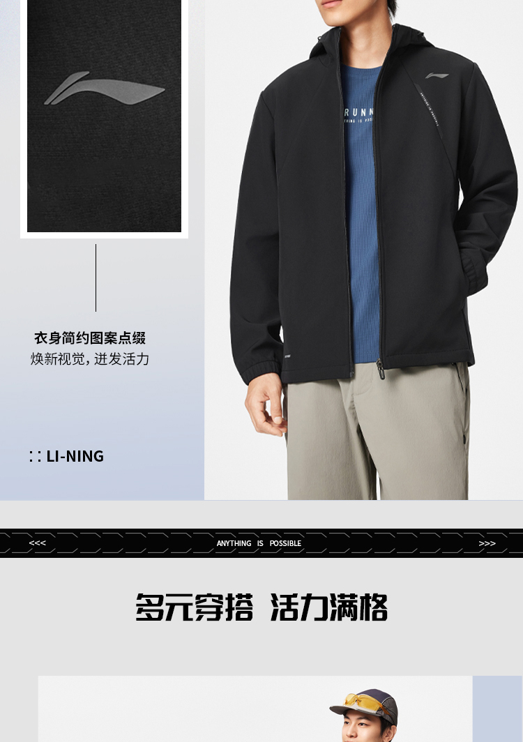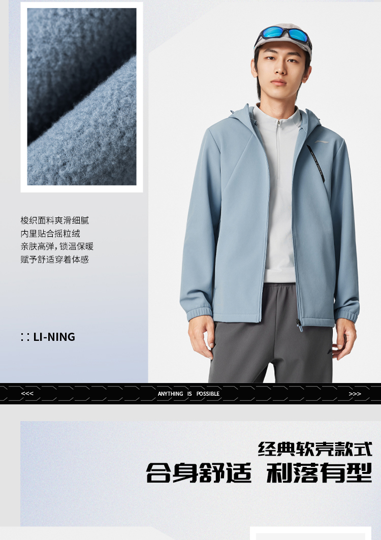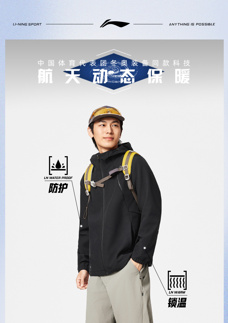 Xiao Zhan Style Li-Ning Jacket for Men, New Autumn and Winter Warm Hooded Fleece-Lined Sports Windbreaker, Water-Repellent Jacket