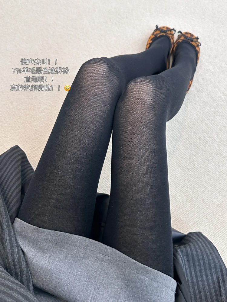 Tencel Wool!! Black Is the King of Slightly Sheer Wool! High-End Black Stockings, Autumn Pantyhose