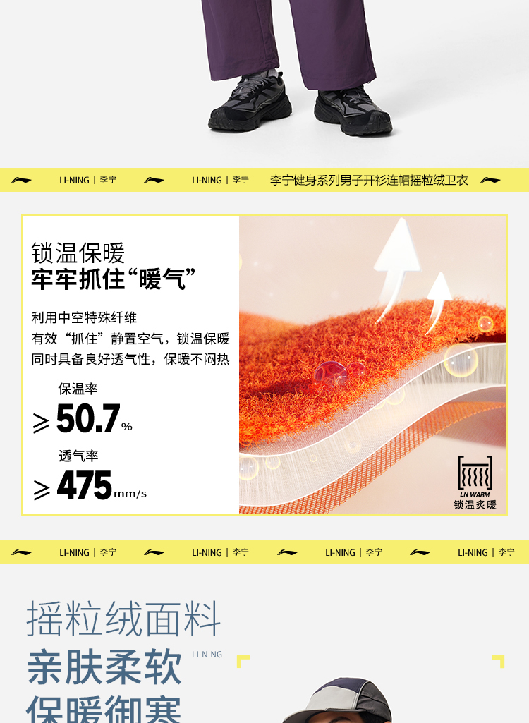 Li-Ning Fleece Jacket for Men, Autumn and Winter 2025 New Style, Fleece-Lined Inner Layer, Warm Polar Fleece Men's Sports Jacket