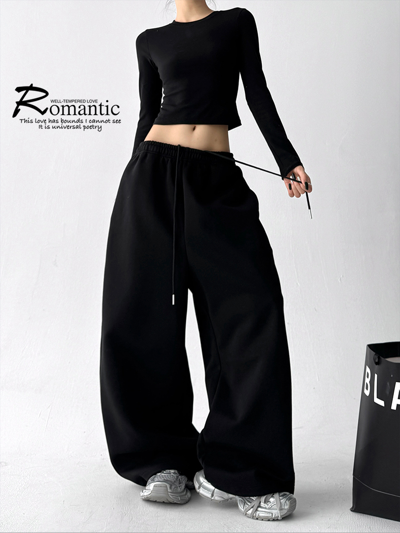 American Style Women's Sweatpants 2025 New Spring and Autumn High-Waisted Slimming Wide-Leg Pants Casual Straight-Leg Pants Jogger Pants Sweatpants