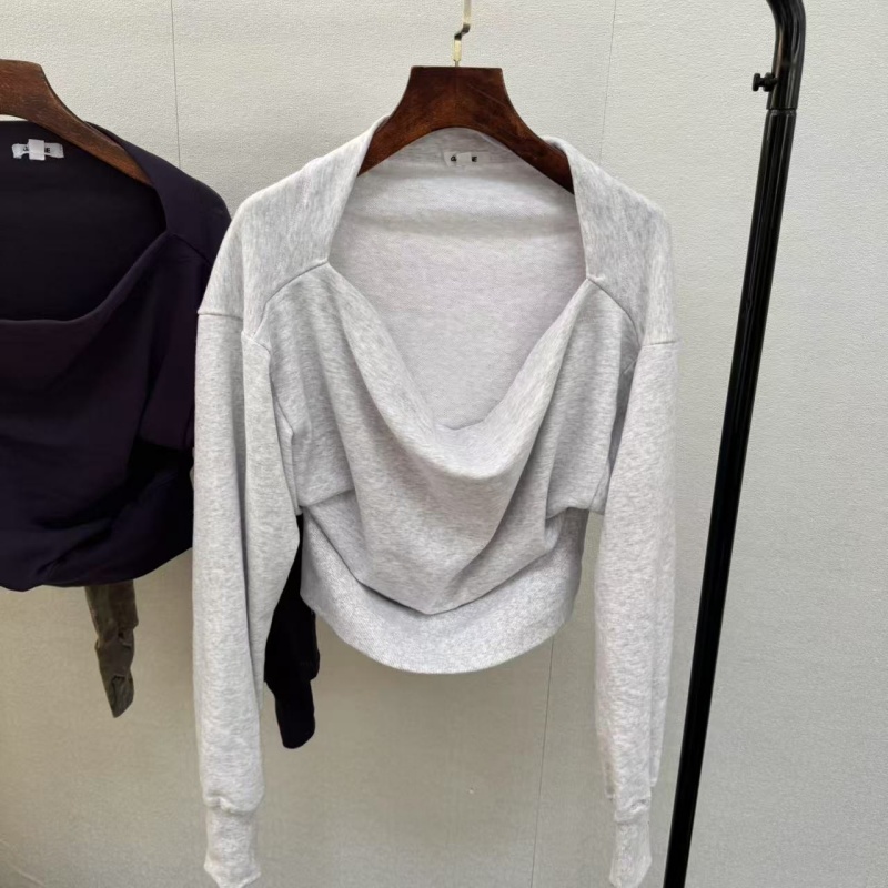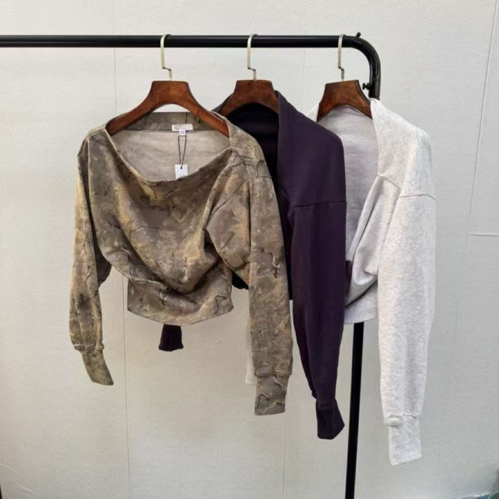 1)简约休闲,凸显颈部线条与腰线,适合日常或轻通勤场景。 2)“加拿大风一字领卫衣,75棉毛圈亲肤透气,收腰短款利落显高。慵懒时髦感~”