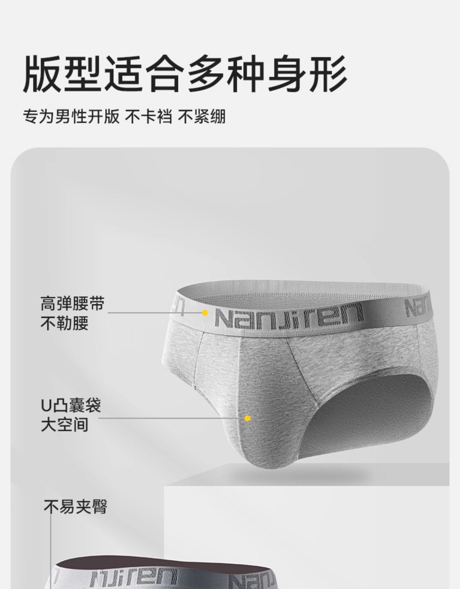 Nanjiren Men's Briefs Pure Cotton Antibacterial Breathable Shorts Large Size Loose Men's Sports Underwear
