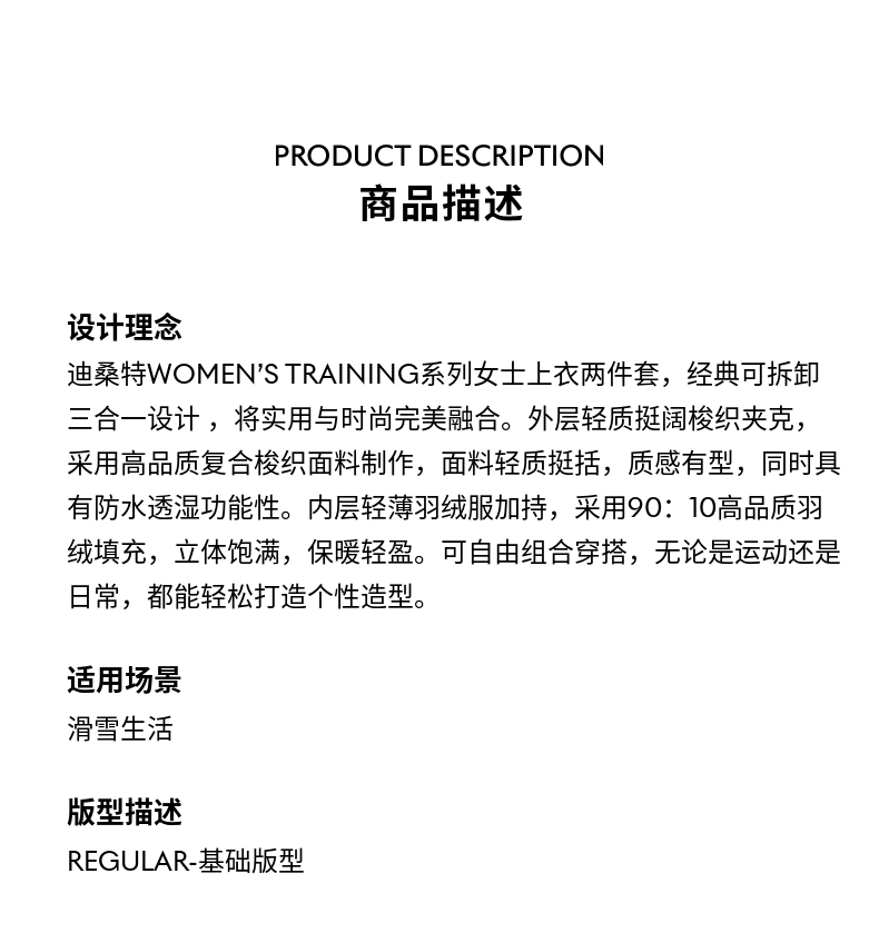 Descente Desante Anti-Pilling down Liner Women's Waterproof and Breathable Three-In-One Top Two-Piece Set