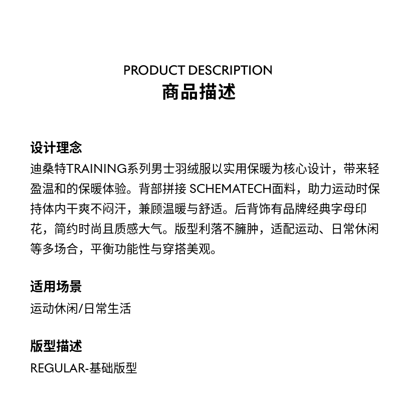 Descente Desante Training Series Comprehensive Training Sports Fitness Men's Hooded Warm down Jacket