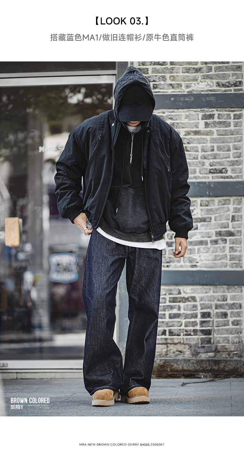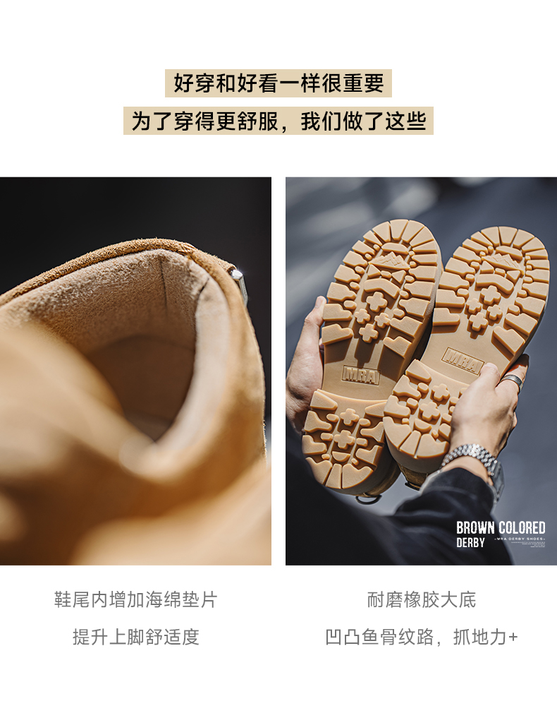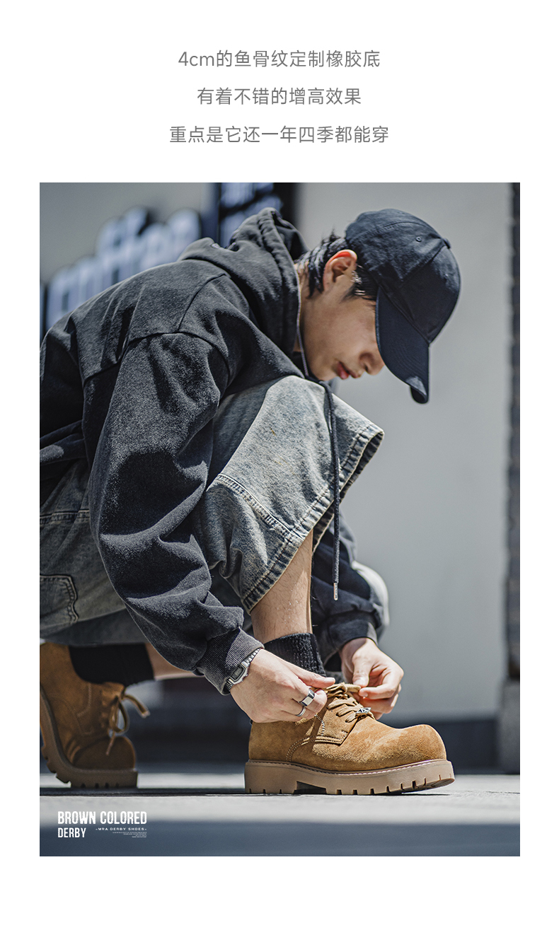 Mra Brown Derby Shoes for Men, 2025 New Autumn Low-Top Yellow Boots, Thick-Soled Height-Increasing Large-Toe Work Leather Shoes
