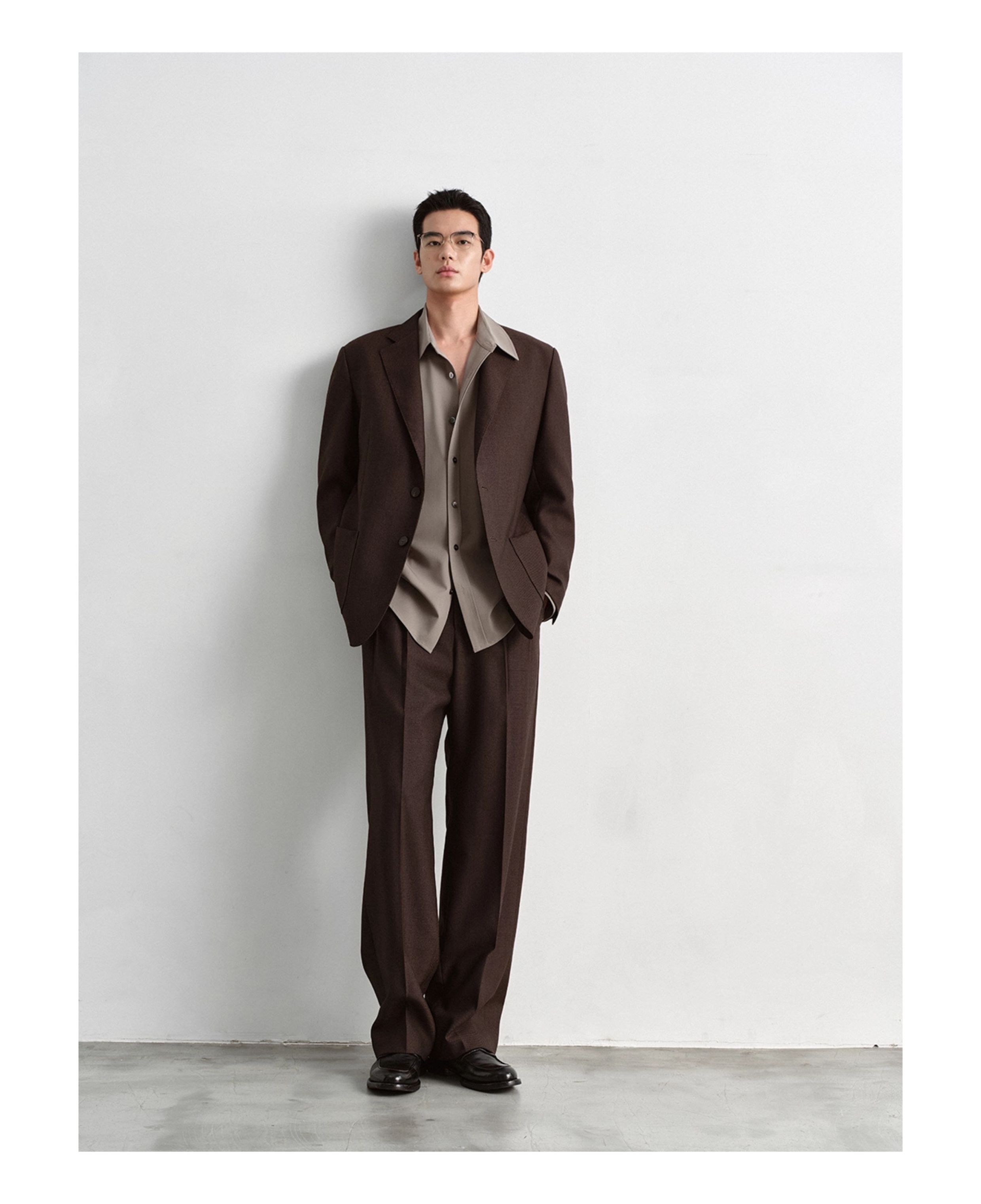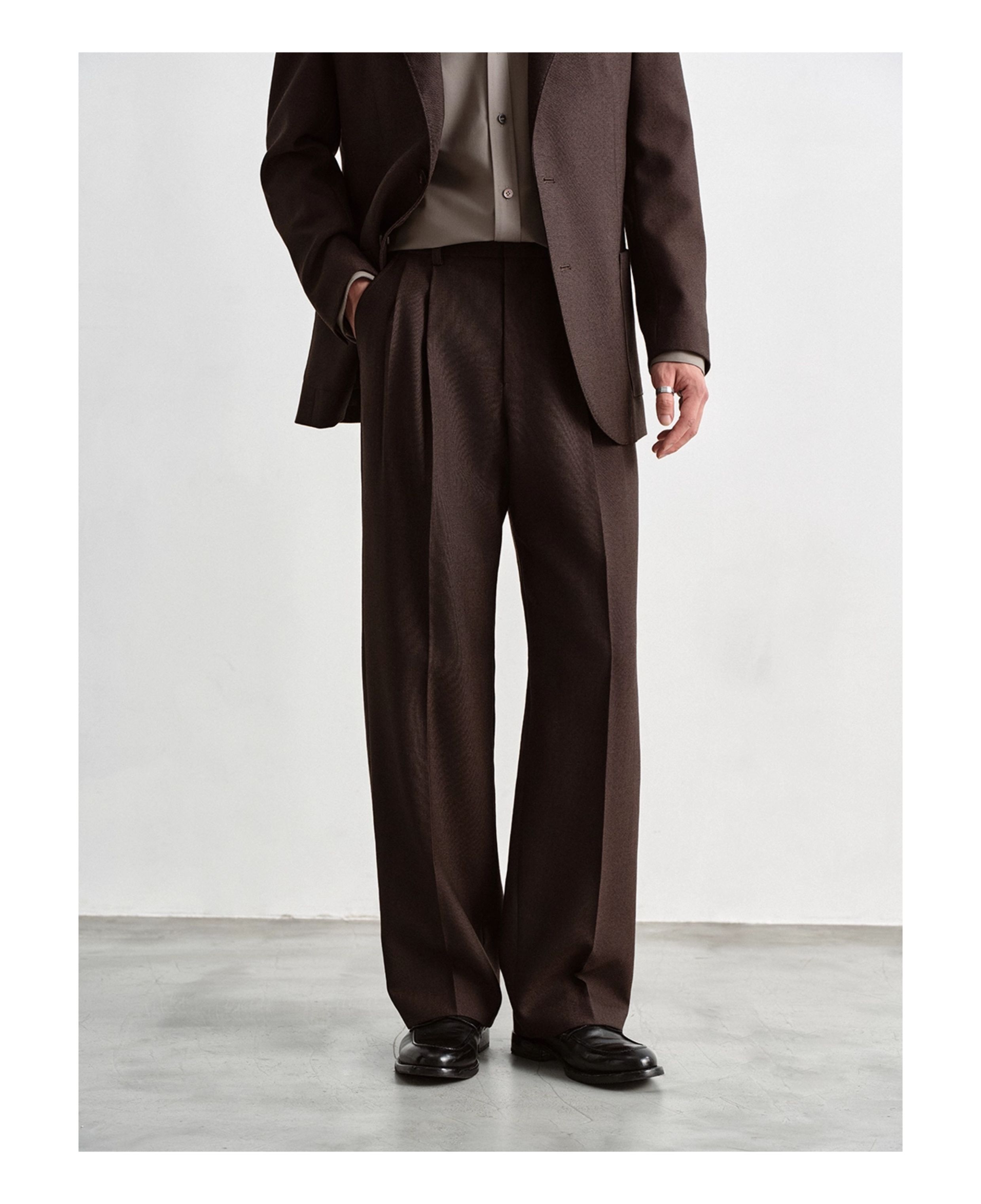 Osens 100% High-Density Worsted Wool Old Money Style Elastic Waistband Commuting Straight-Leg Wide-Leg Casual Dress Pants for Men Autumn