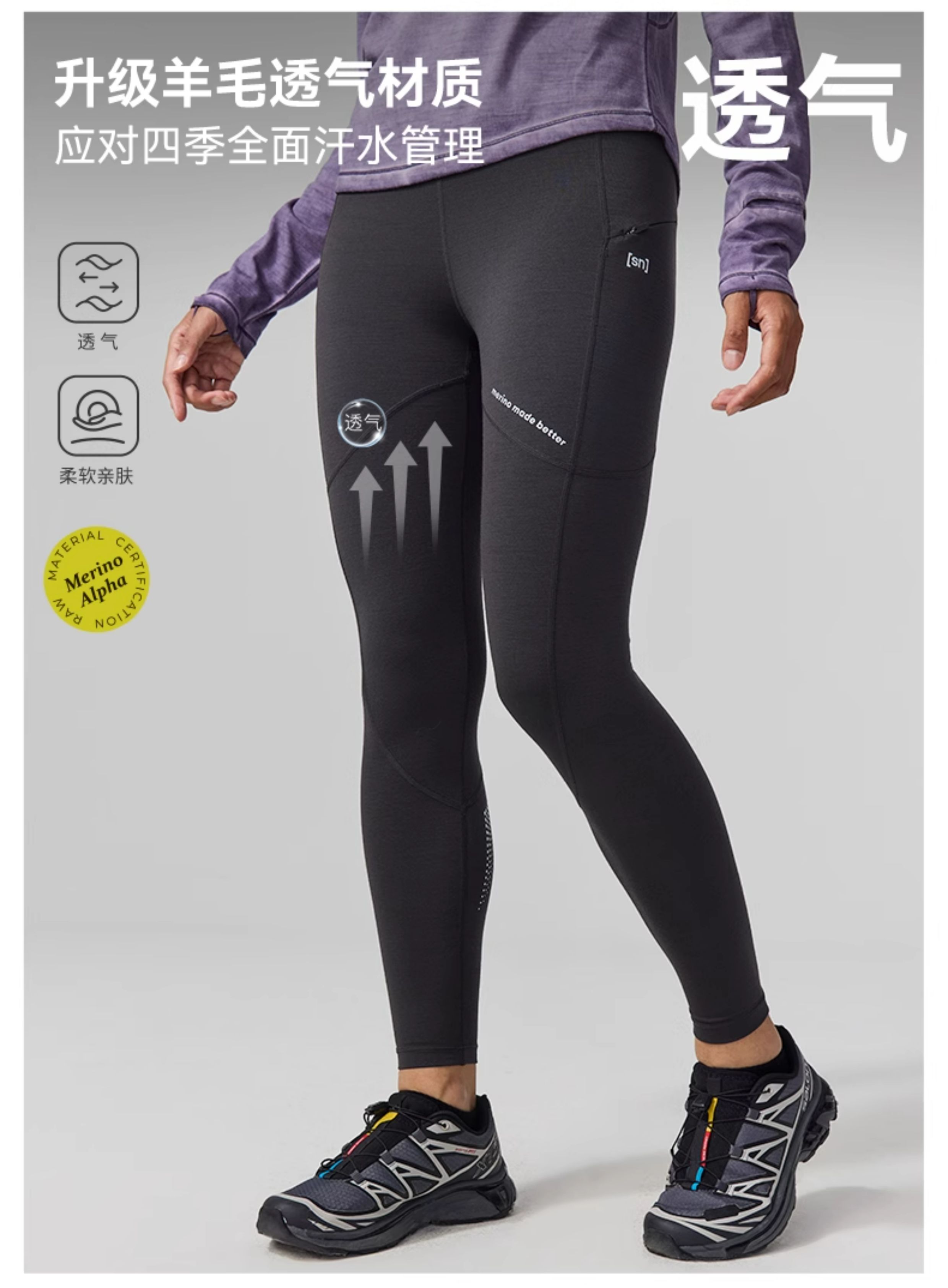 【New Product】Sn Merino Wool Tights for Women, Anti-Odor, High Elasticity, Fitness Nine-Point Pants, Meimei Elastic Series