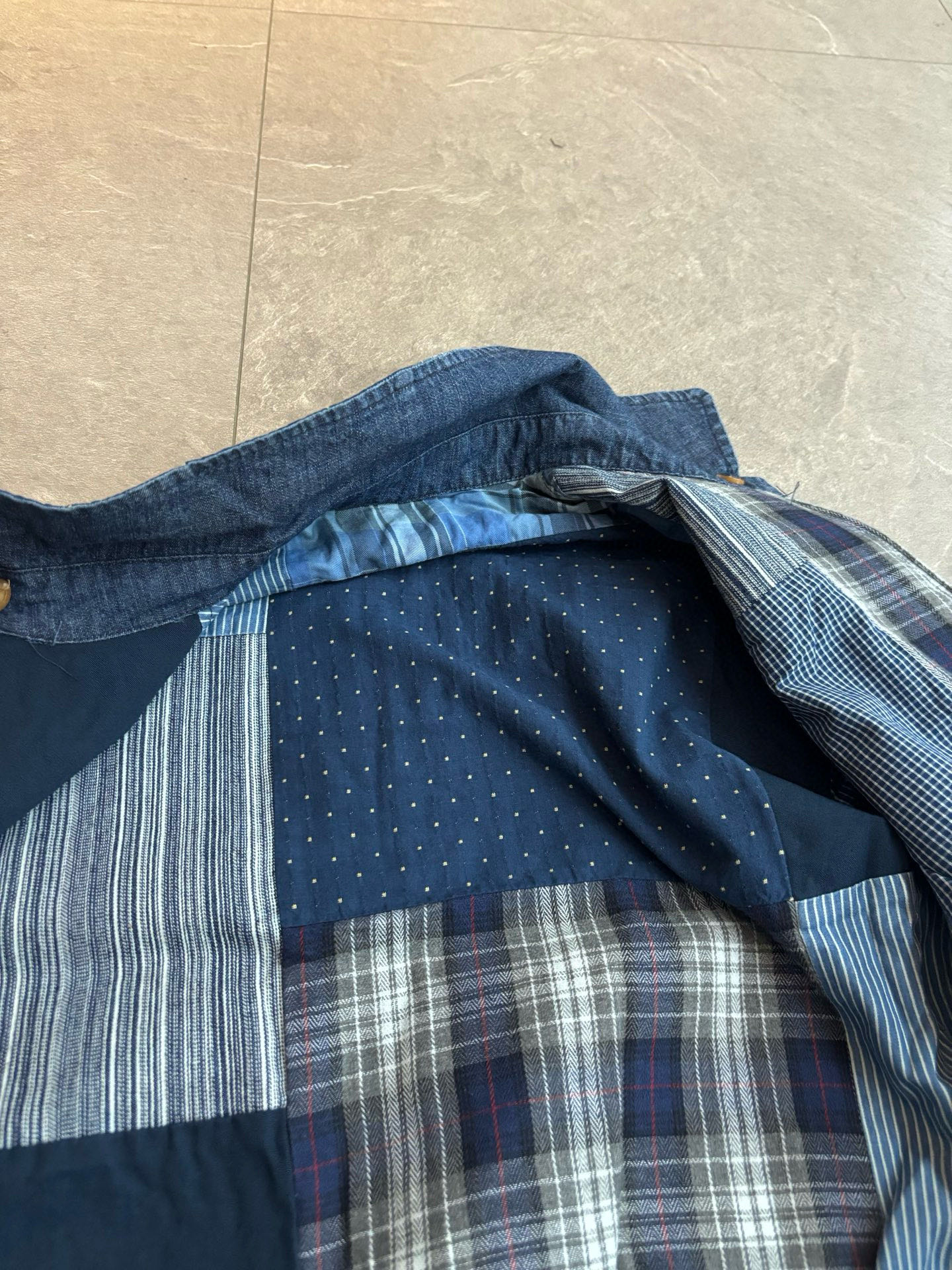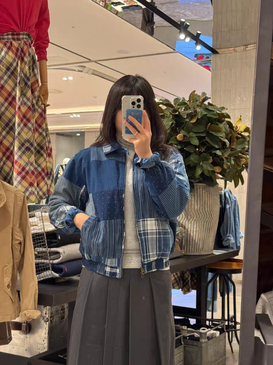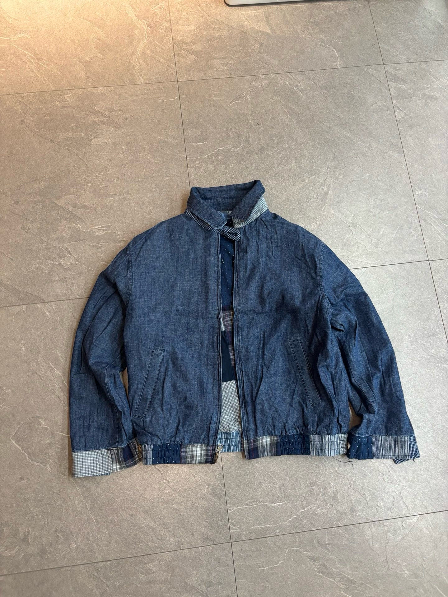 Japanese Trendy Brand Raff Pony Logo Embroidered Patchwork Plaid Shirt-Style Zip-Up Denim Jacket