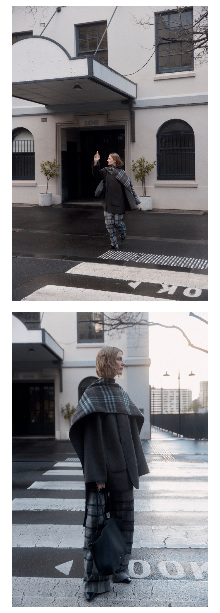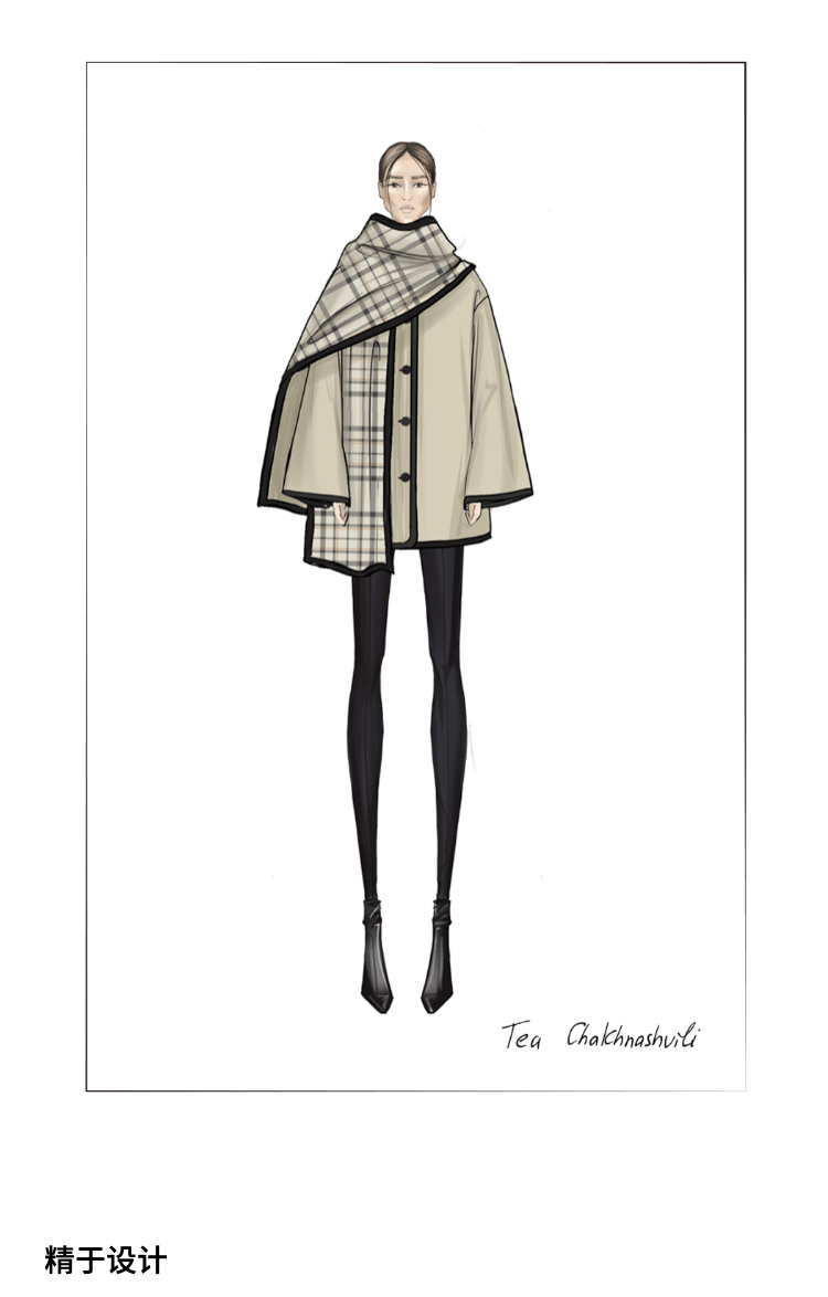 Yetong's Same Style Fabrique Thames Double Plaid Coat Short Wool Cashmere Woolen Coat Cape for Women