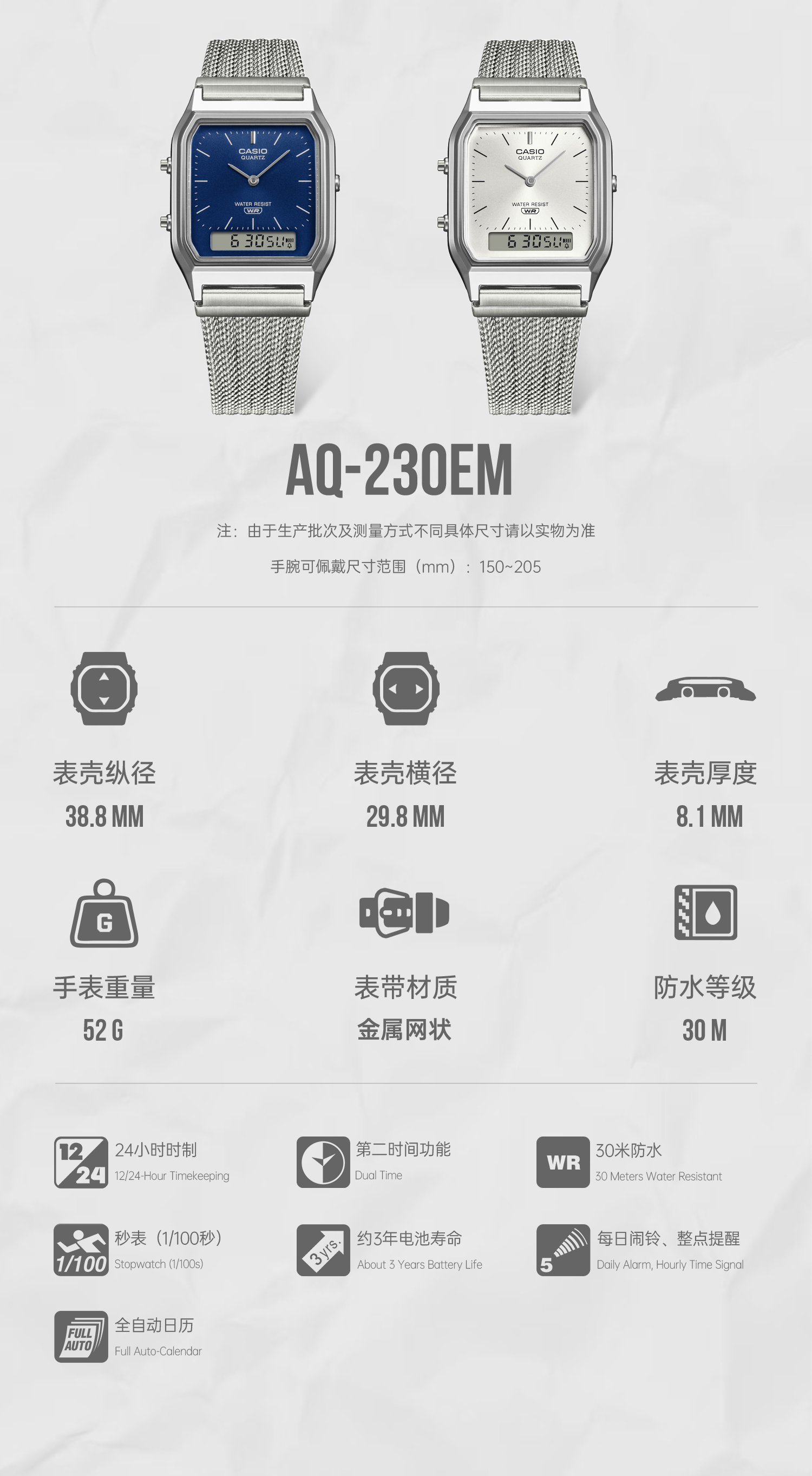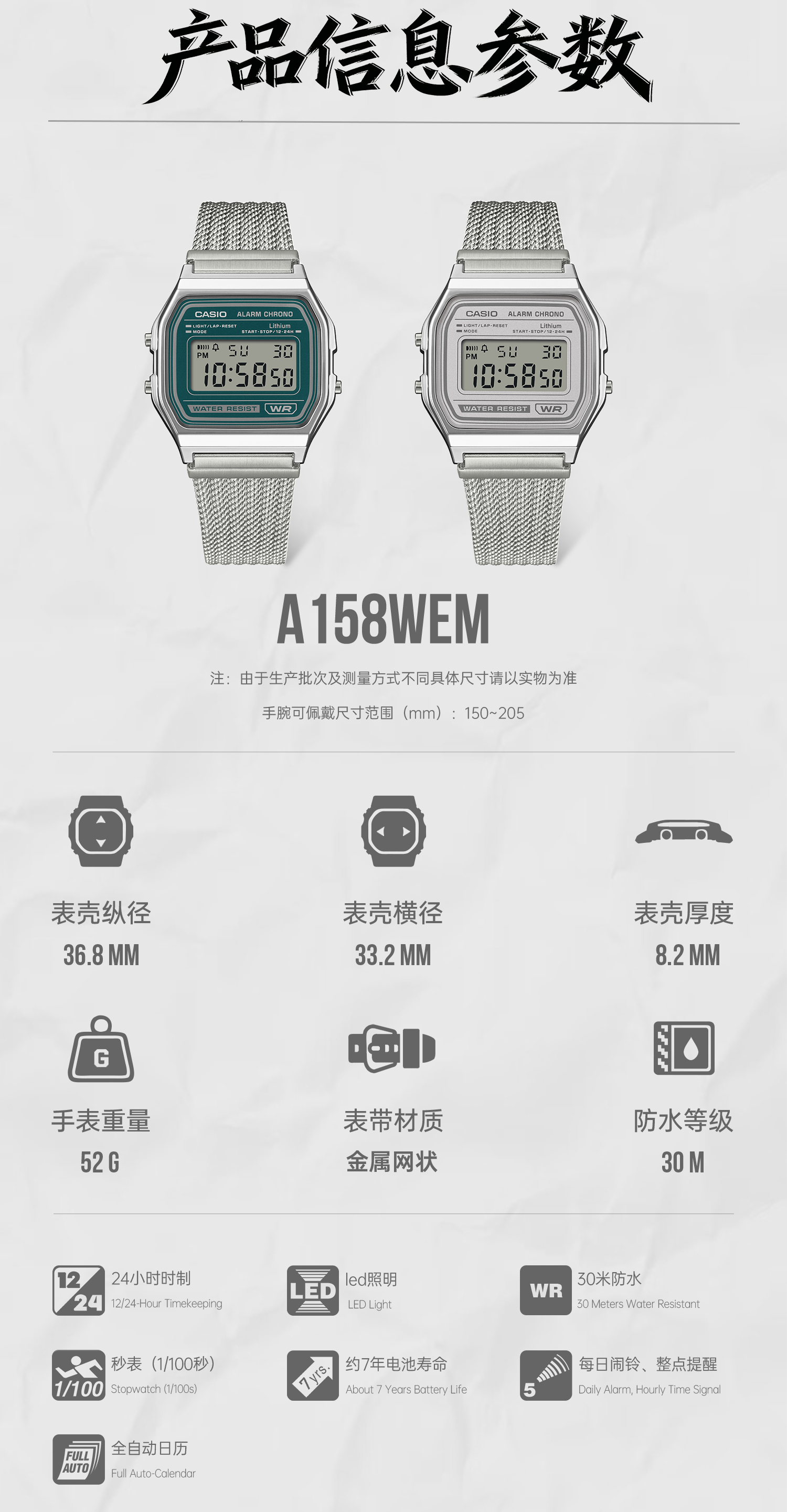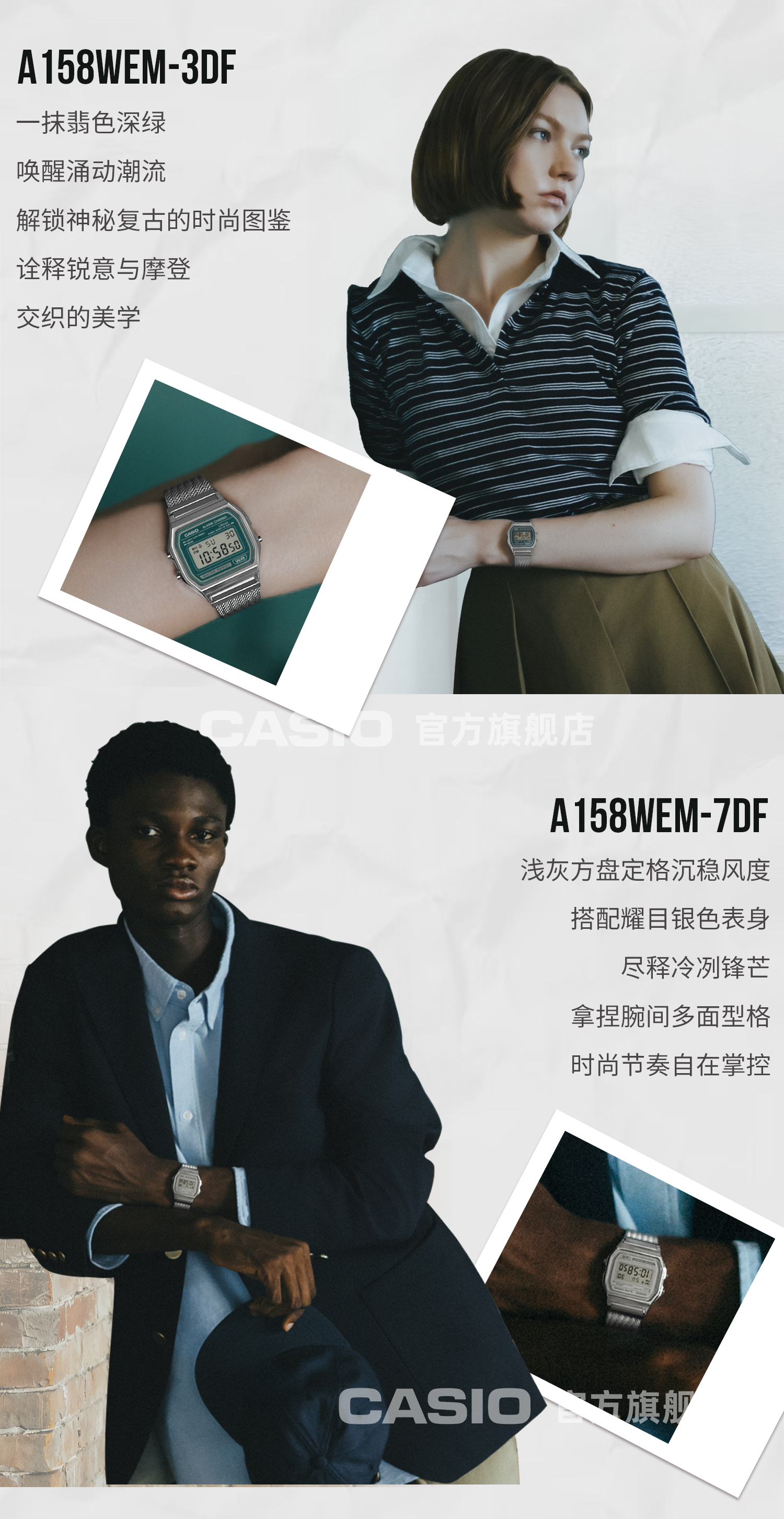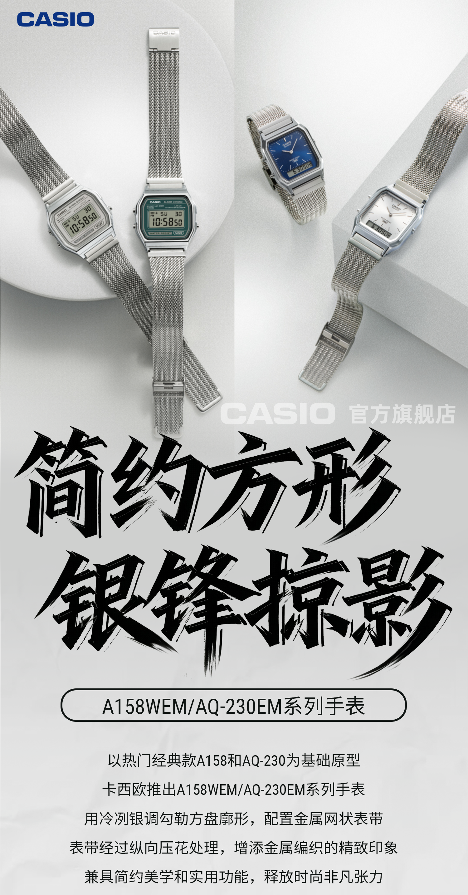 Casio Official Flagship Store A158Wem/Aq-230Em Retro Modern Simple Small Square Watch for Men and Women