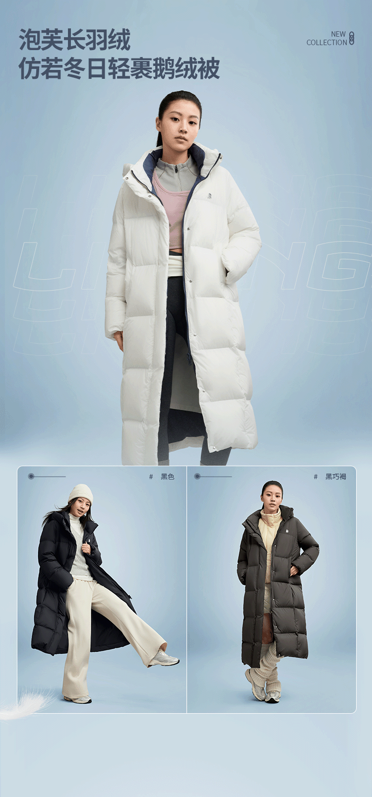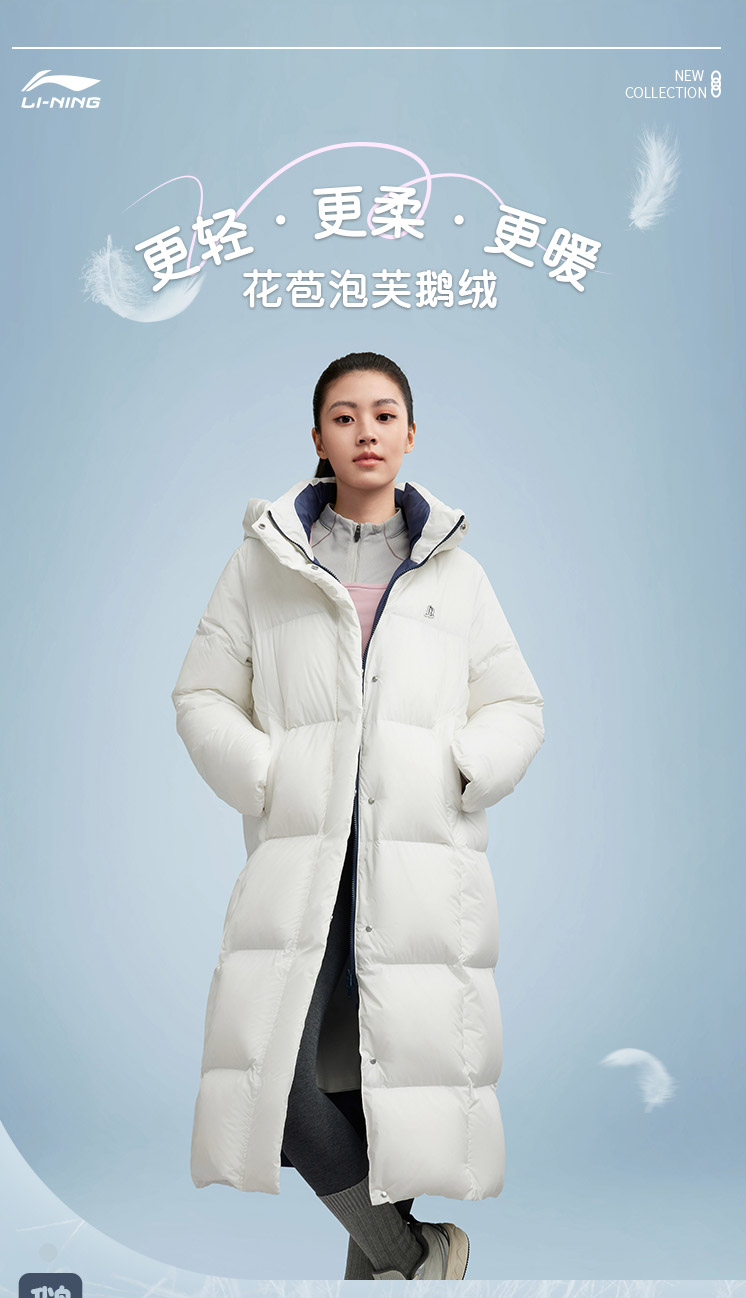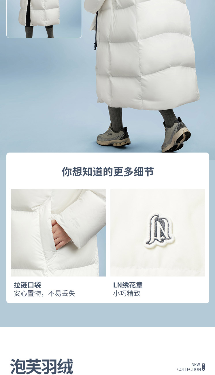 Li-Ning Hot Pot down Jacket | Winter 2025 New Long Style Women's Hooded Goose down Warm Sports Top